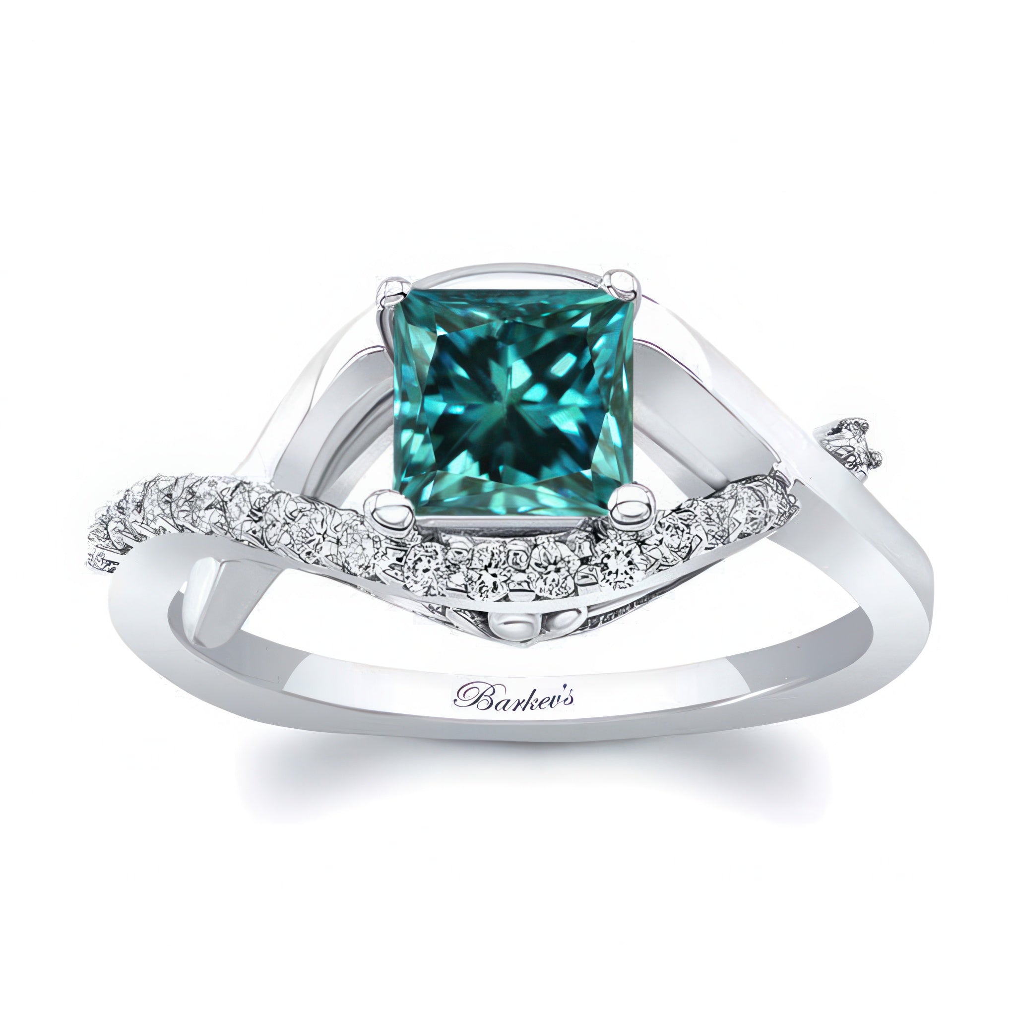 Criss Cross Princess Cut Blue And White Diamond Engagement Ring