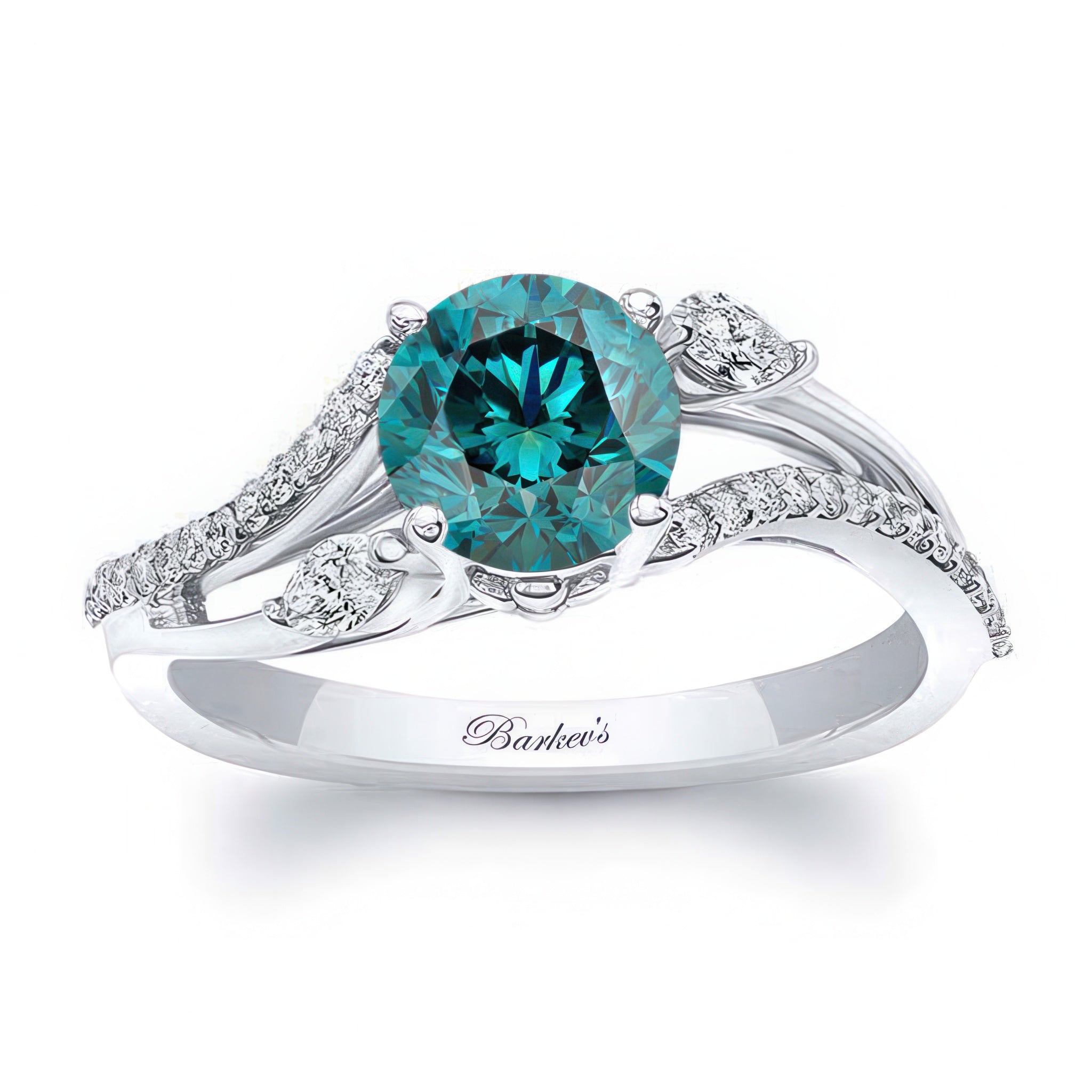 Curved Split Shank Blue And White Diamond Ring