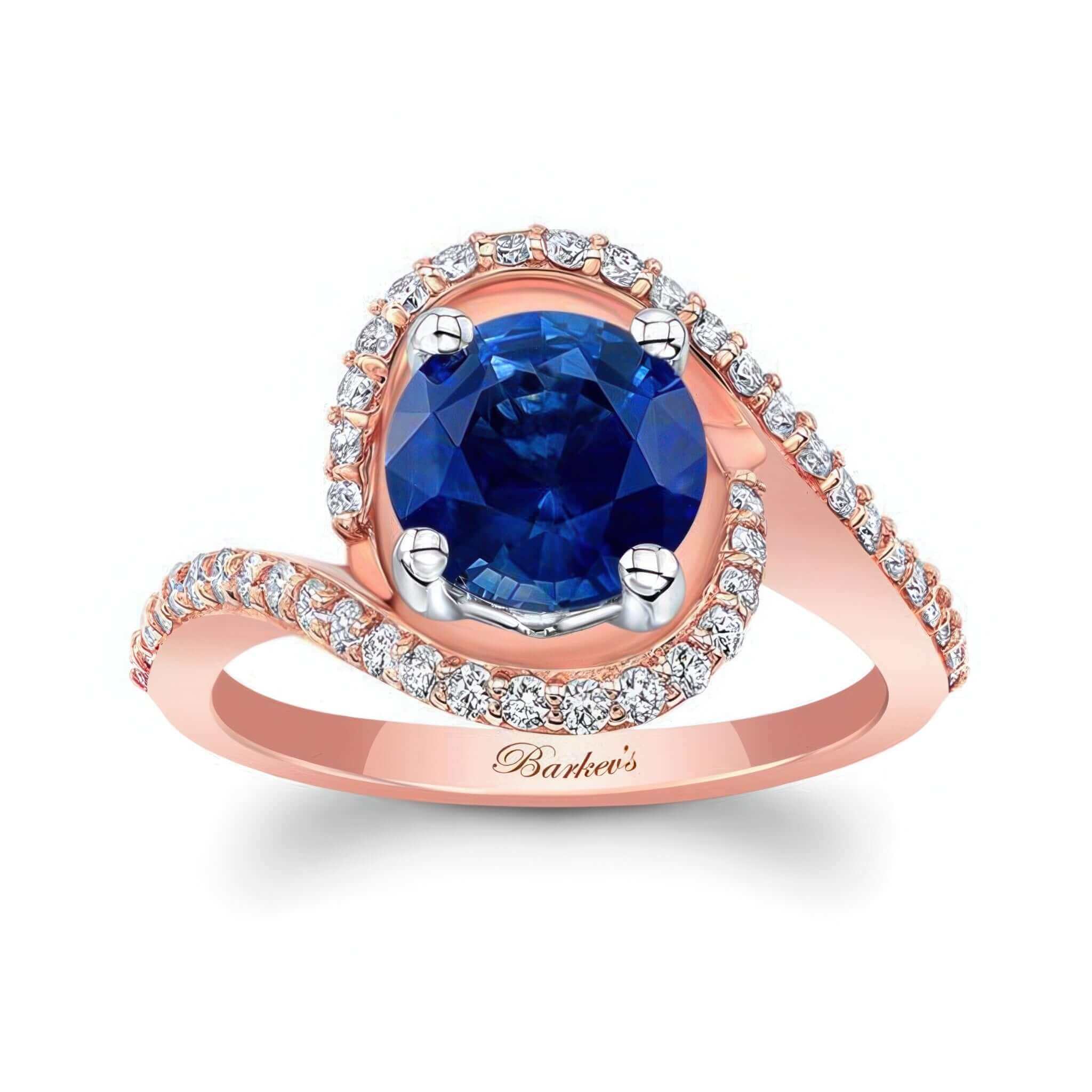 An elegant floating halo lab blue sapphire and diamond engagement ring with a round center and a split shank that wraps around the center adorned with micro pave diamonds for added sparkle.