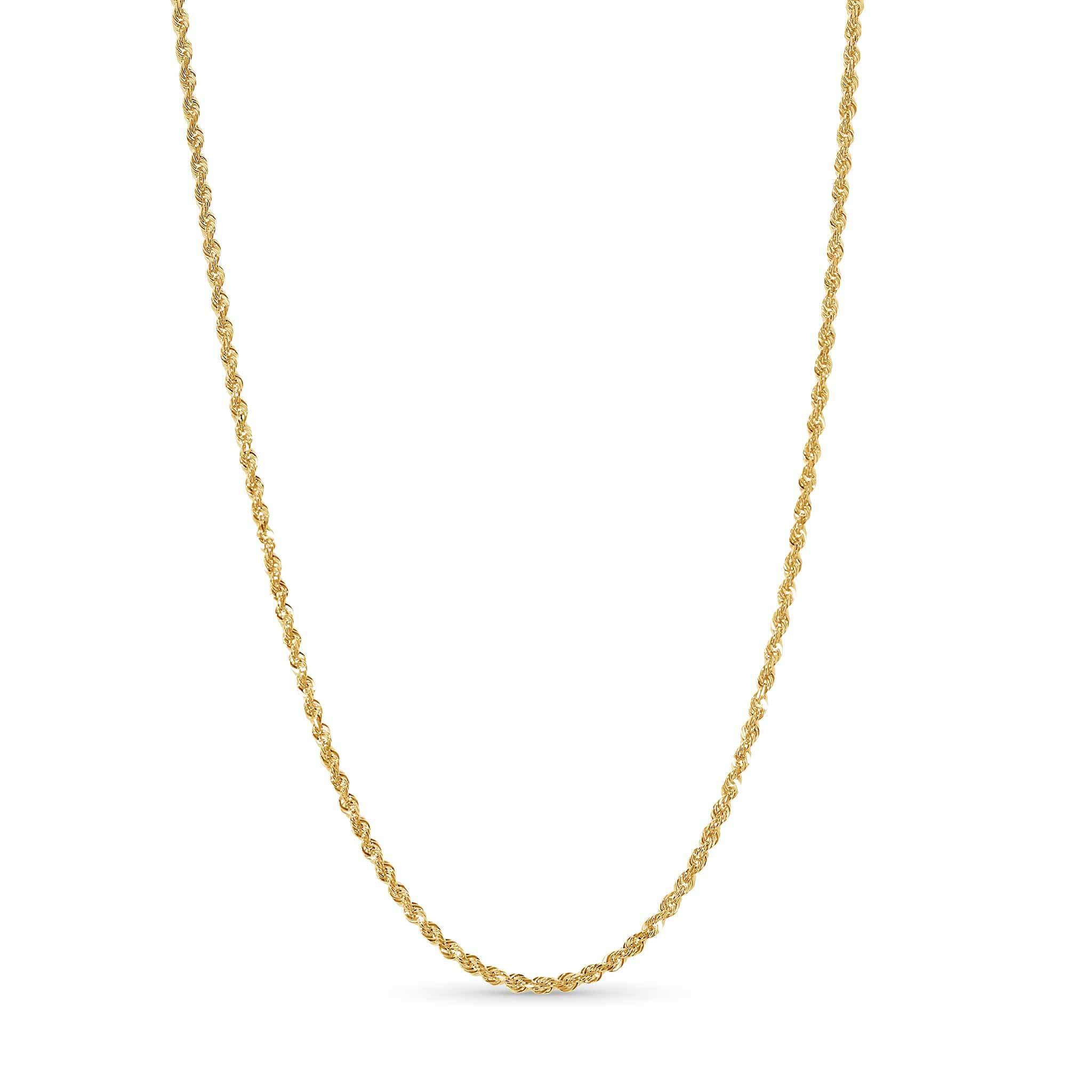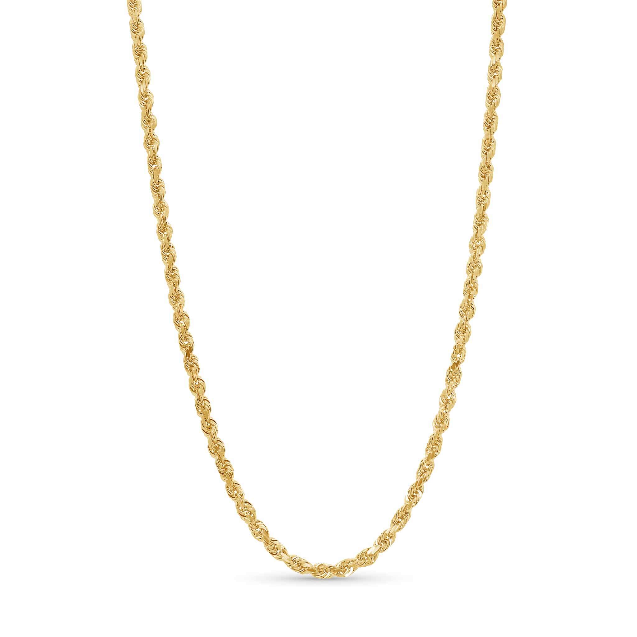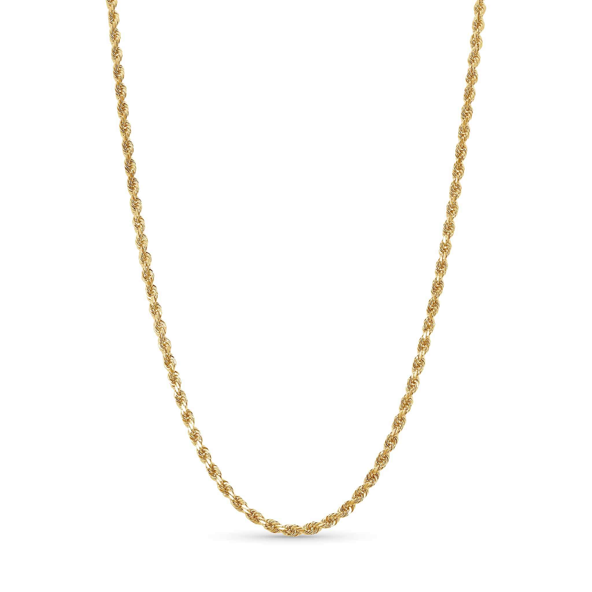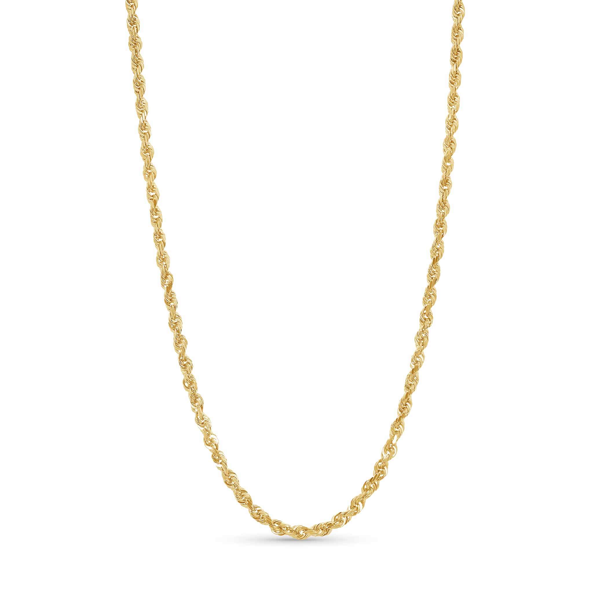 Elevate your jewelry collection with this expertly crafted gold rope chain, available in 14k yellow and white gold. Its intricate rope design offers both durability and timeless style, perfect for everyday wear or special occasions. The 14k gold ensures lasting shine and hypoallergenic quality, making it an ideal choice for women seeking elegance and reliability in a fine chain.