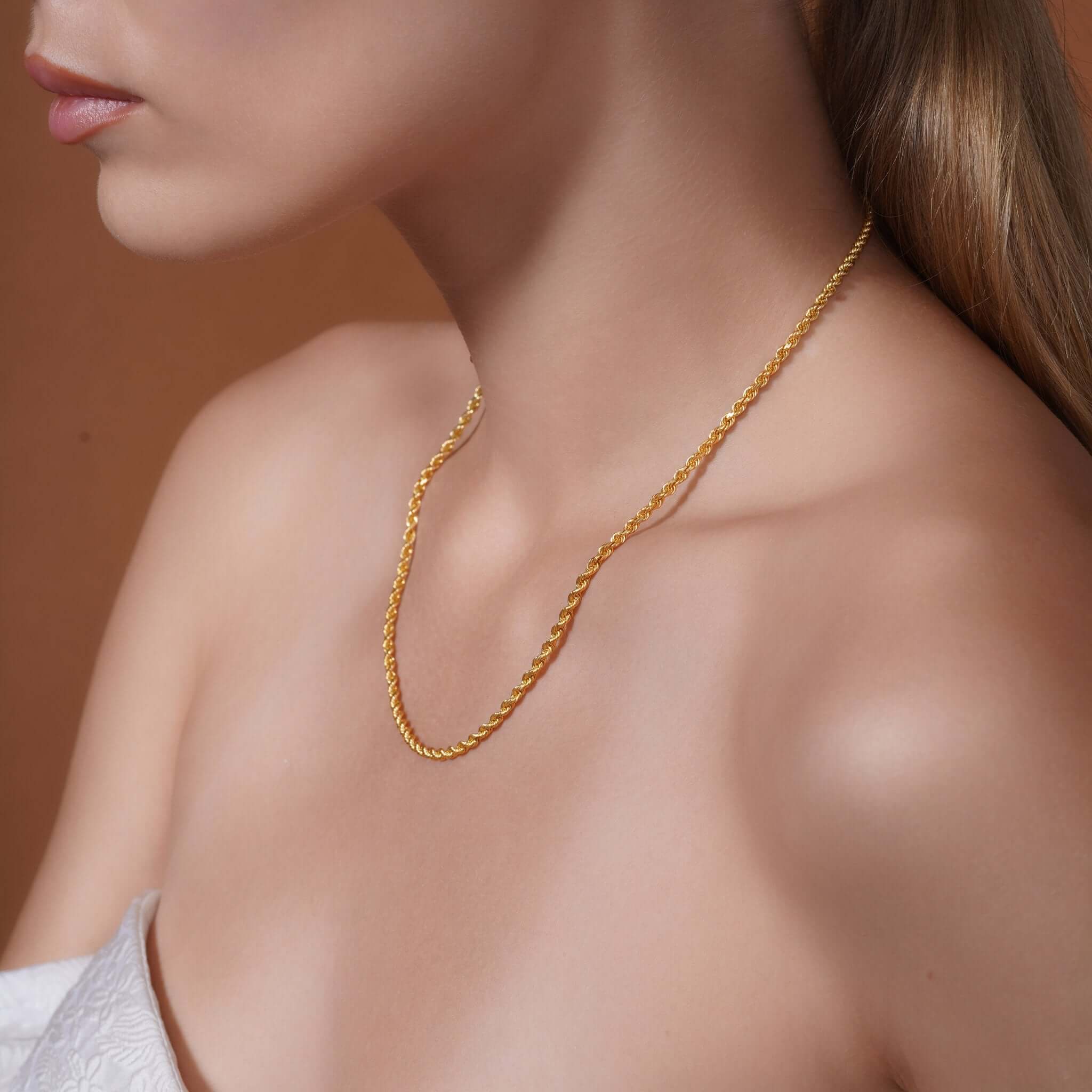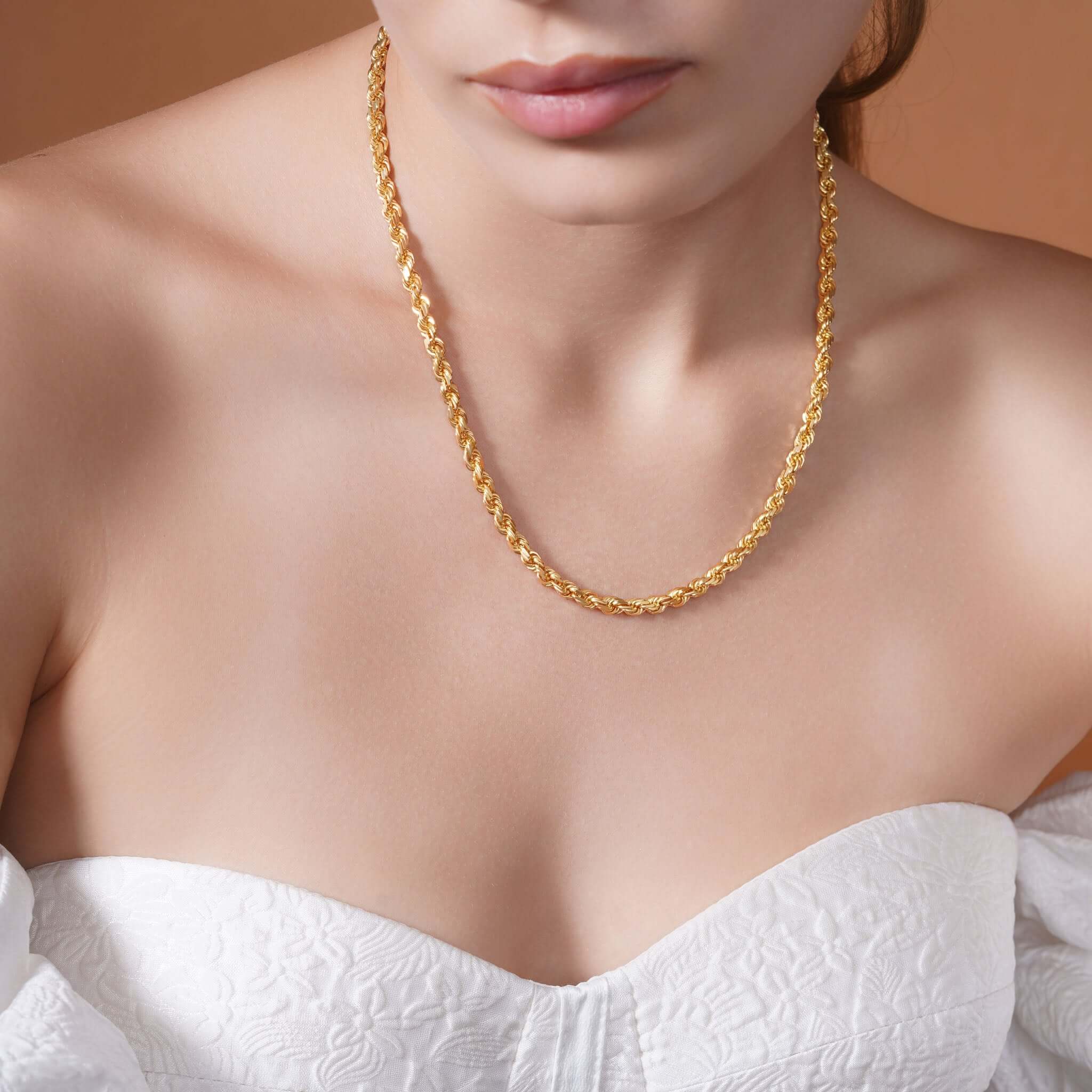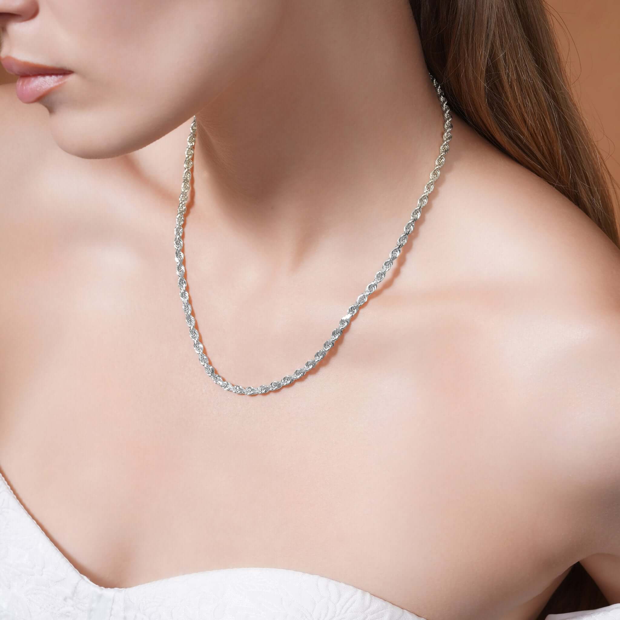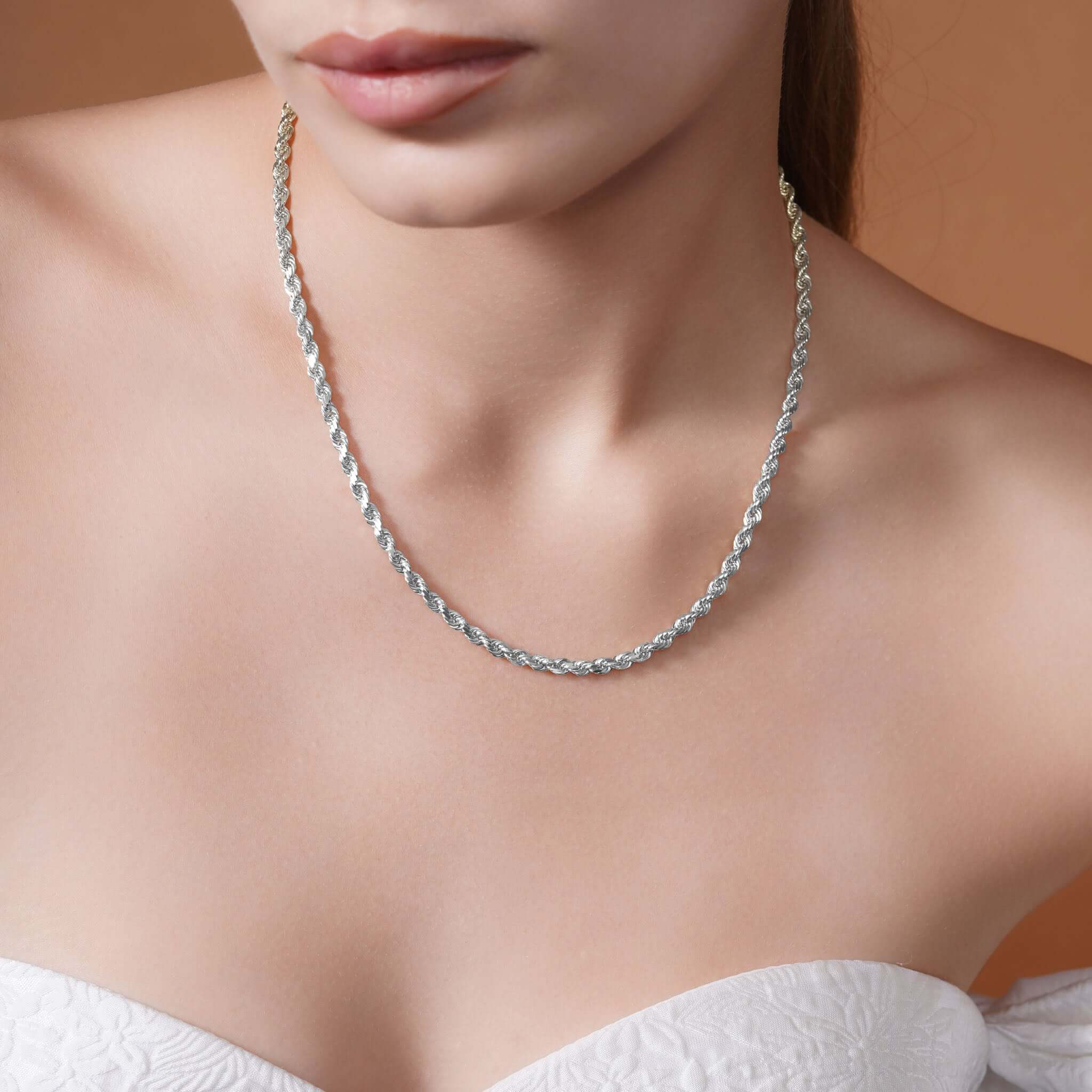 Elevate your jewelry collection with this expertly crafted gold rope chain, available in 14k yellow and white gold. Its intricate rope design offers both durability and timeless style, perfect for everyday wear or special occasions. The 14k gold ensures lasting shine and hypoallergenic quality, making it an ideal choice for women seeking elegance and reliability in a fine chain.