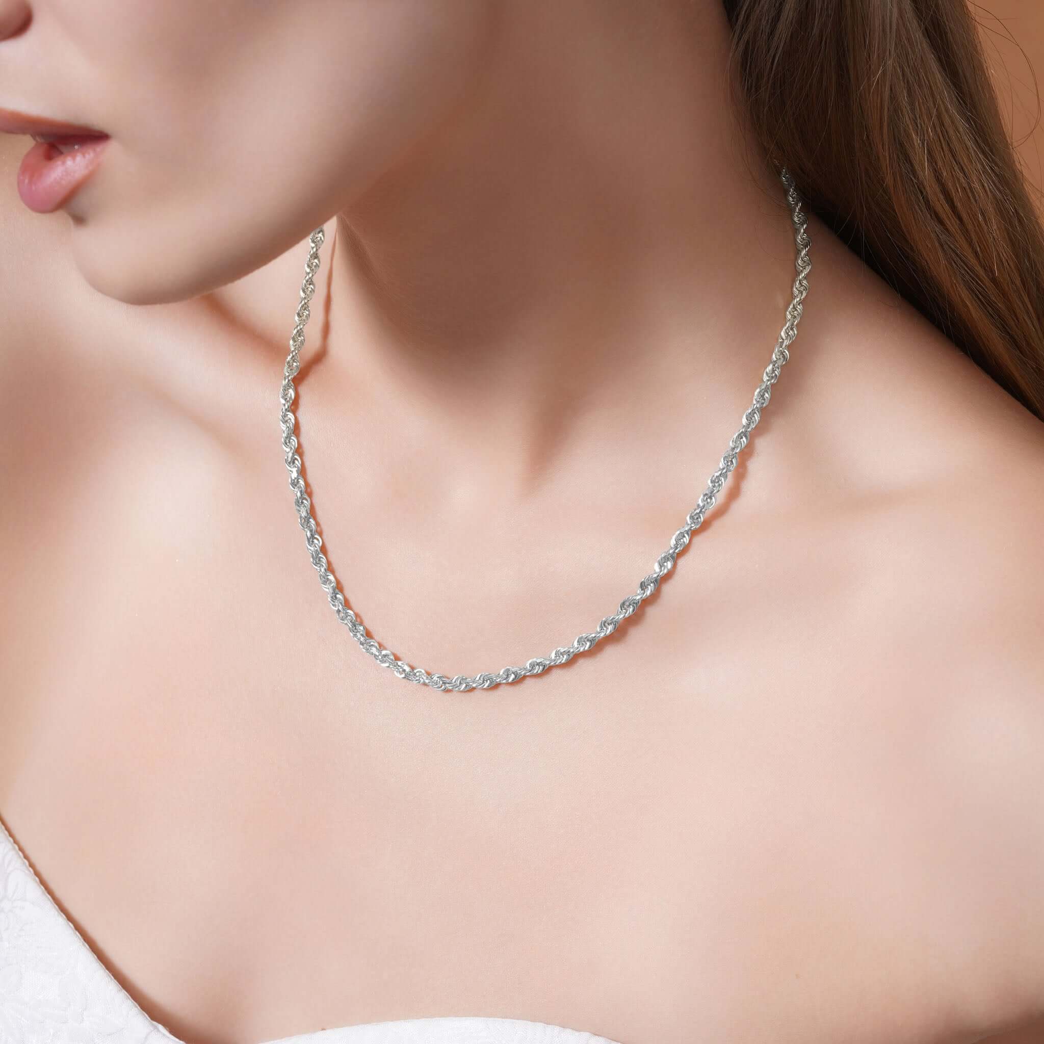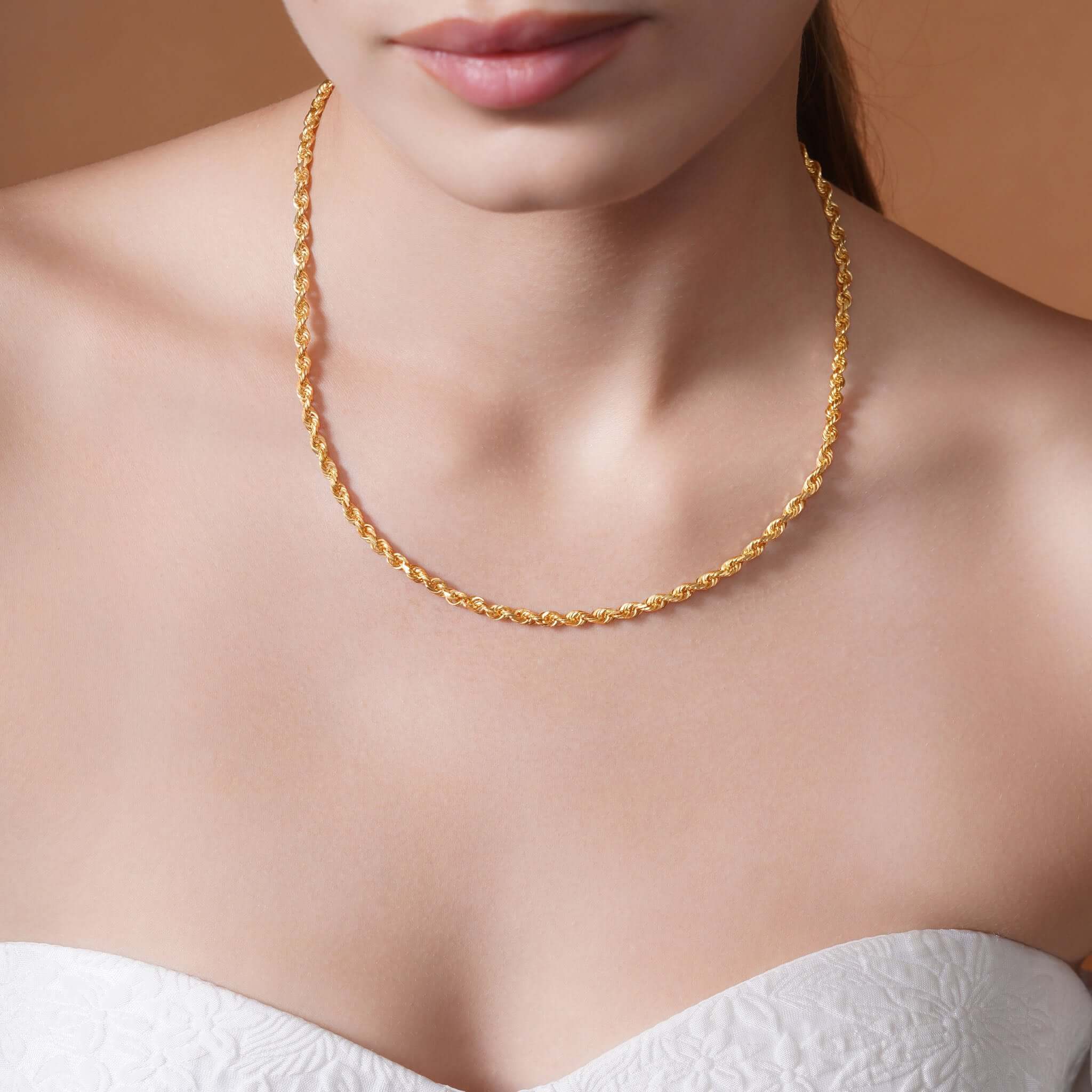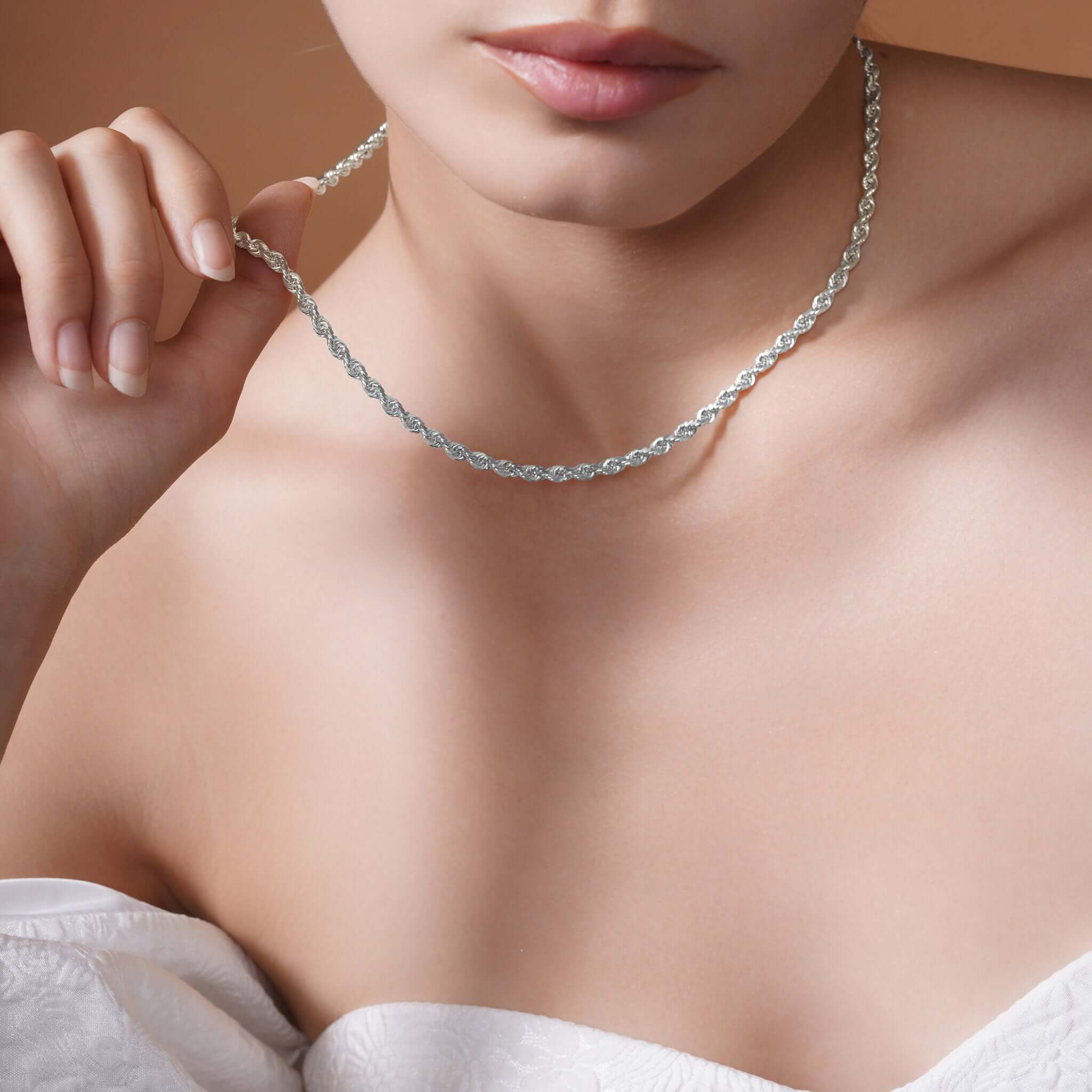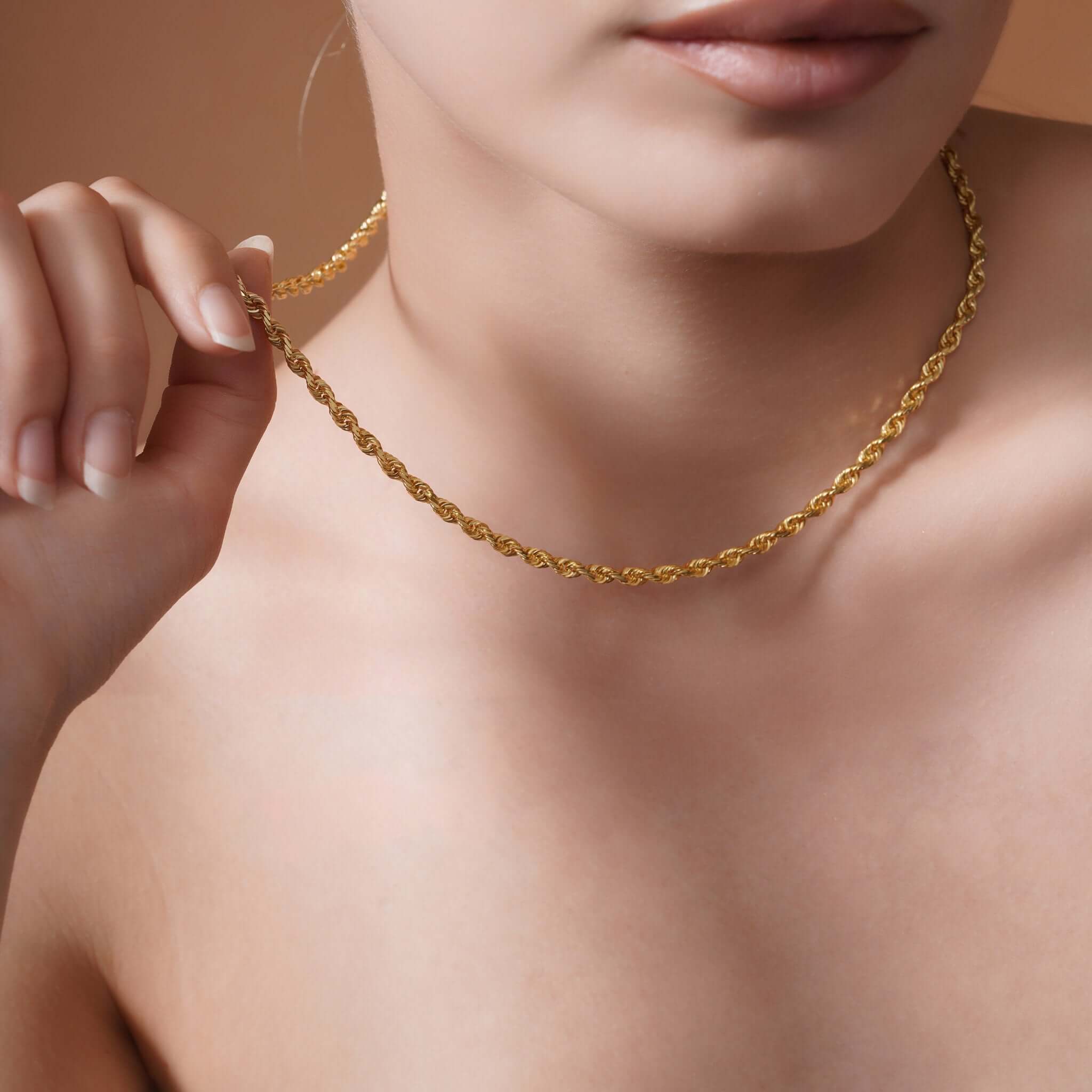 Elevate your jewelry collection with this expertly crafted gold rope chain, available in 14k yellow and white gold. Its intricate rope design offers both durability and timeless style, perfect for everyday wear or special occasions. The 14k gold ensures lasting shine and hypoallergenic quality, making it an ideal choice for women seeking elegance and reliability in a fine chain.