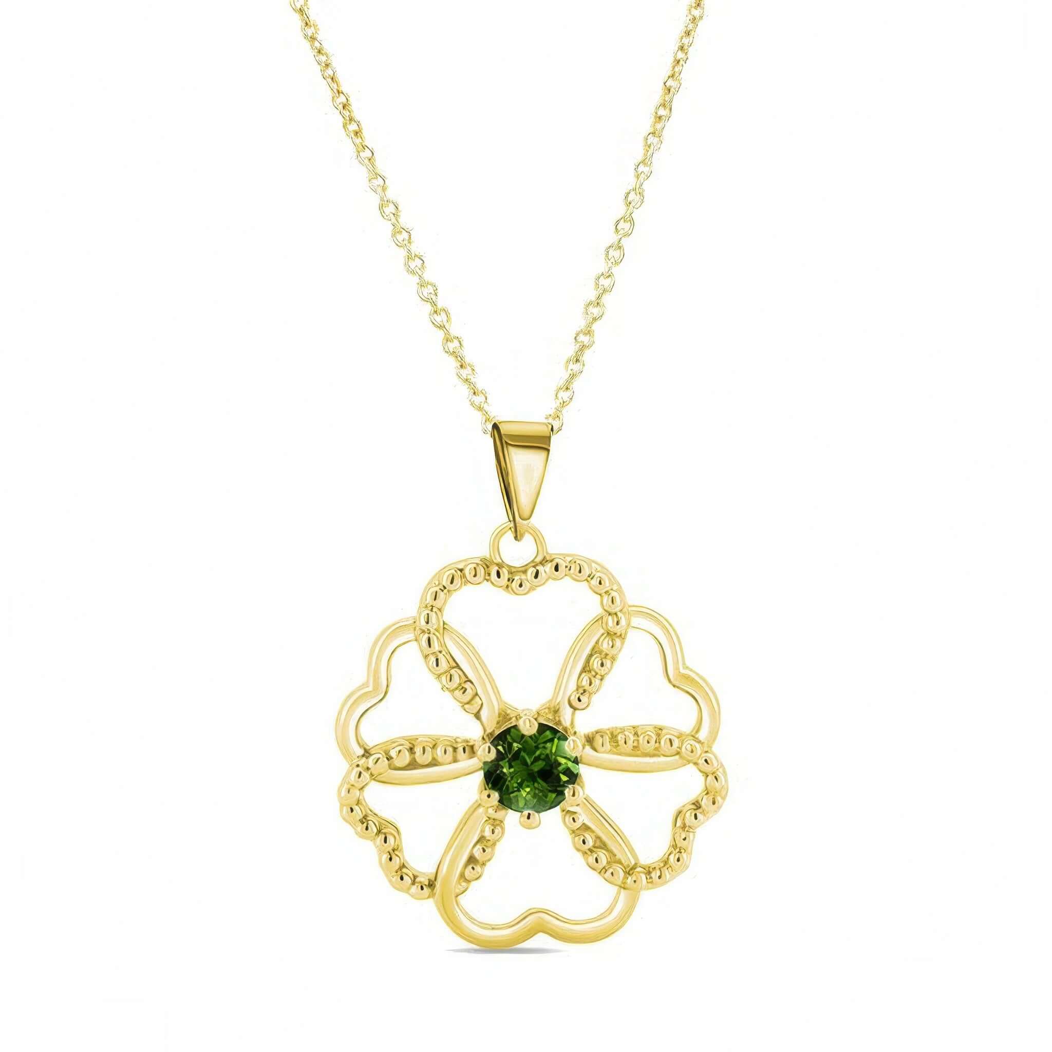 A beautiful green tourmaline intertwined hearts necklace featuring intertwined heart shapes and a half carat green tourmaline center.