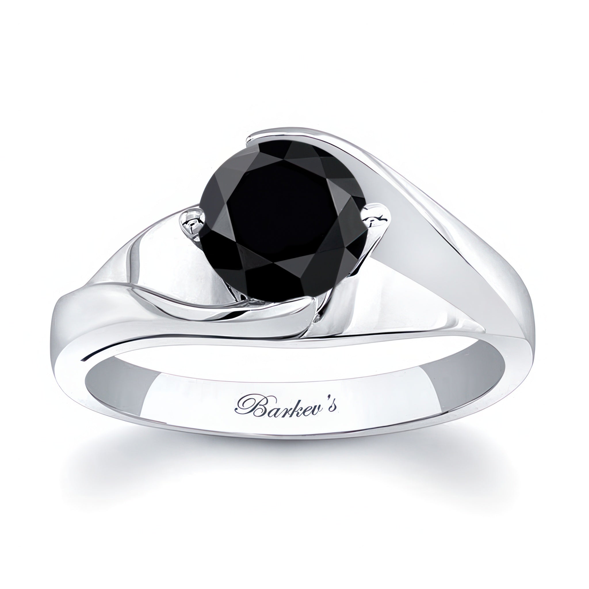 Half Channel Black And White Diamond Solitaire Engagement Ring