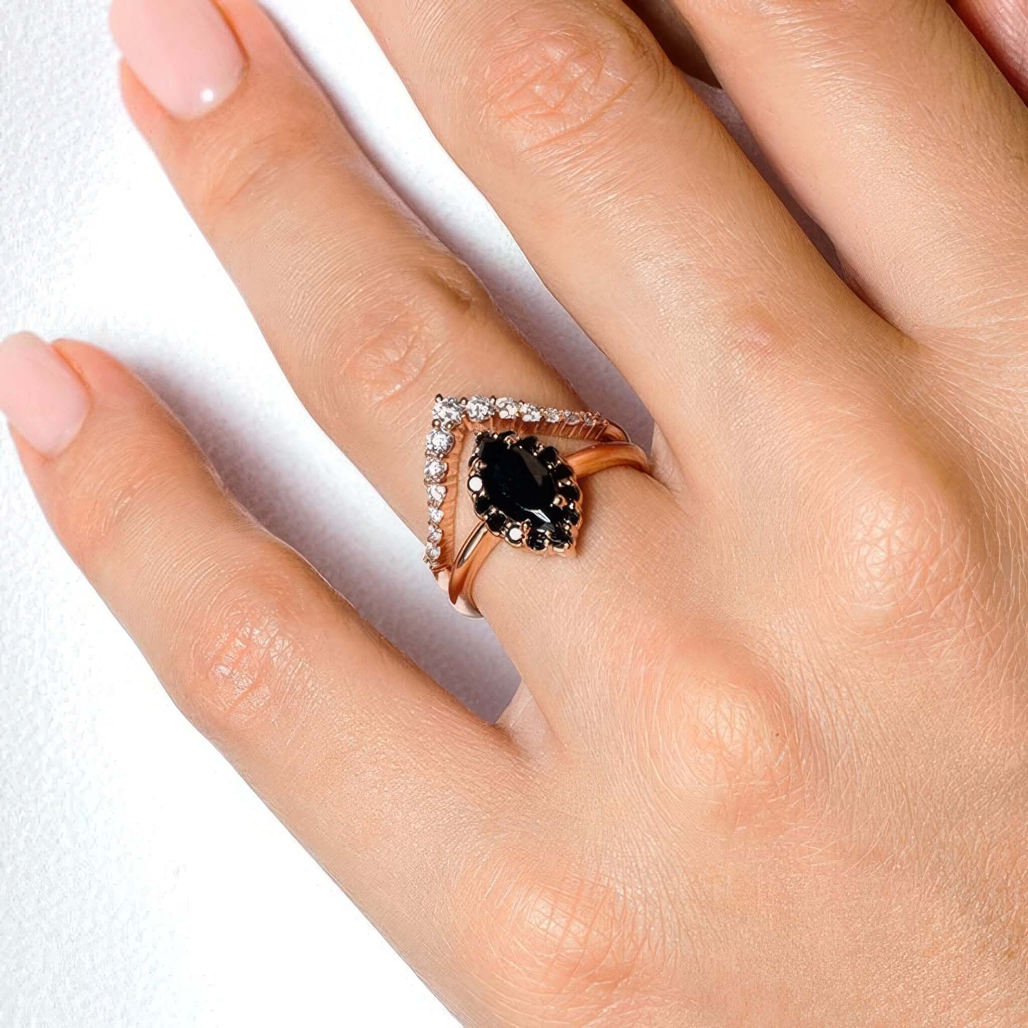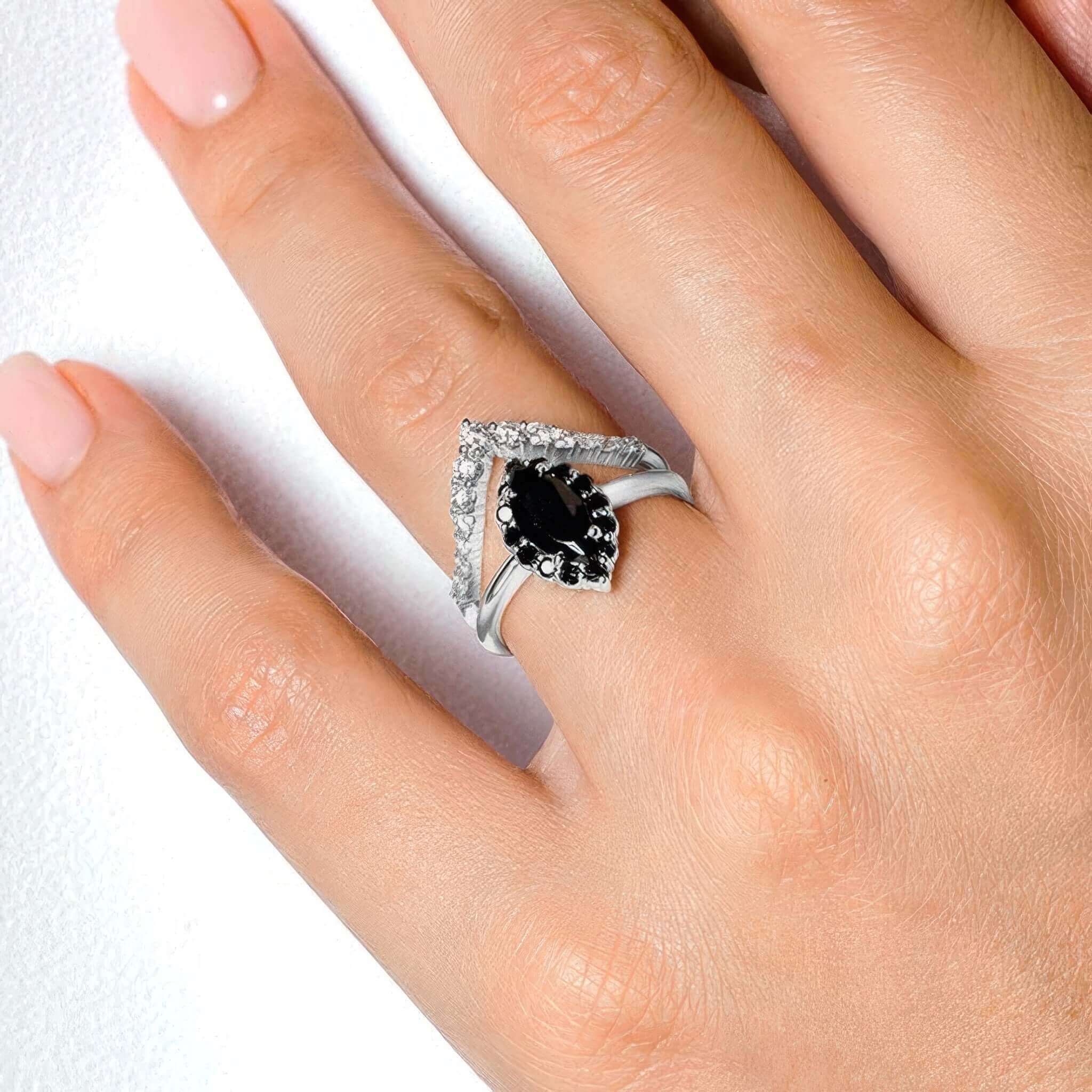 Marquise Cut Black Diamond Wedding Set With White Diamonds