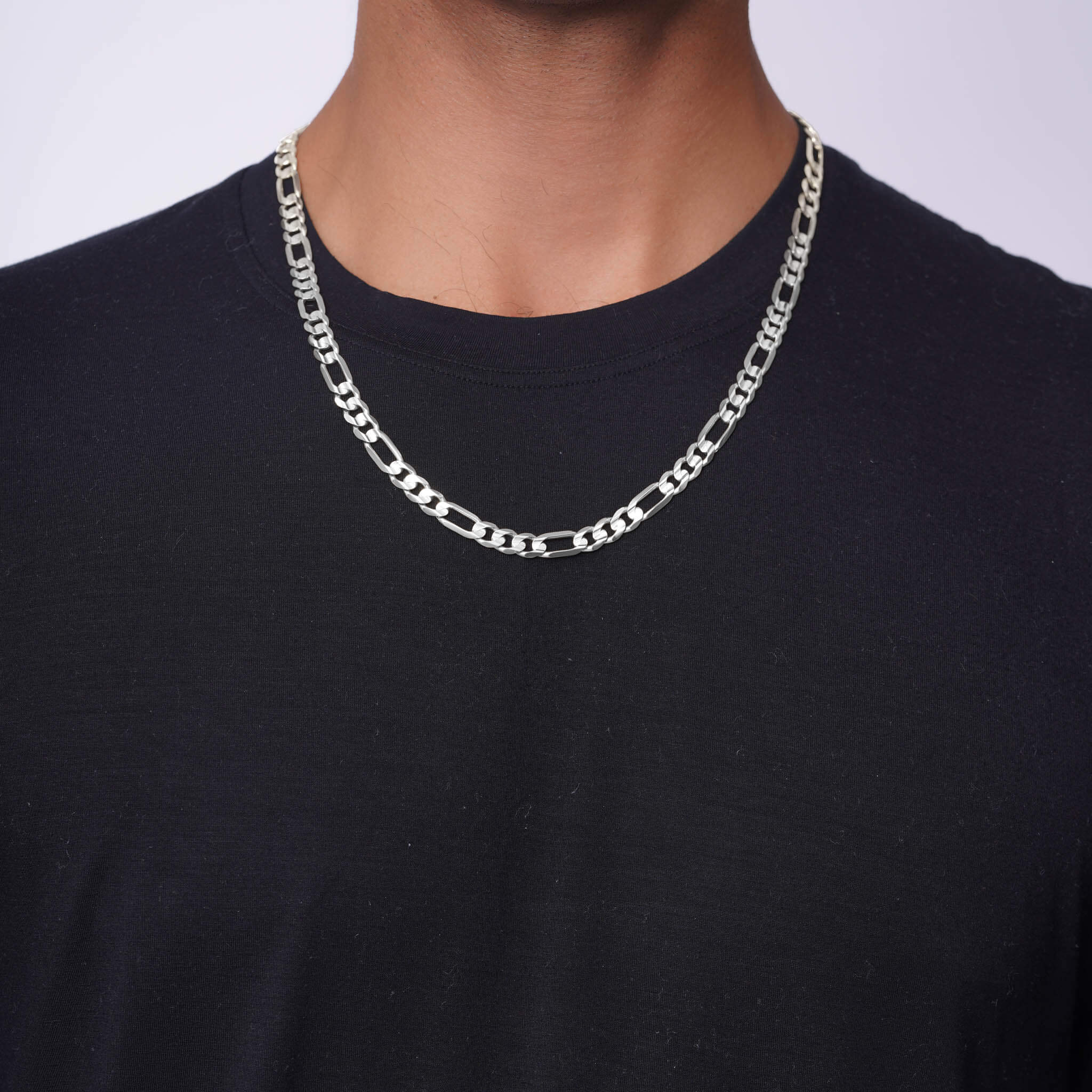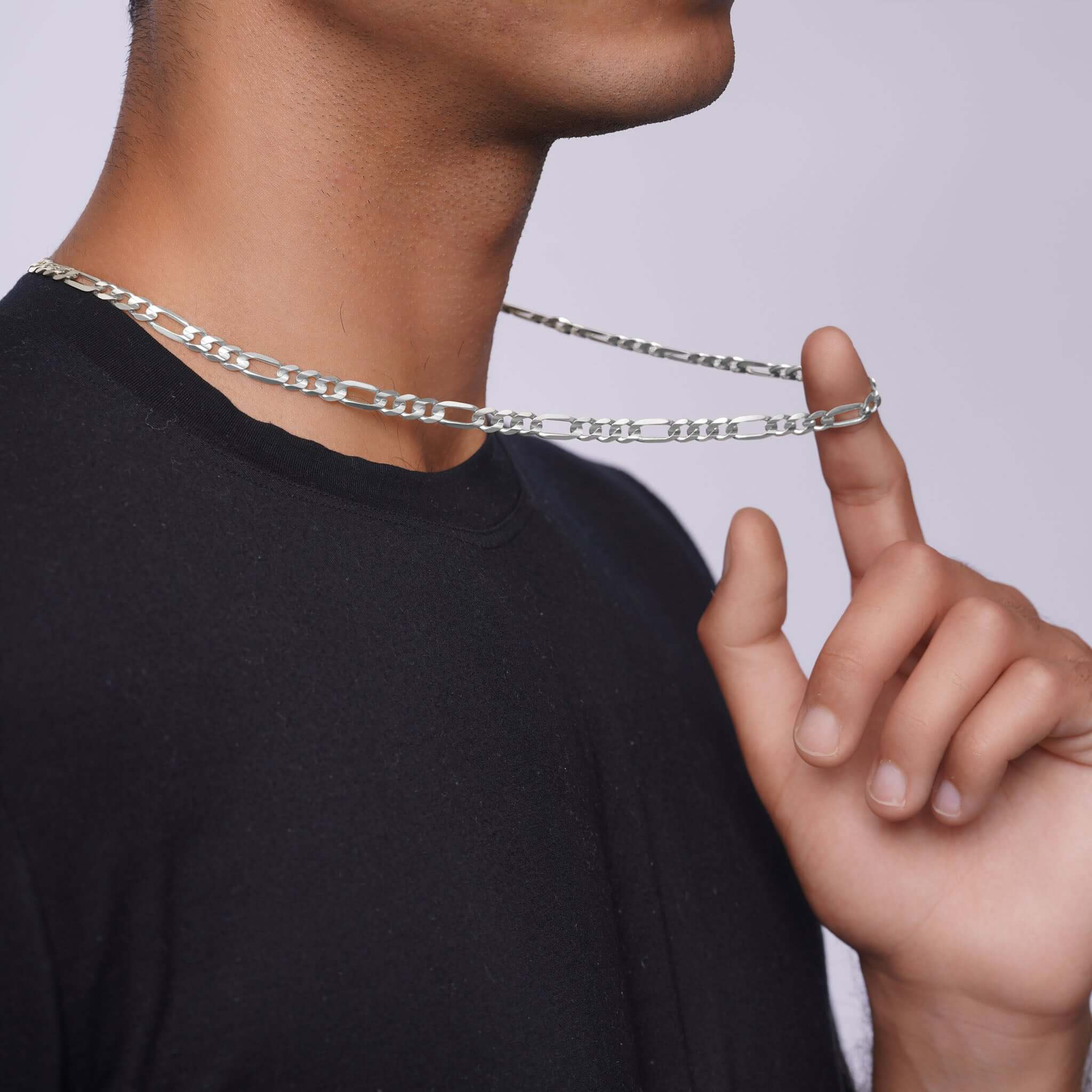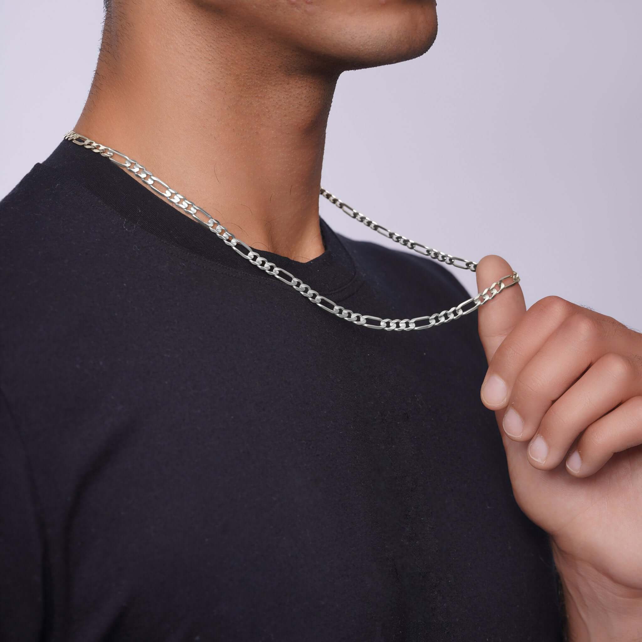 Elevate your style with this expertly crafted men's figaro white gold chain, renowned for its distinctive pattern of alternating long and short links. Crafted with precision, this chain offers both durability and a polished look, making it a versatile accessory for both casual and formal occasions. Its timeless design complements any outfit while showcasing refined craftsmanship and lasting quality.