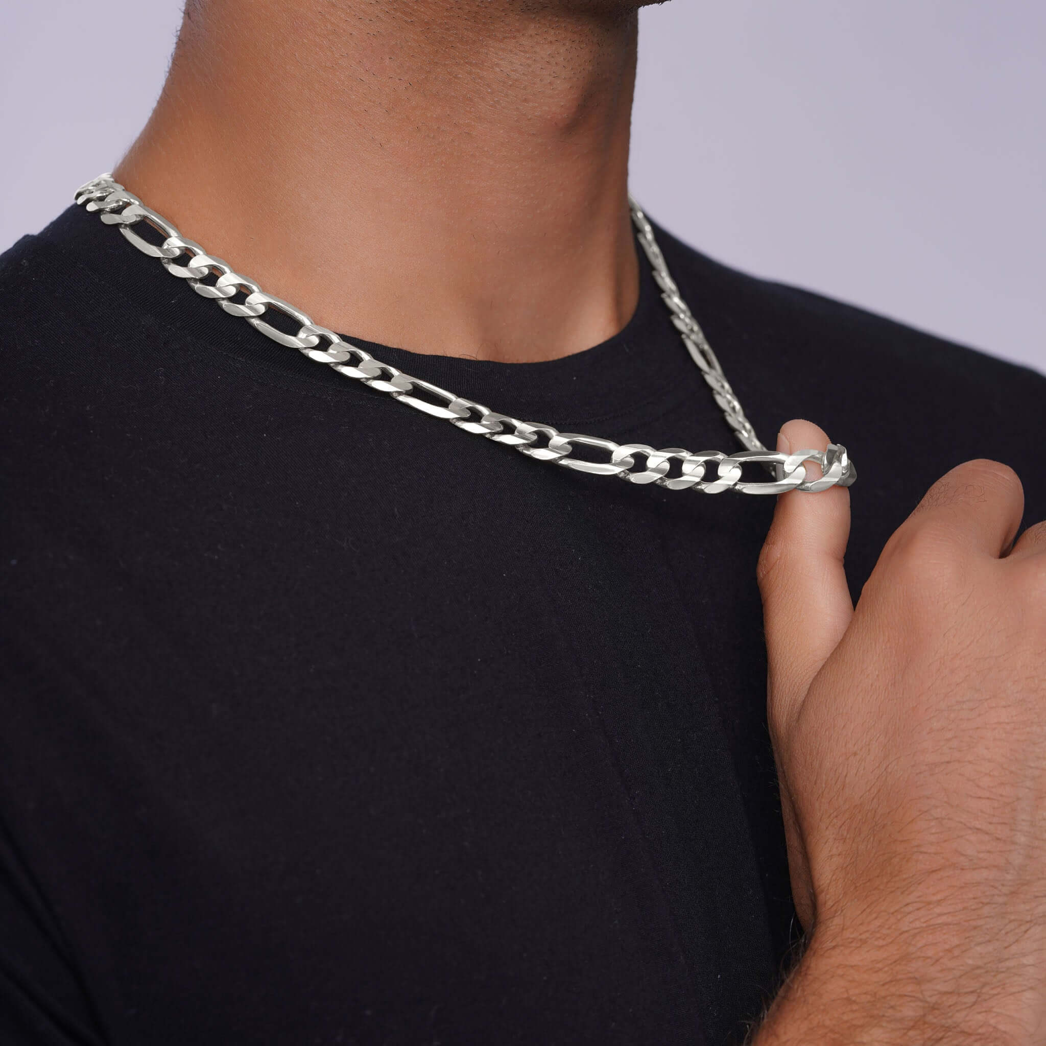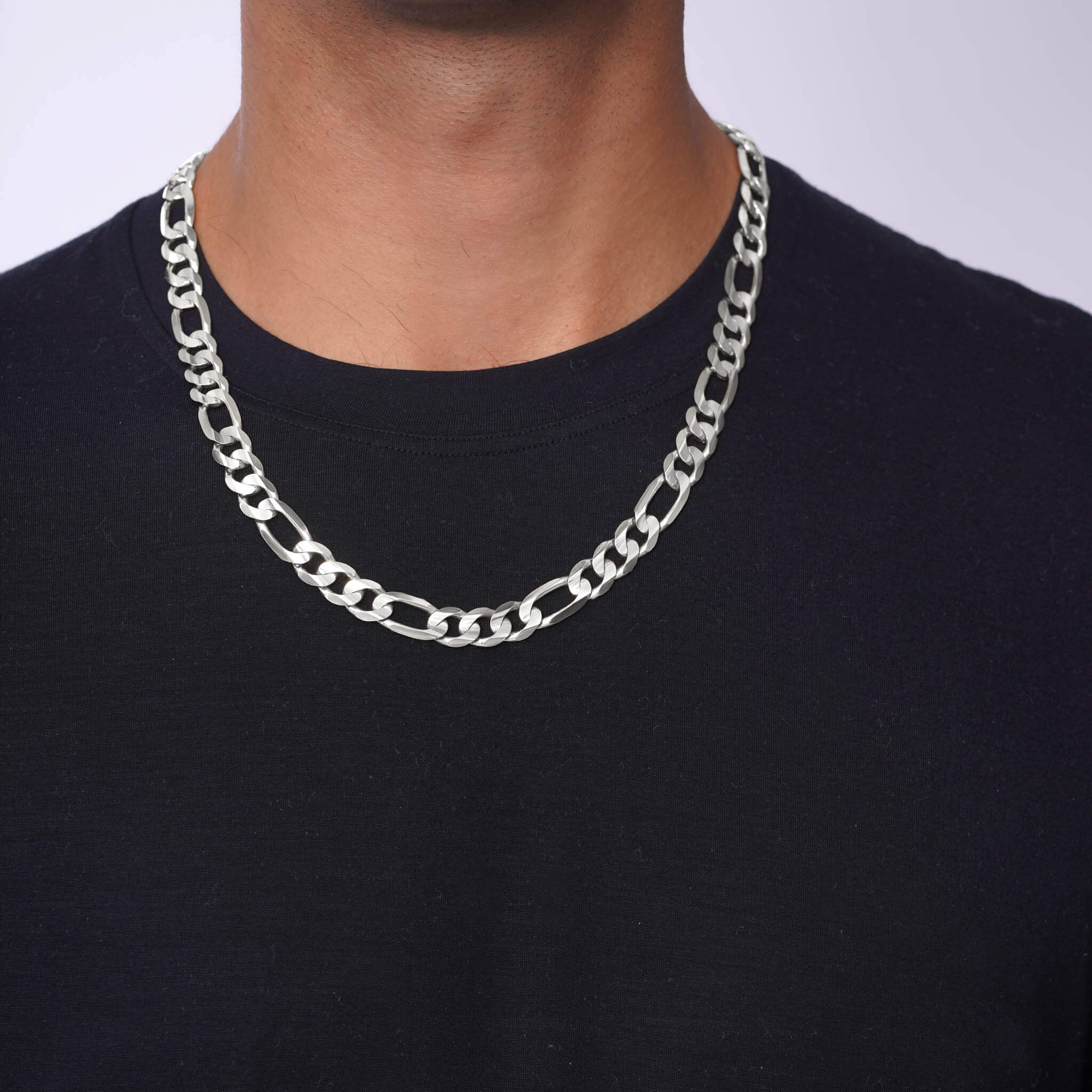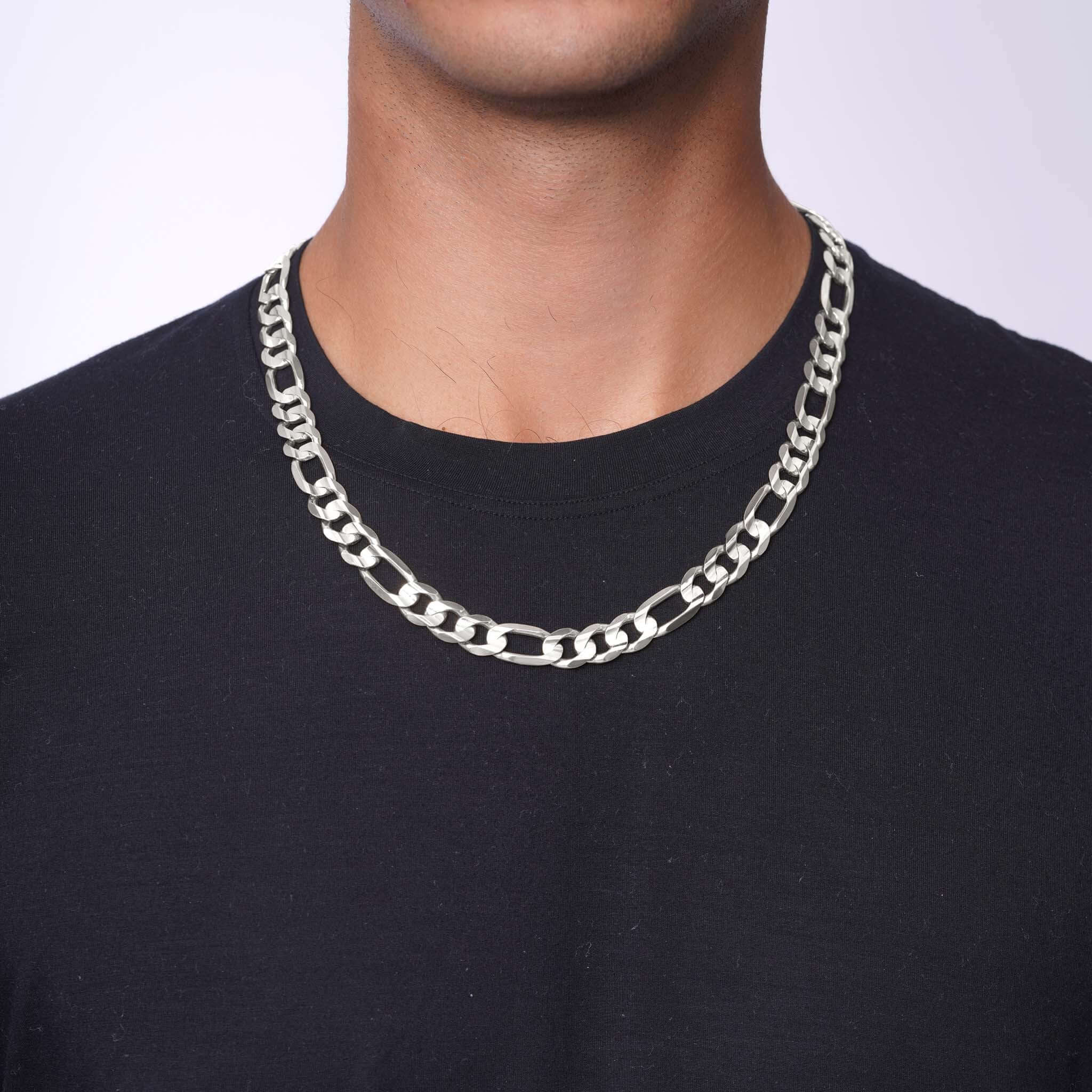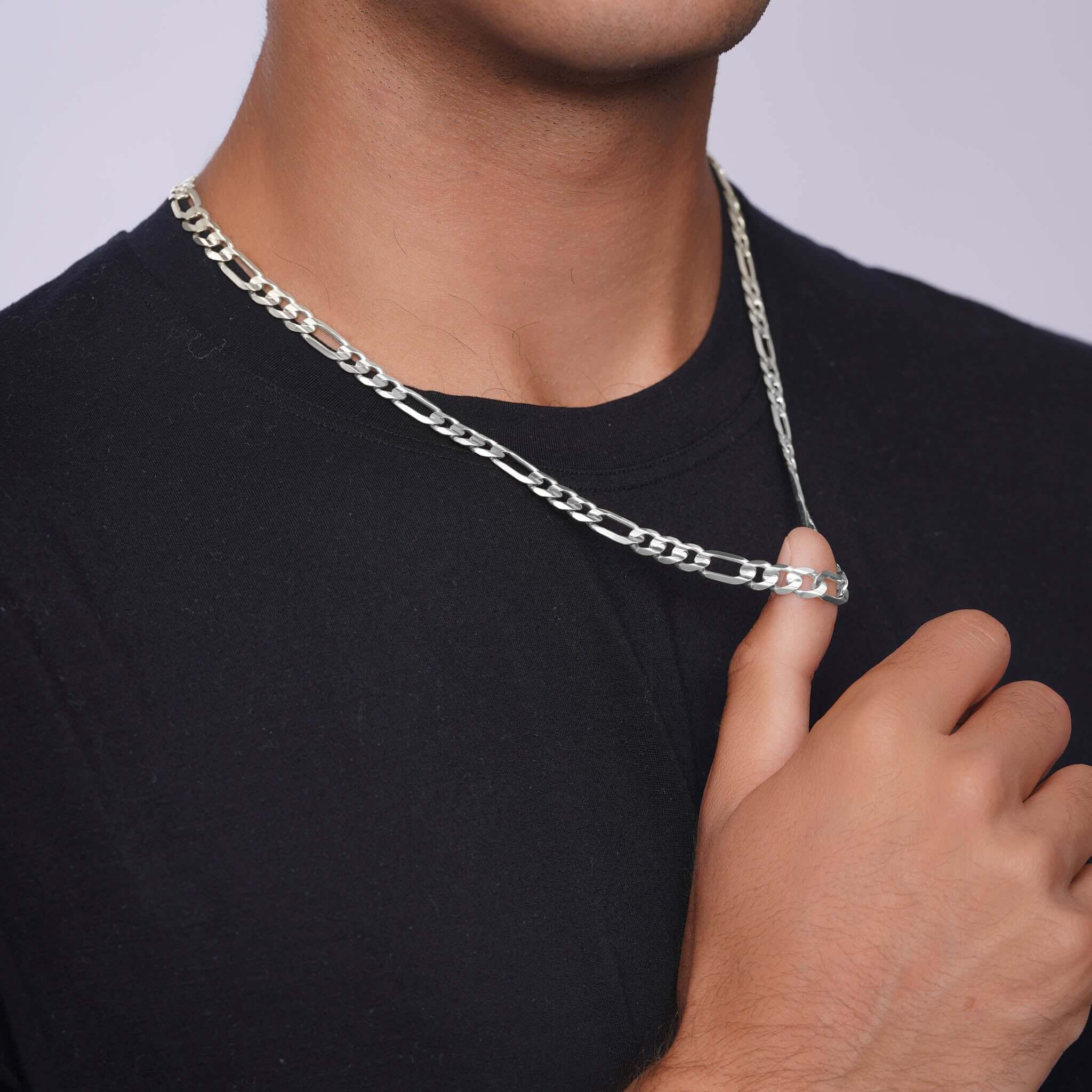 Elevate your style with this expertly crafted men's figaro white gold chain, renowned for its distinctive pattern of alternating long and short links. Crafted with precision, this chain offers both durability and a polished look, making it a versatile accessory for both casual and formal occasions. Its timeless design complements any outfit while showcasing refined craftsmanship and lasting quality.