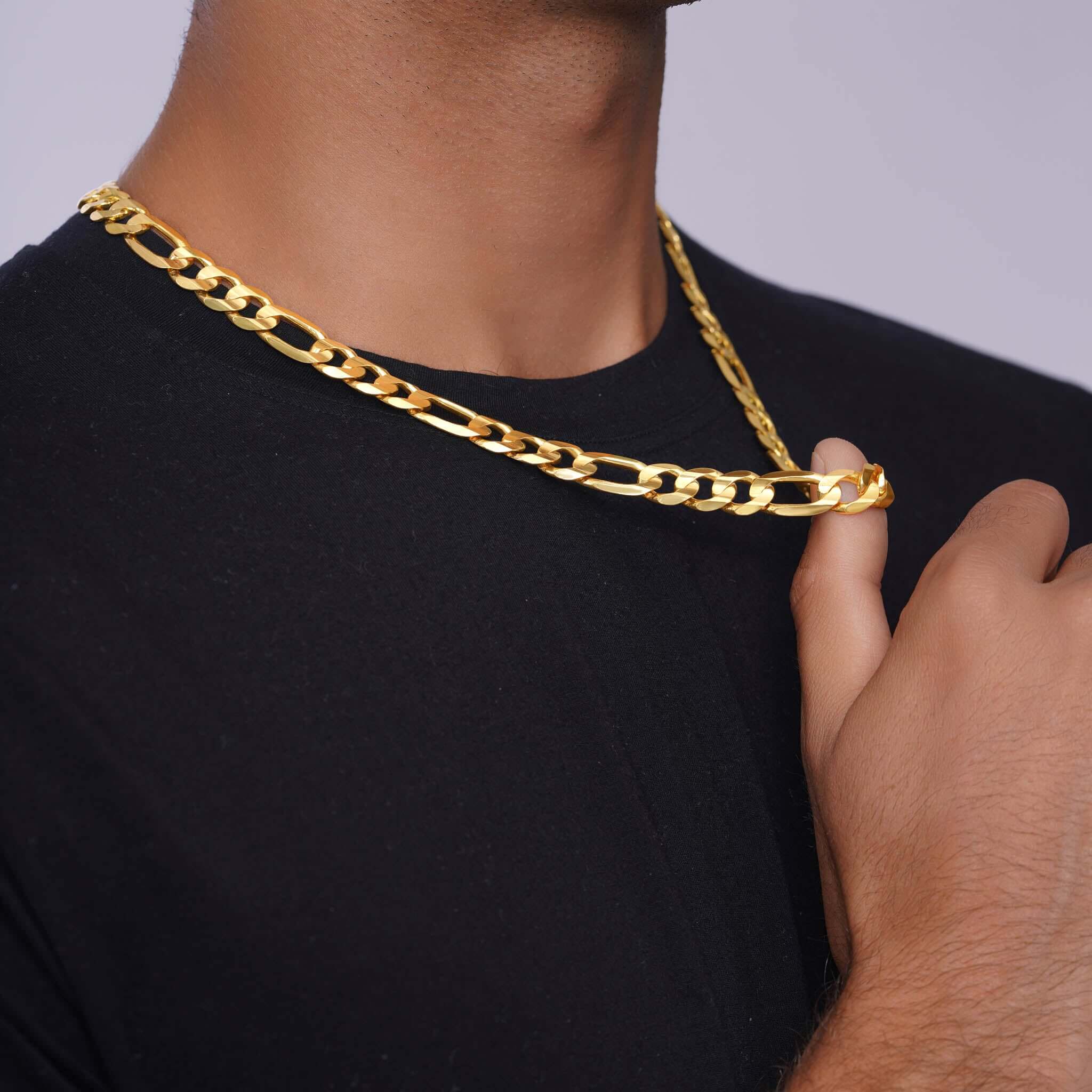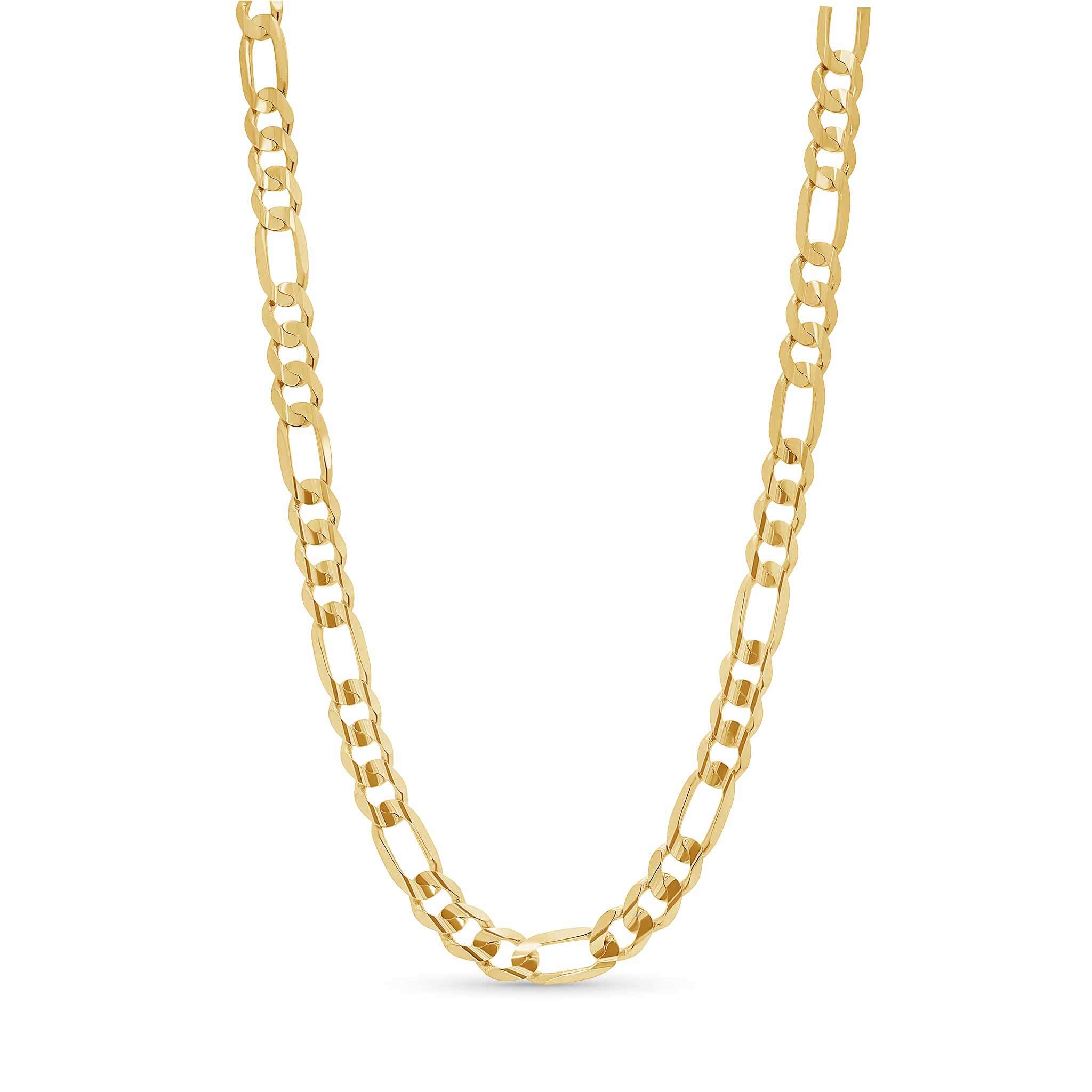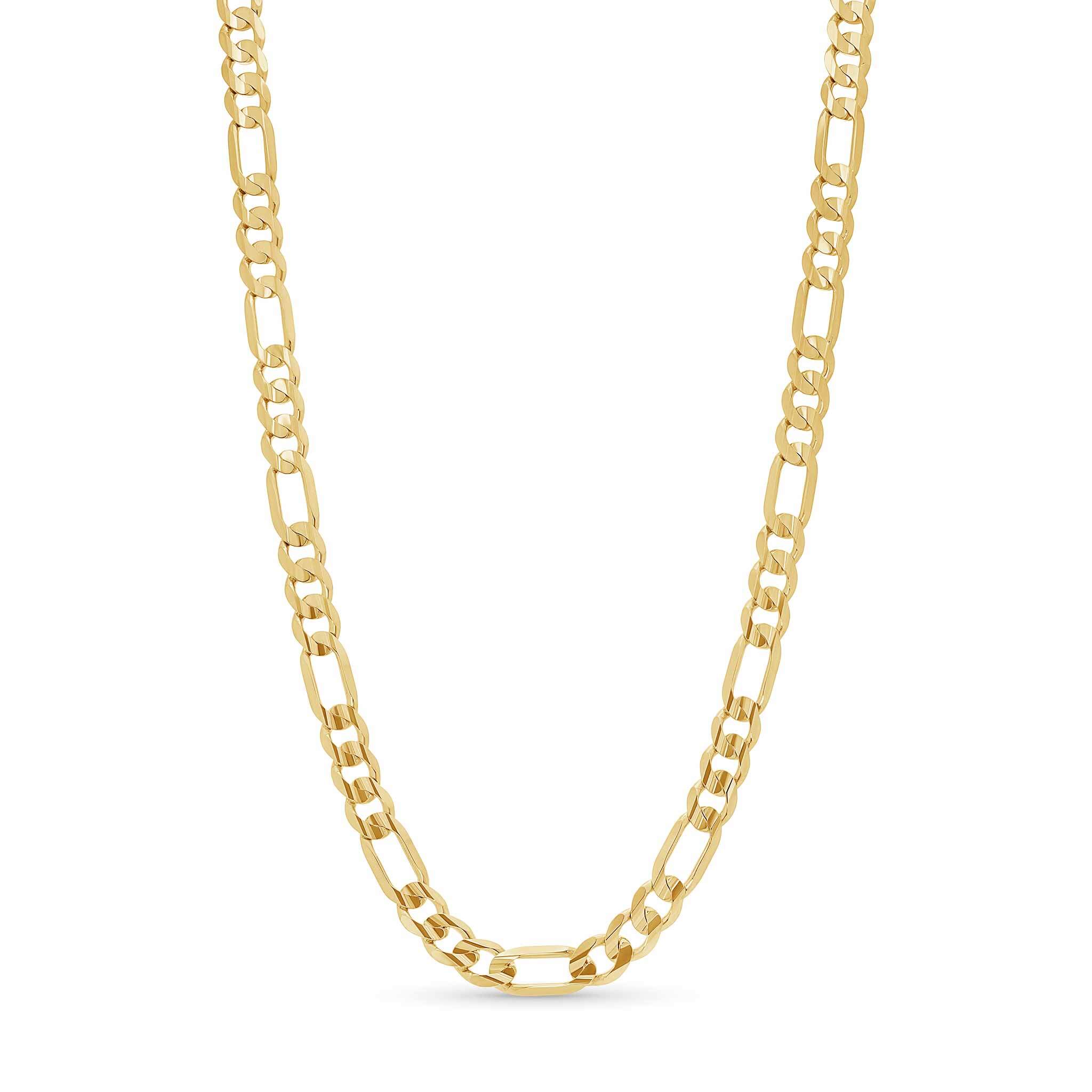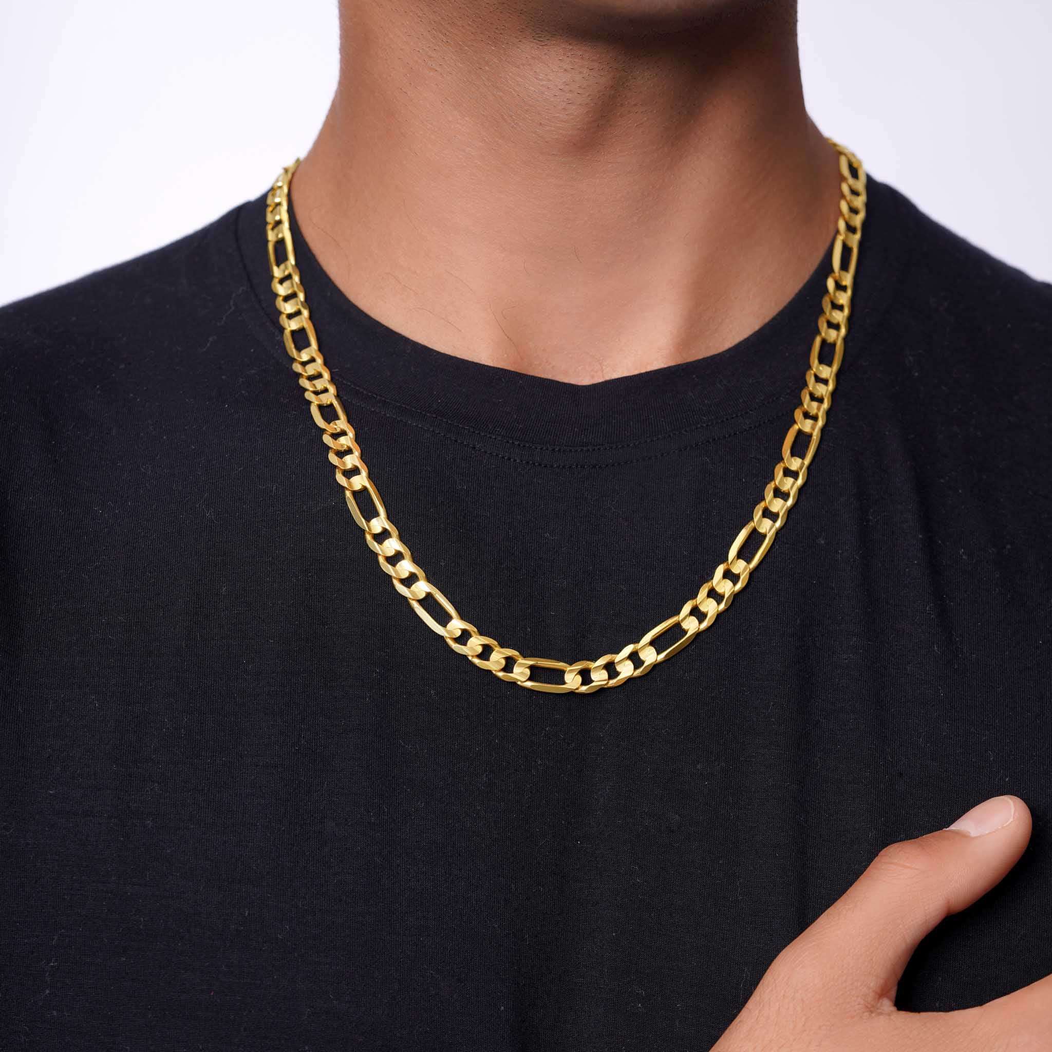 Elevate your style with this expertly crafted men's figaro yellow gold chain, renowned for its distinctive pattern of alternating long and short links. Crafted with precision, this chain offers both durability and a polished look, making it a versatile accessory for both casual and formal occasions. Its timeless design complements any outfit while showcasing refined craftsmanship and lasting quality.