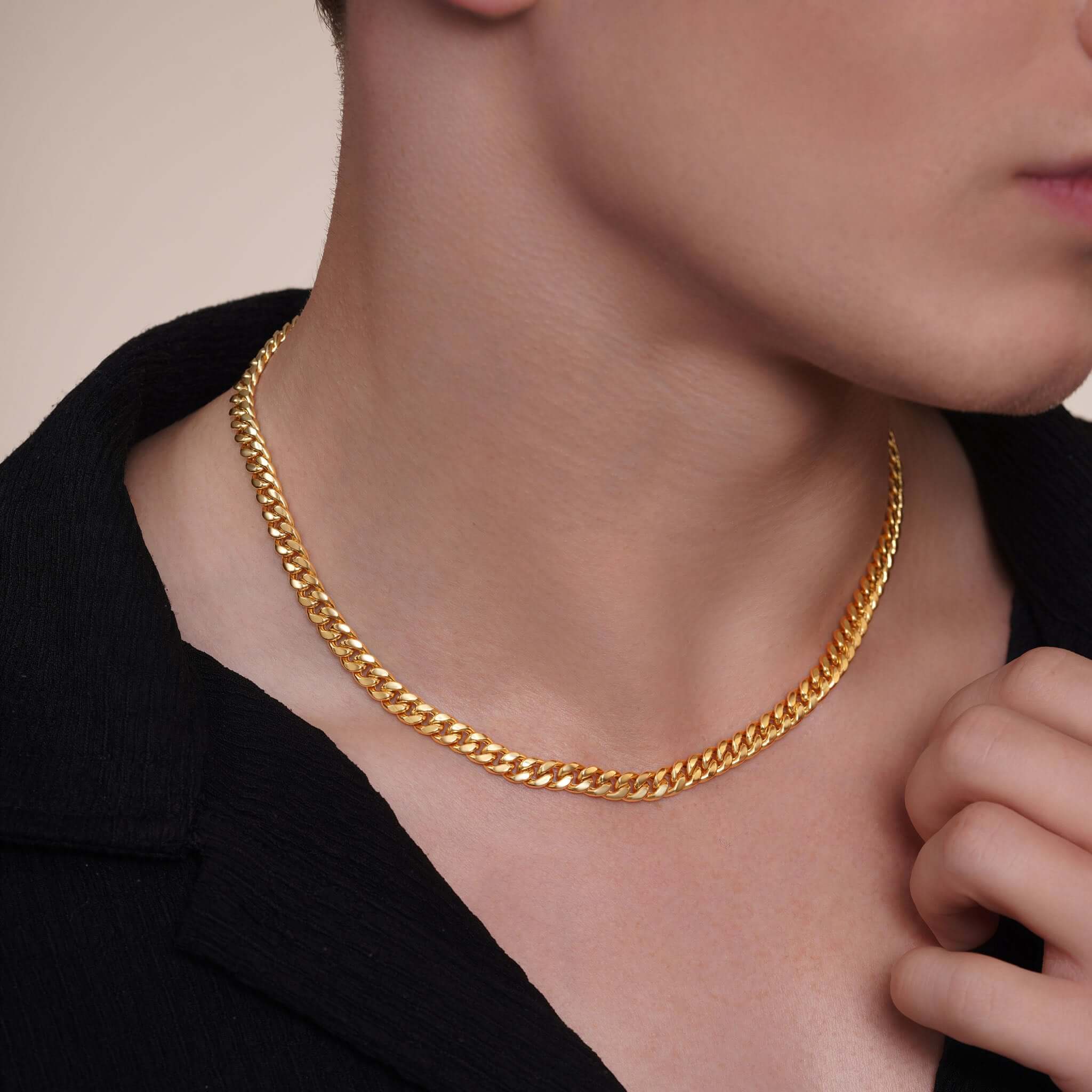 The chain is completed with a sturdy lobster clasp for secure fastening. Whether worn alone as a polished statement piece or paired with pendants, this Cuban link chain offers timeless elegance with effortless wearability.