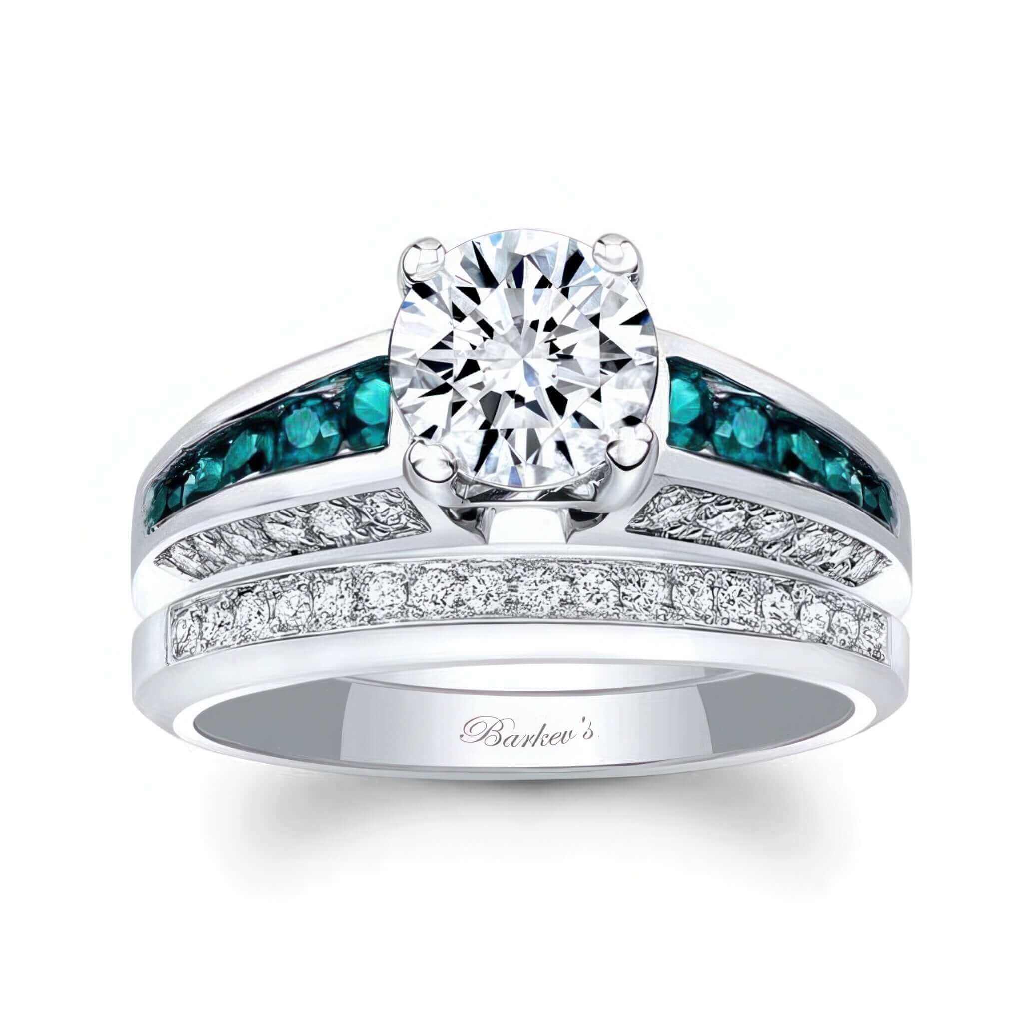 Moissanite Channel Set Wedding Ring Set With Blue Diamonds