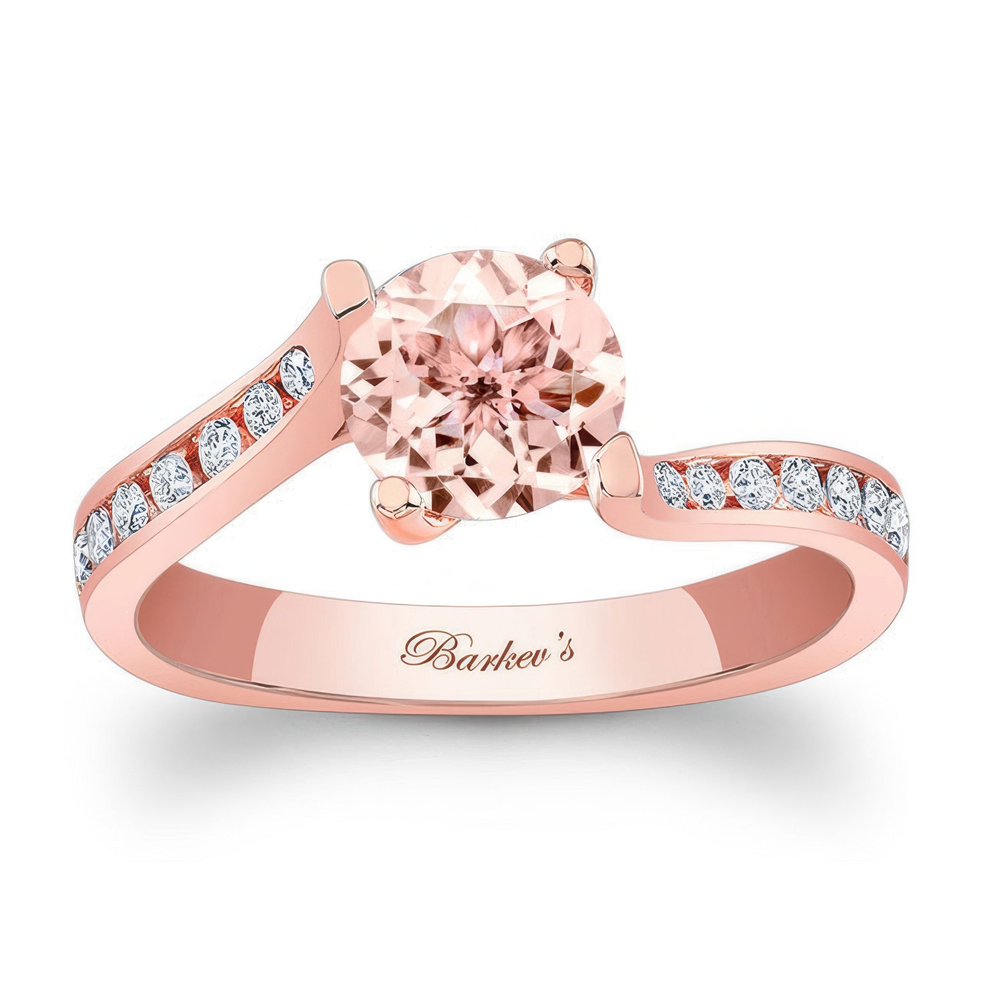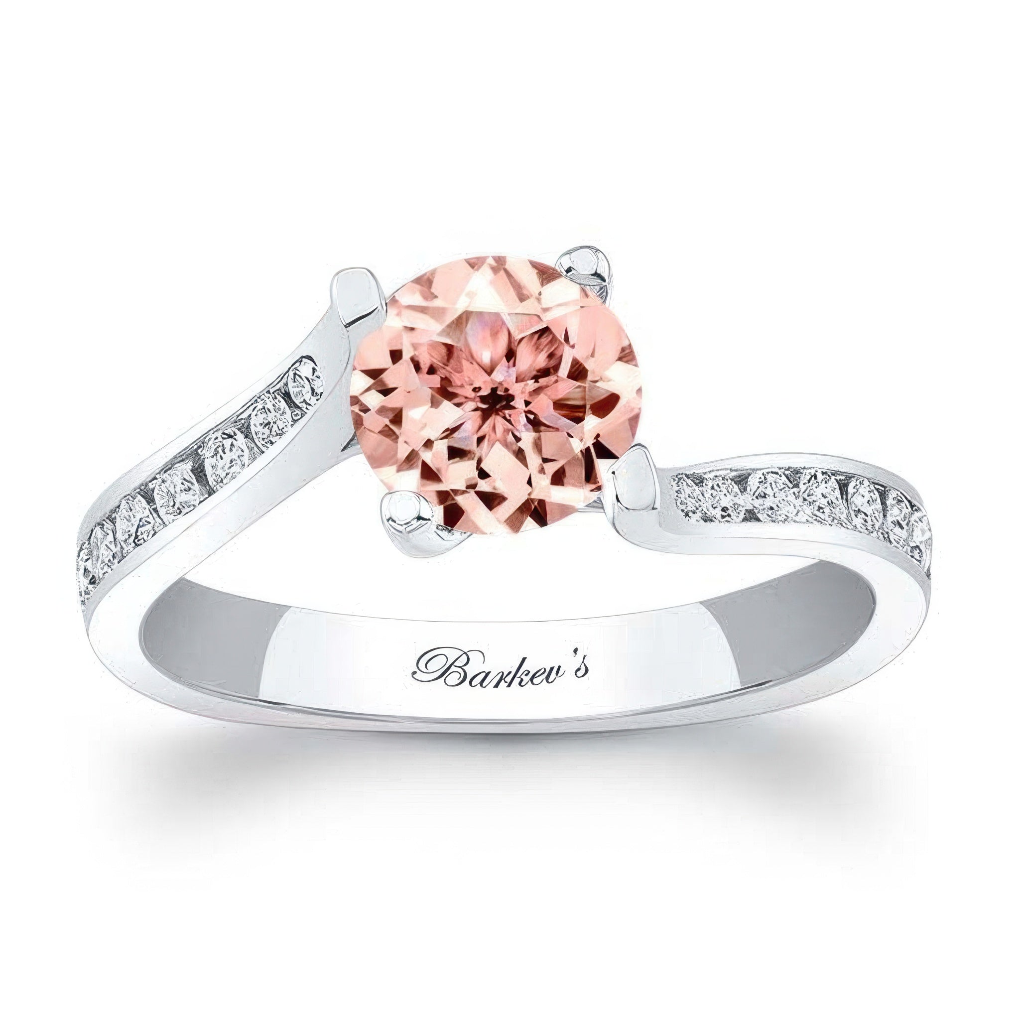 This open bypass morganite ring features a prong set center suspended between the channel set diamond shoulders for an elegant sophisticated look.