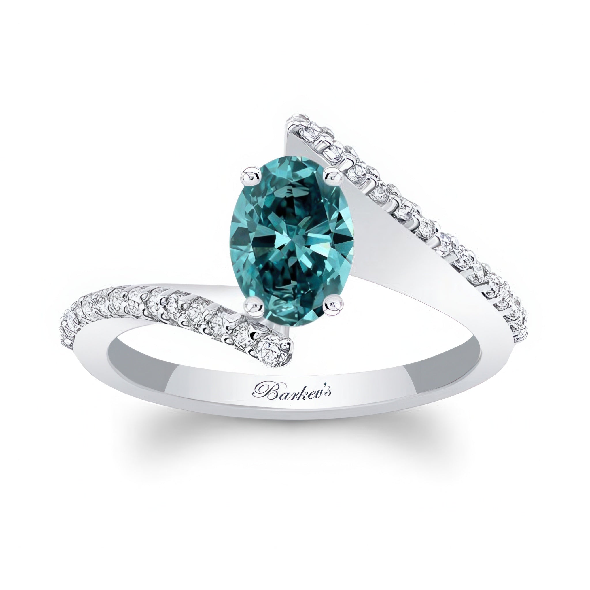 This elegant oval blue and white diamond ring gives the illusion of a "floating" tension style setting at a first glance, however from the side, the center is clearly seen sitting in it's own basket securely. The pave side stones brilliantly add a touch of glamour to this sophisticated piece of jewelry.