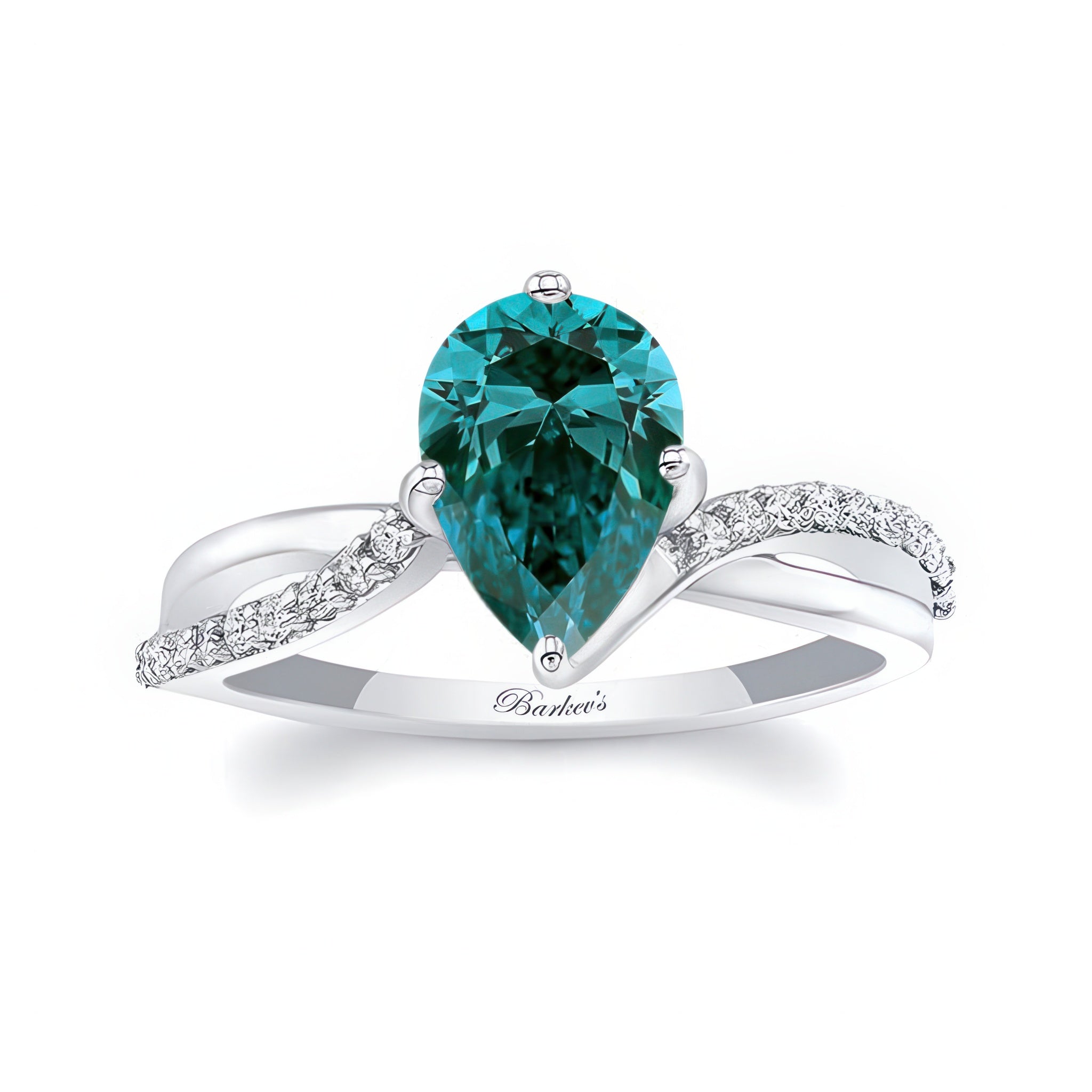 Pear Shaped Blue And White Diamond Ring With Twisted Band