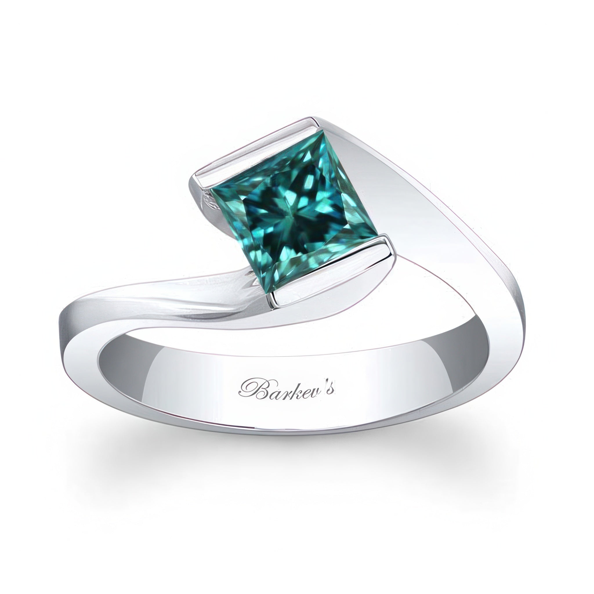Princess Blue And White Diamond Solitaire Engagement Ring