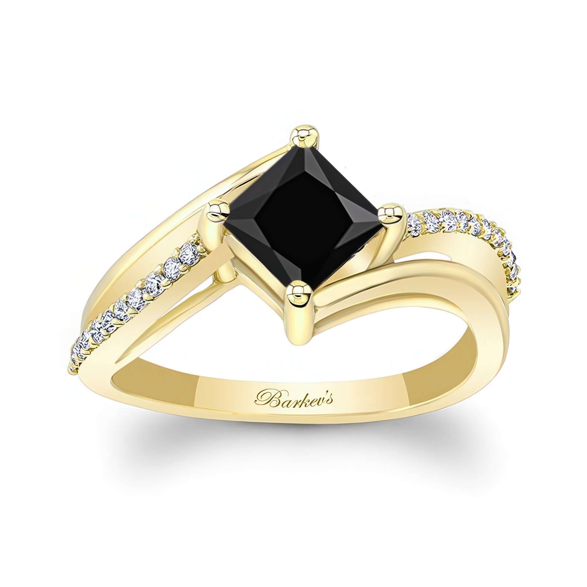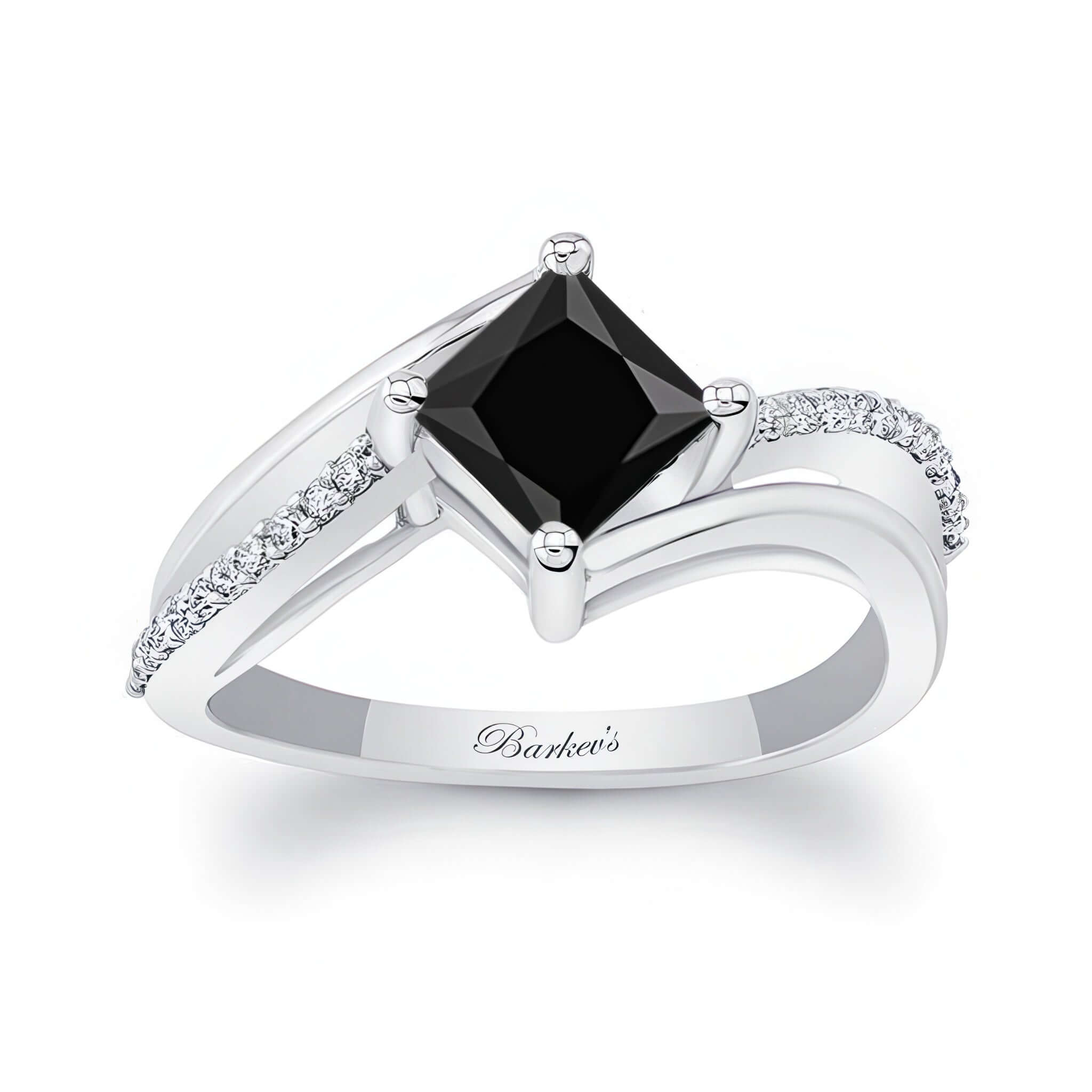 This princess cut black and white diamond engagement ring features a stunning 1 carat center with a split shank adorned with diamond melees for an extra touch of sparkle.
