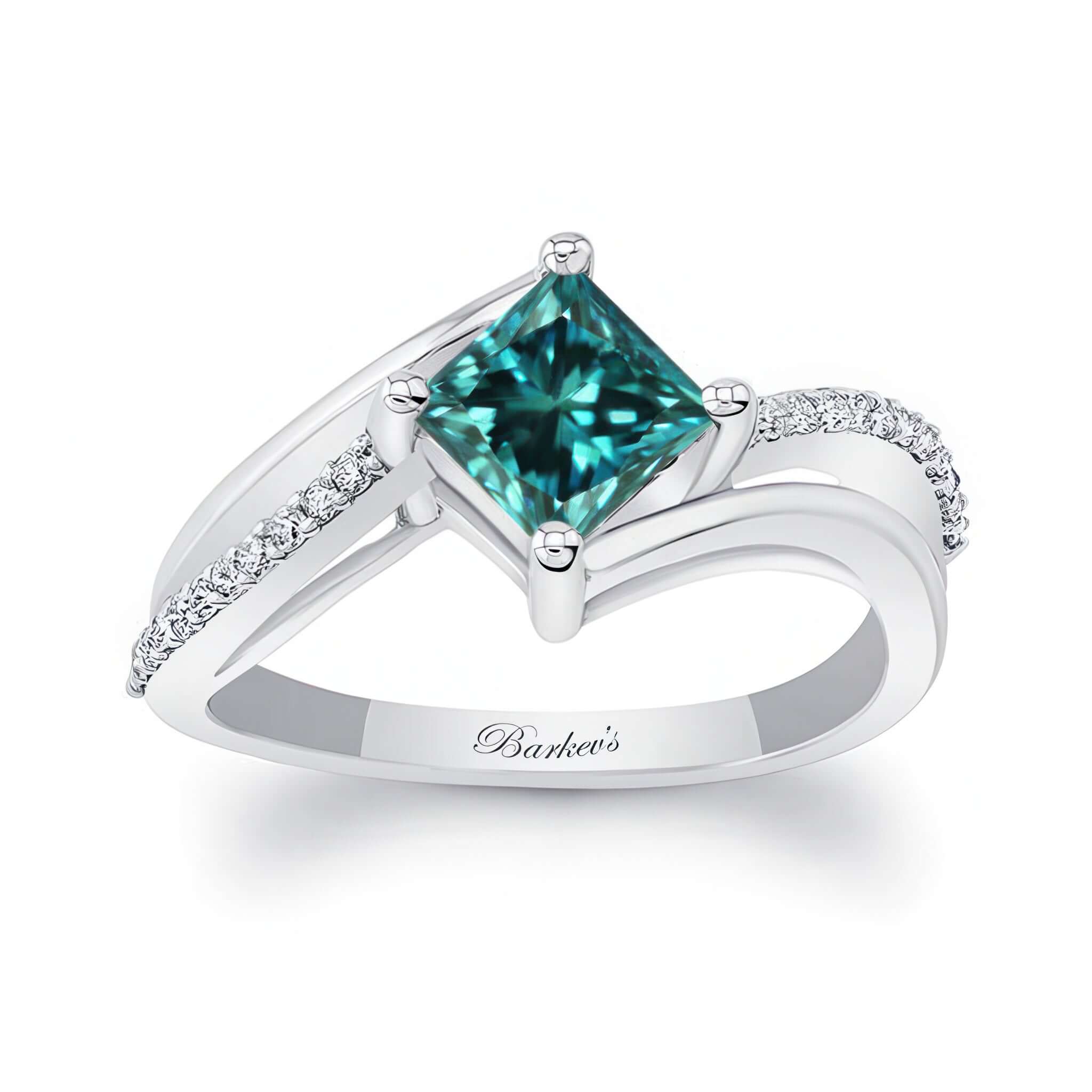 This princess cut blue and white diamond engagement ring features a stunning 1 carat center with a split shank adorned with diamond melees for an extra touch of sparkle.