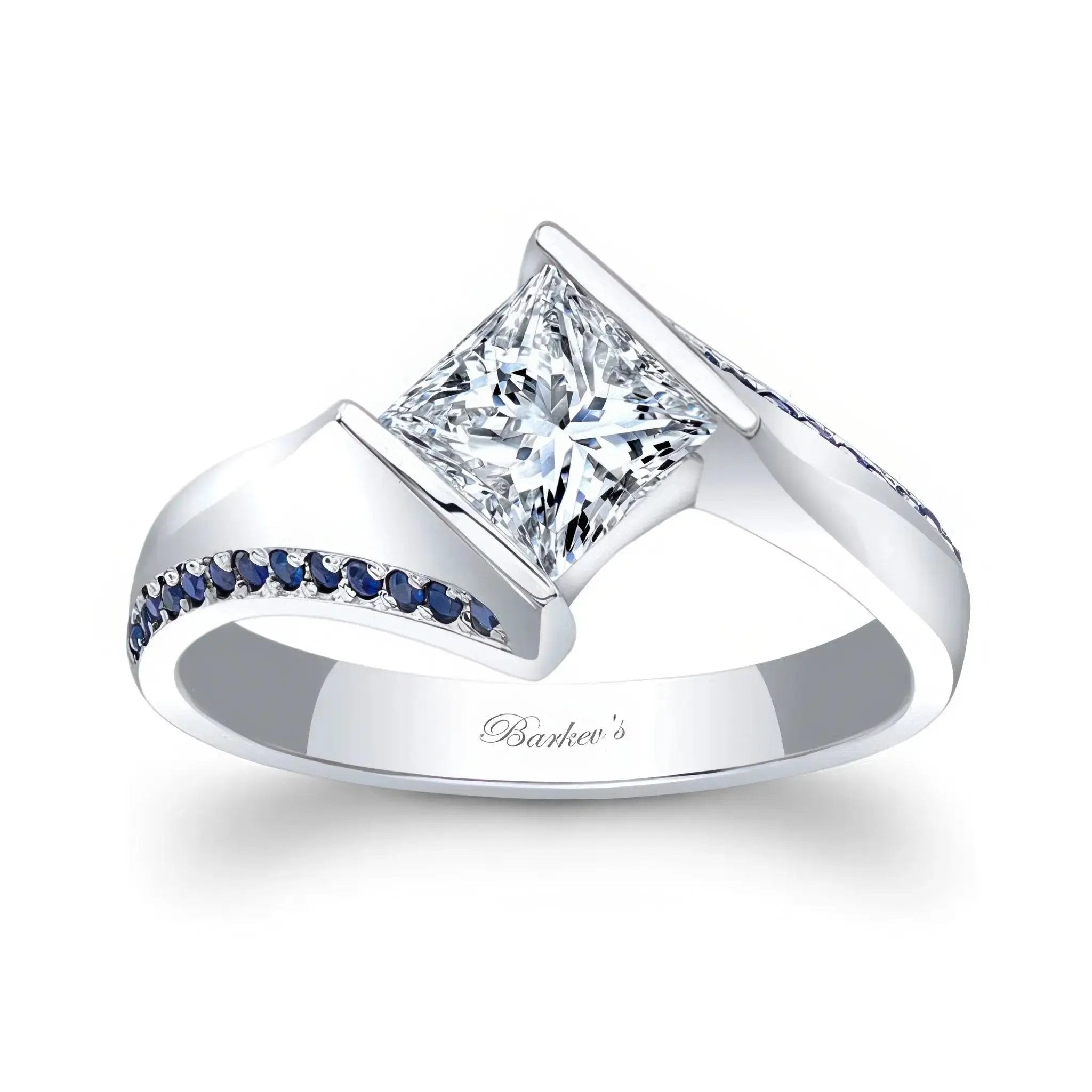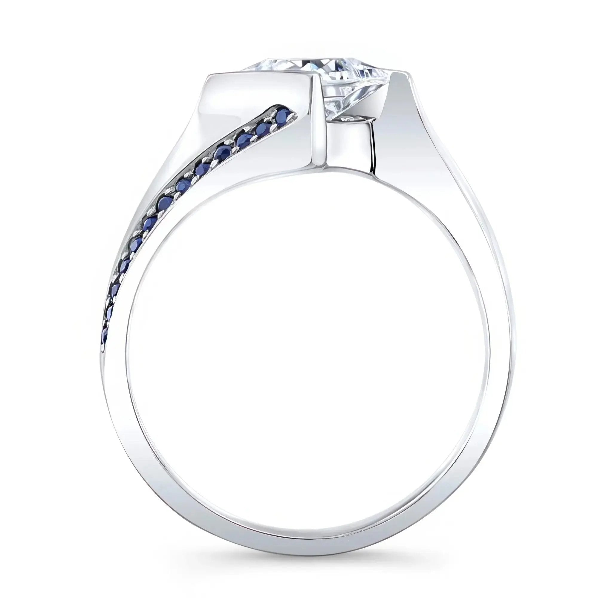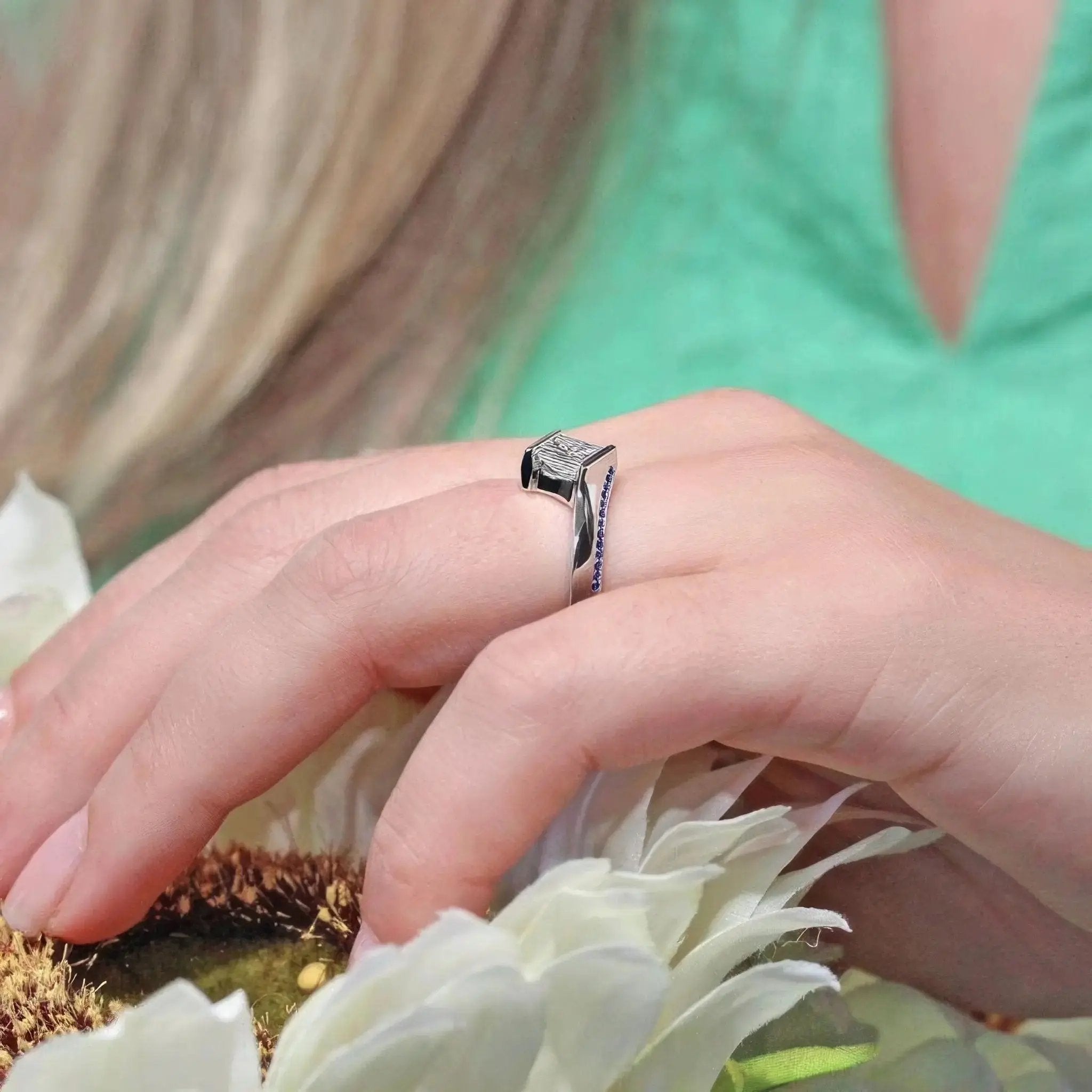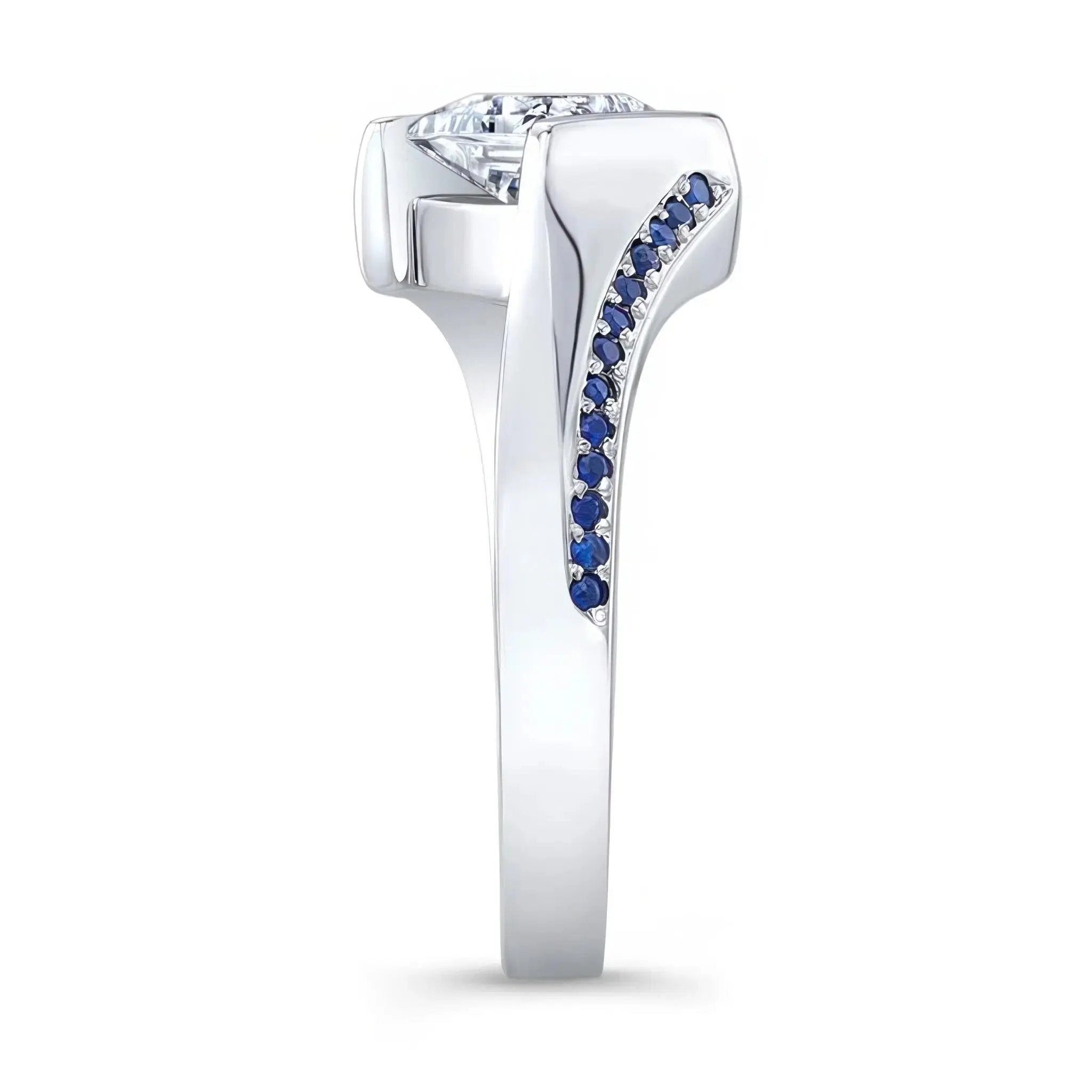Princess Cut Square Lab Grown Diamond Ring With Blue Sapphires