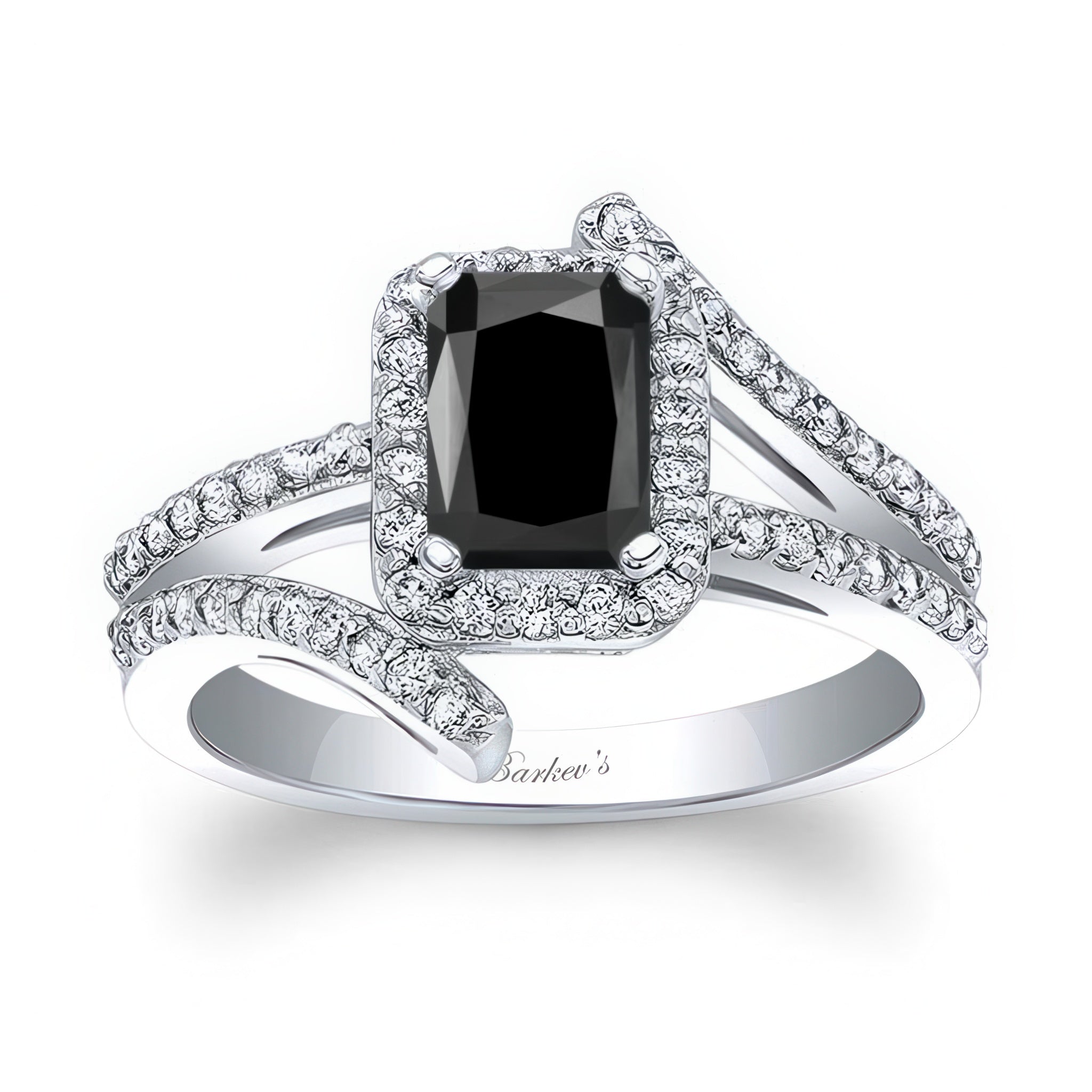 Rectangle Halo Radiant Cut Black And White Diamond Engagement Ring