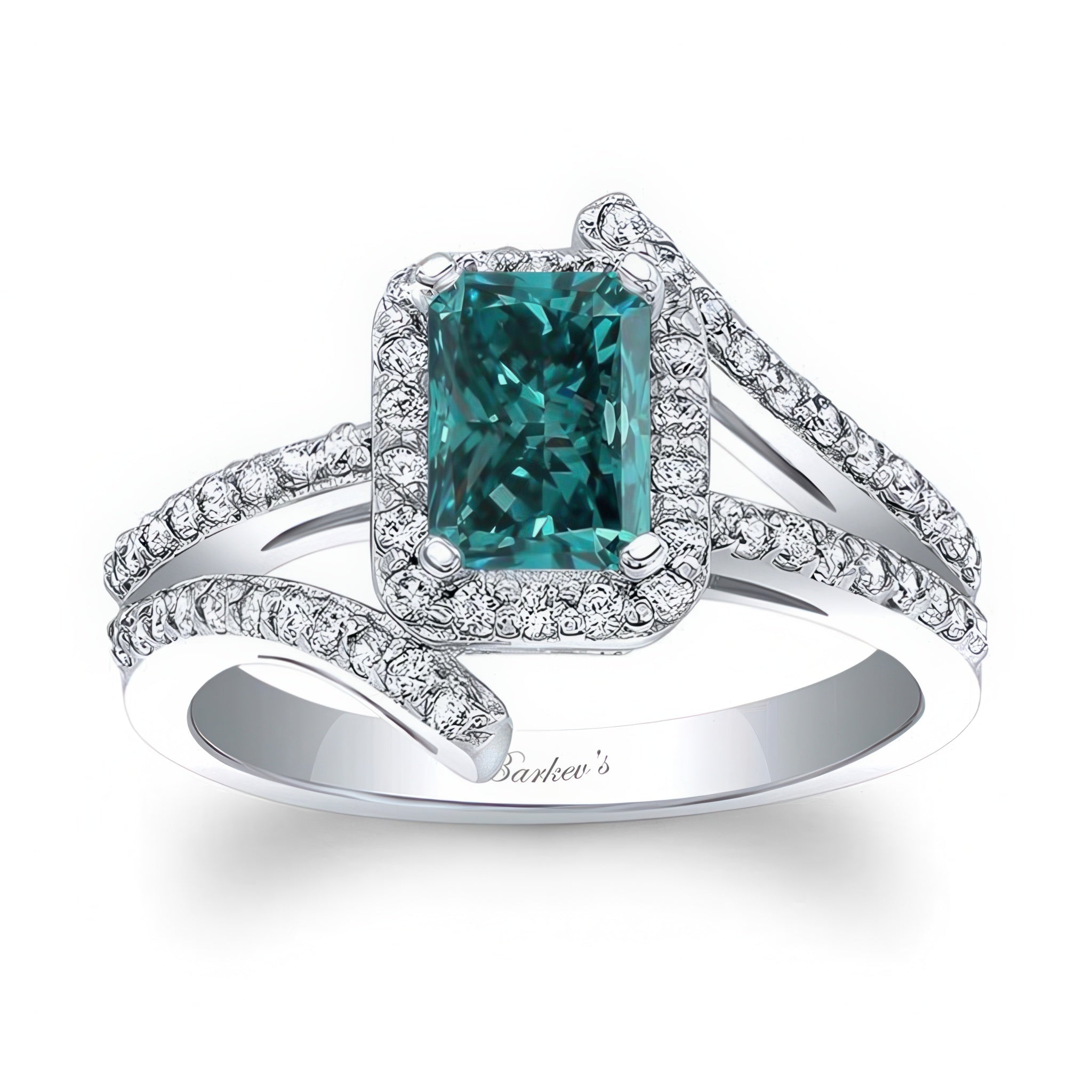 Rectangle Halo Radiant Cut Blue And White Diamond Engagement Ring