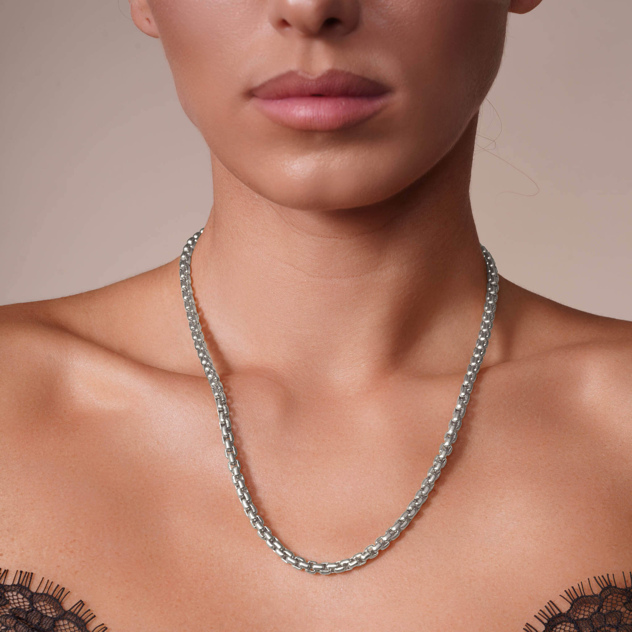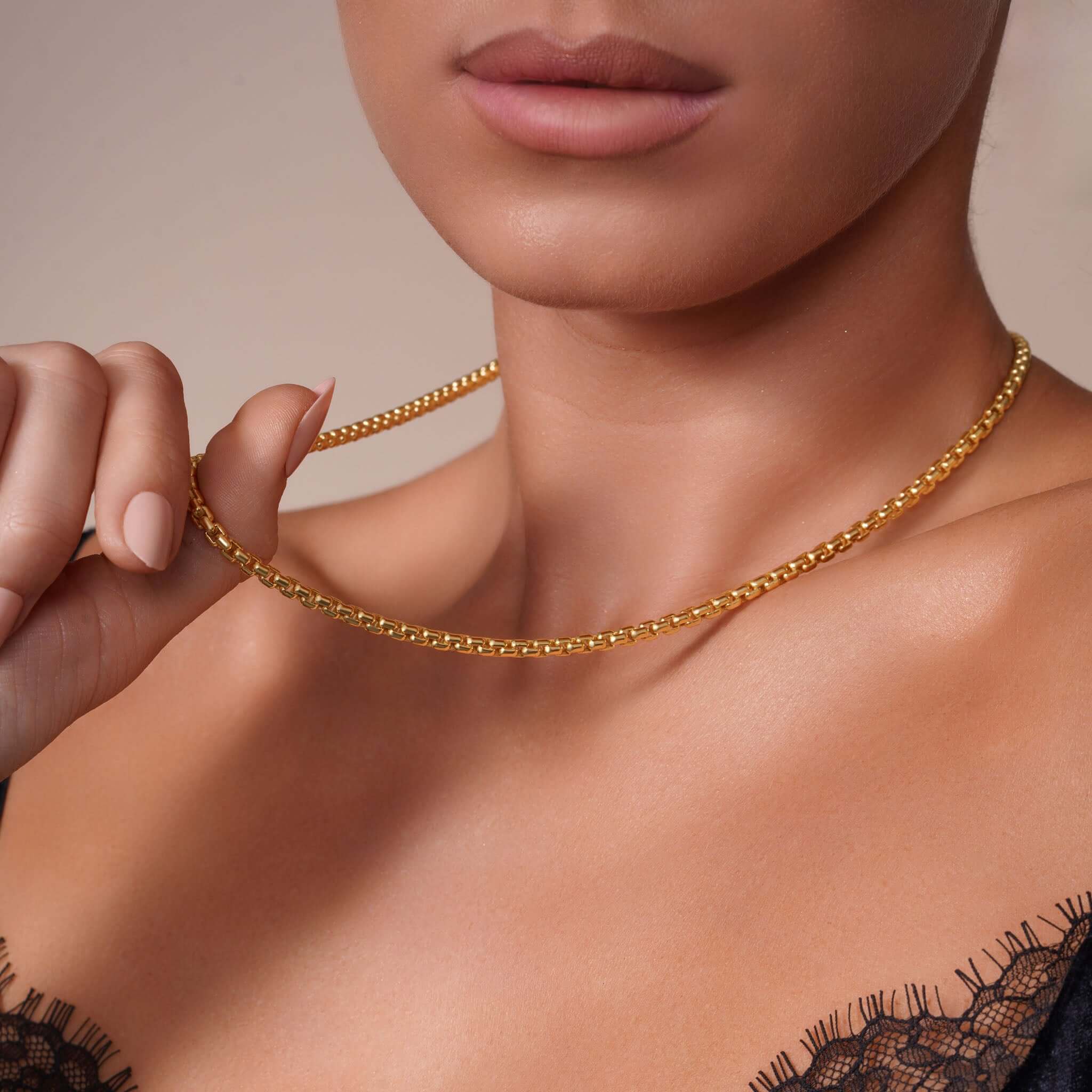 This Round Box Chain for women combines timeless elegance with durable design. Crafted in 14k yellow or white gold, it offers a refined look that complements any outfit while ensuring lasting quality. Its smooth, rounded links provide a comfortable fit and subtle shine, making it an ideal accessory for both everyday wear and special occasions.