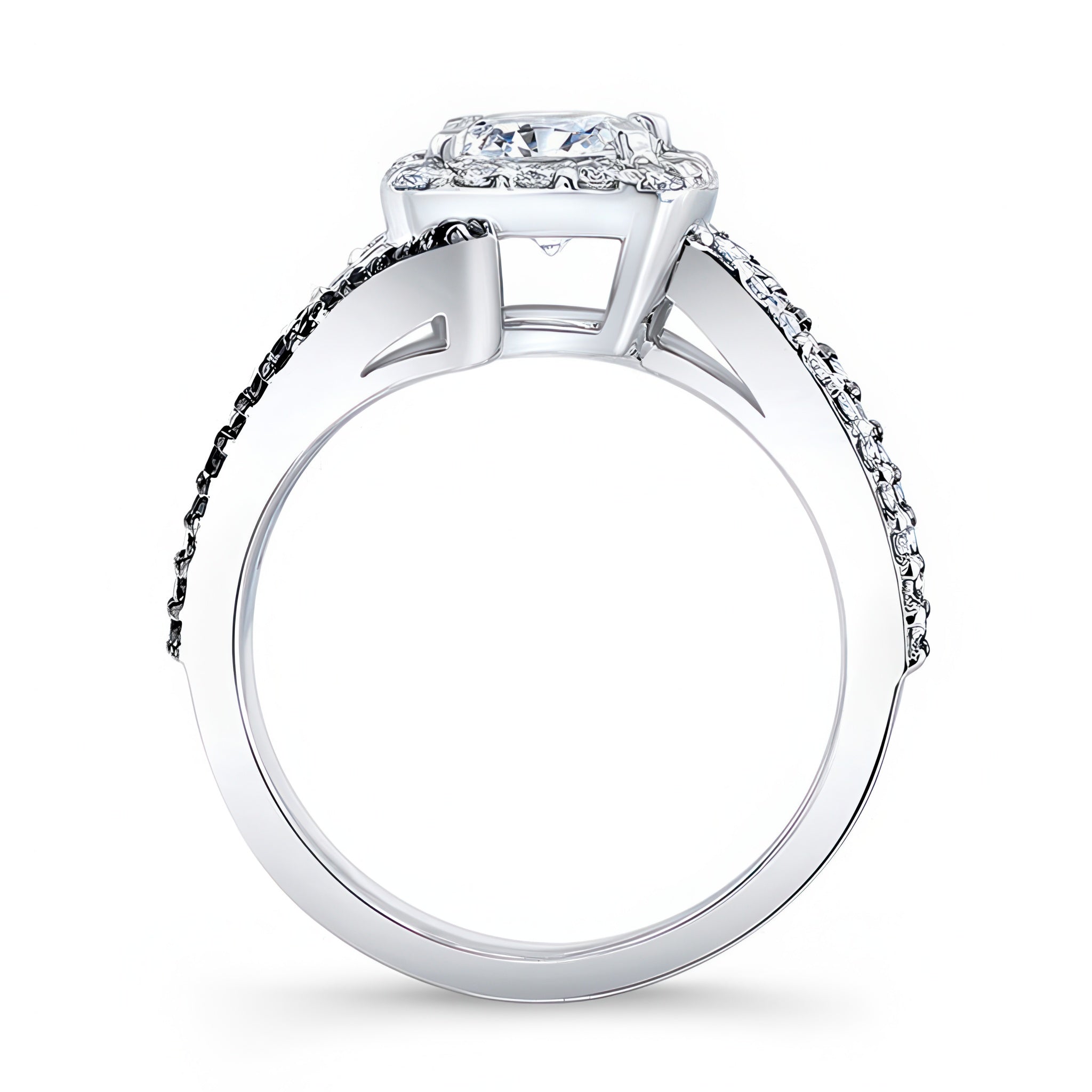 Split Shank Cushion Cut Moissanite Halo Ring With Black Diamonds
