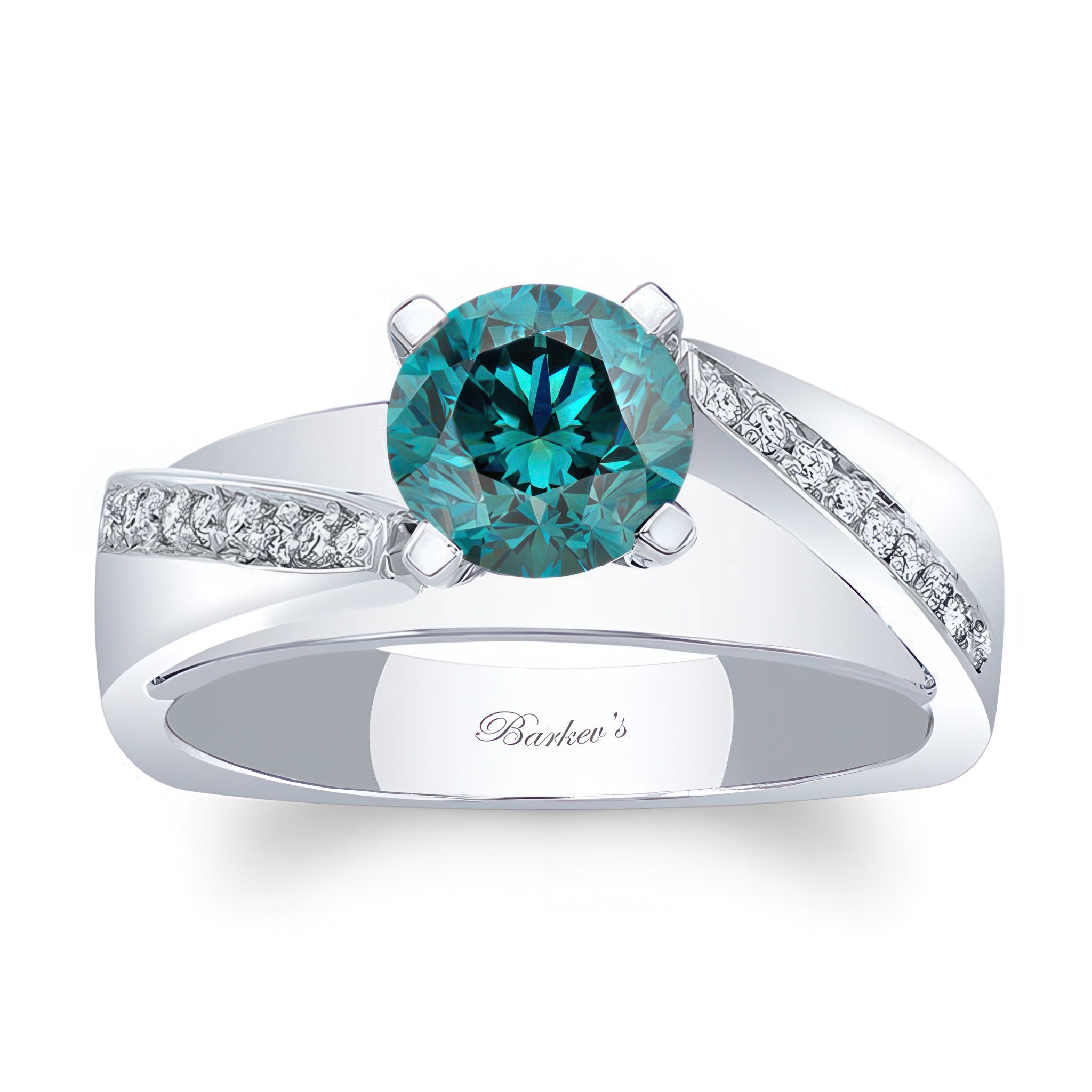 Split Shank Pave Blue And White Diamond Engagement Ring