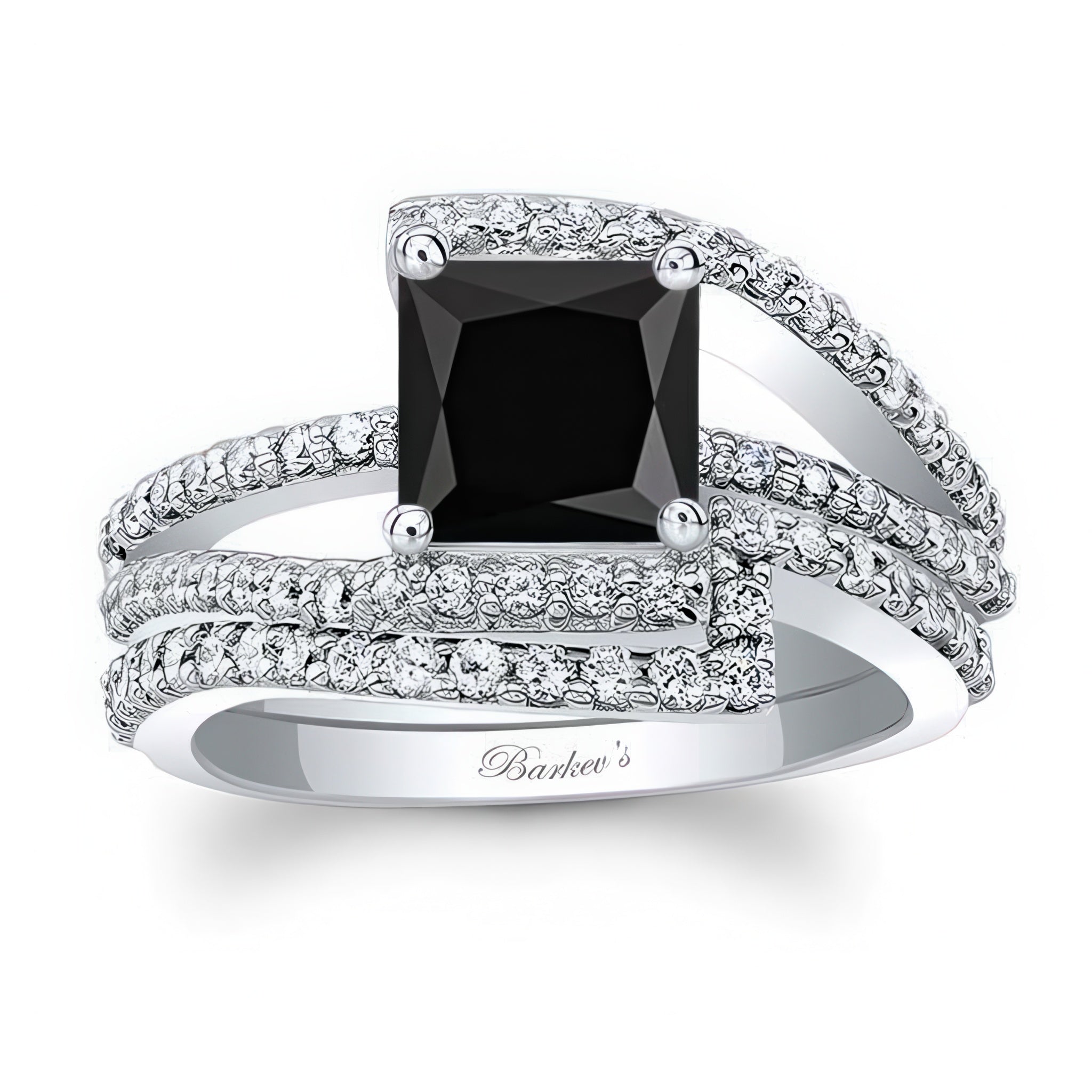 Split Shank Princess Cut Black And White Diamond Bridal Set