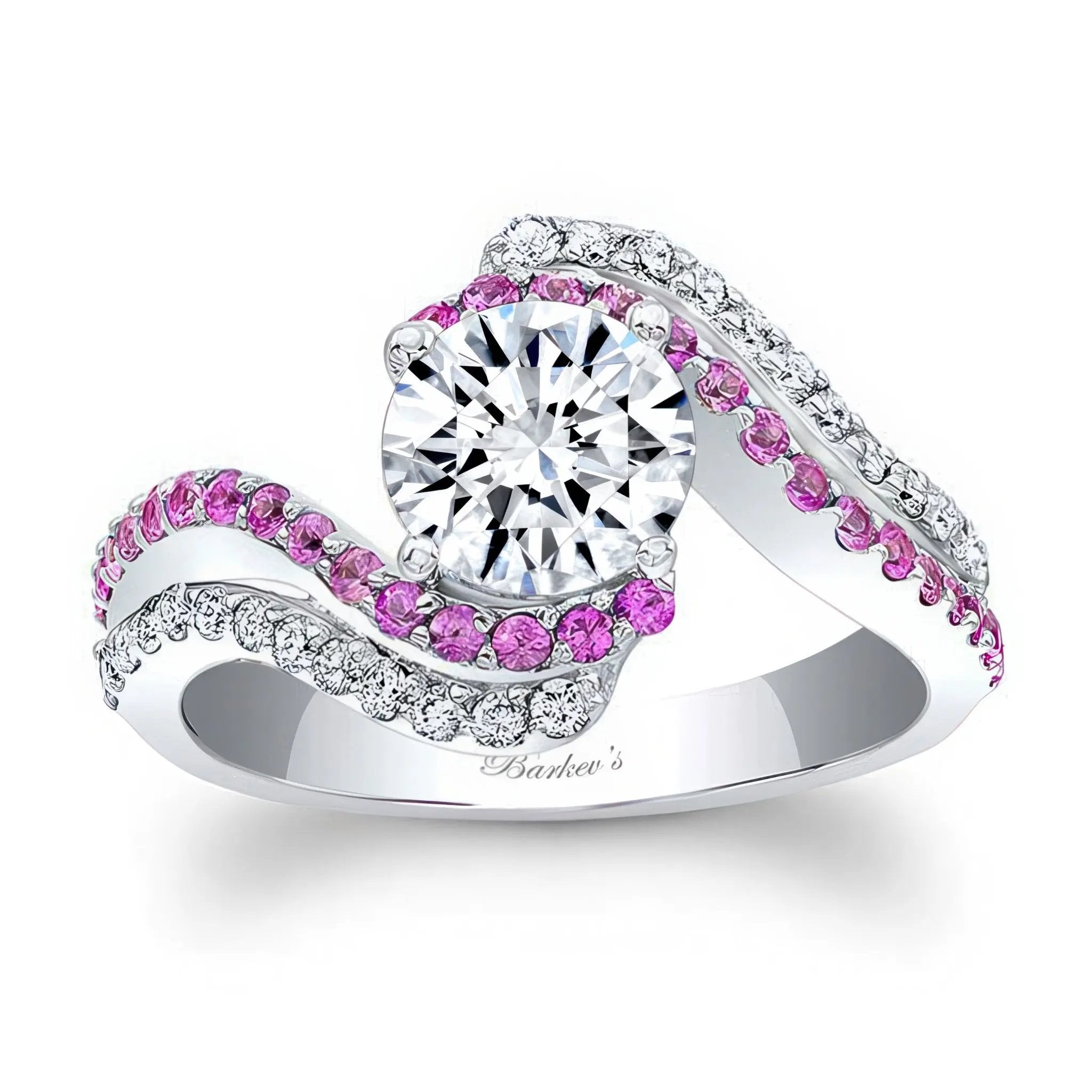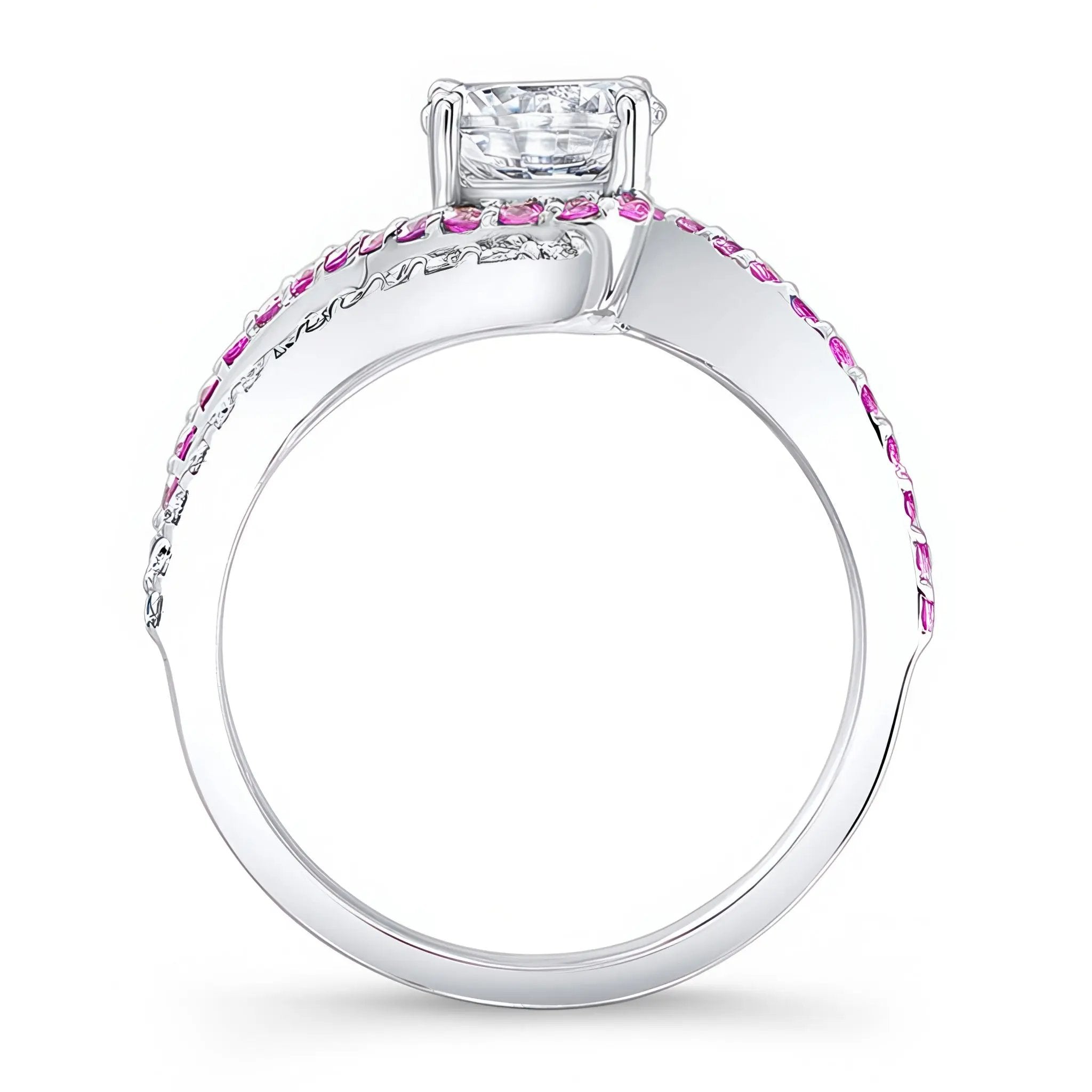 Swirl Pink Sapphire Accent Moissanite Engagement Ring Ring
