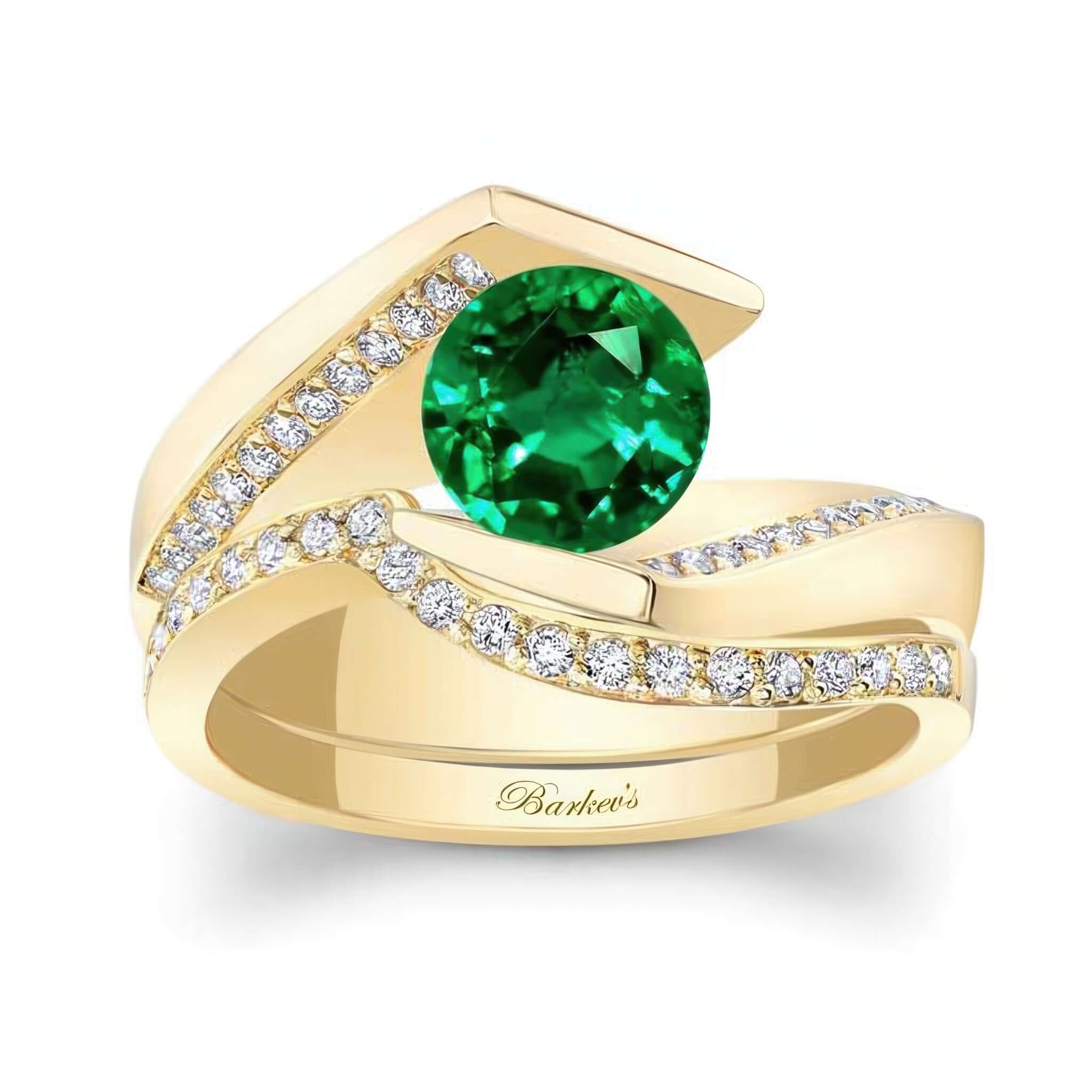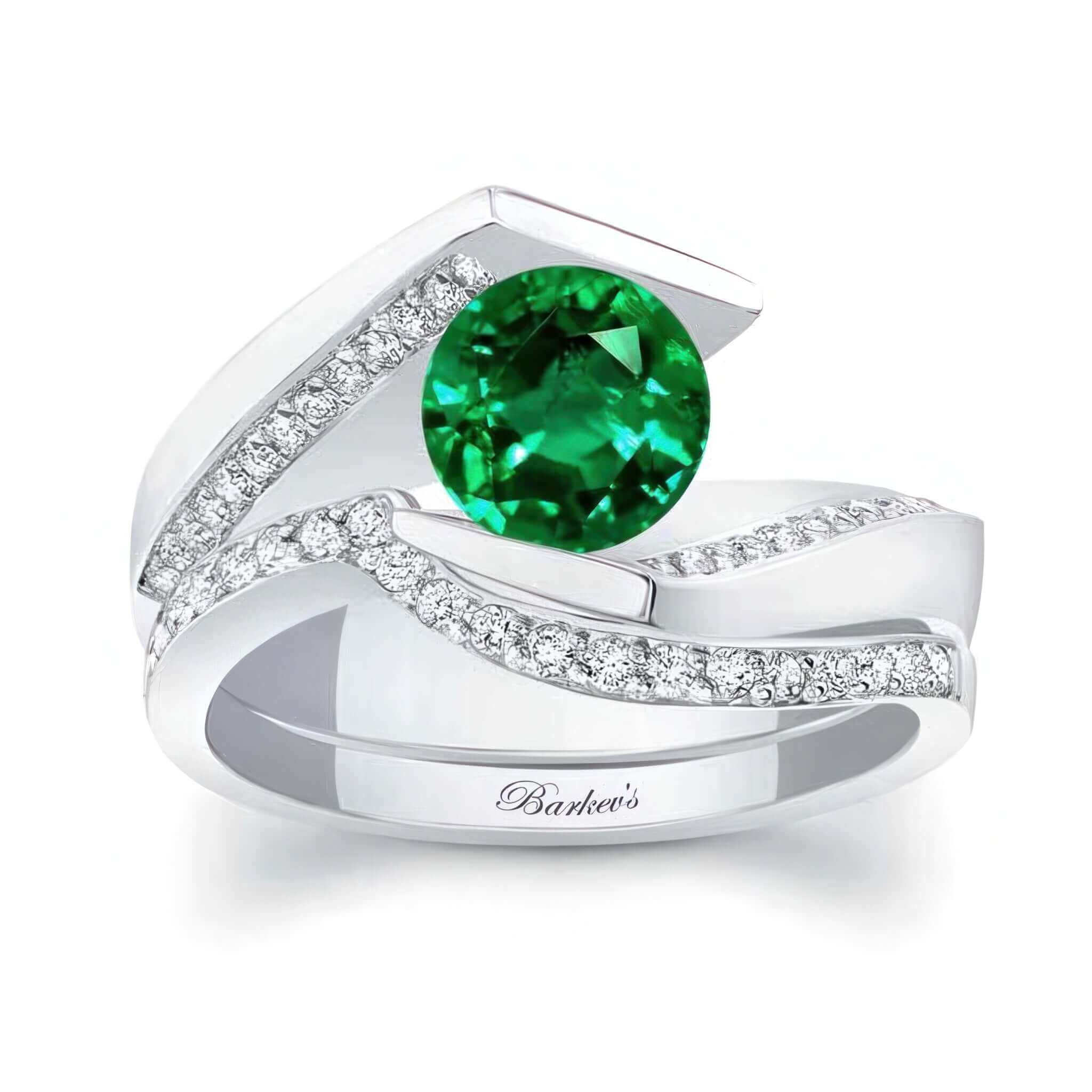 Tension Setting Lab Grown Emerald And Diamond Bridal Set