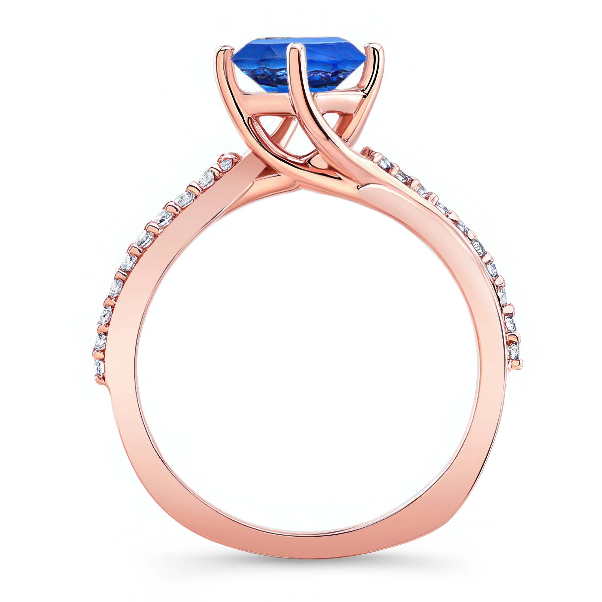Twisted Lab Grown Blue Sapphire And Diamond Engagement Ring