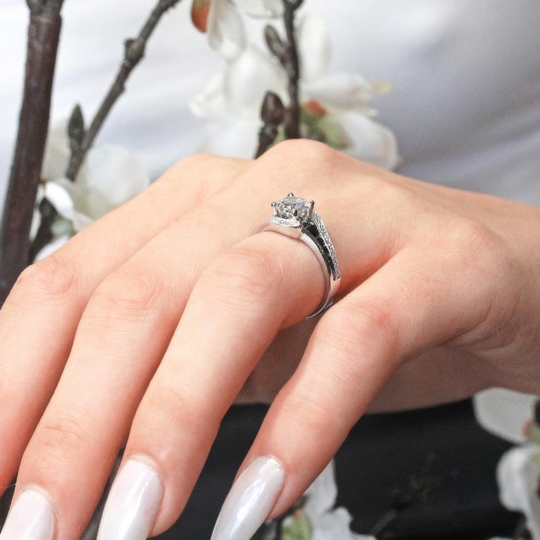 Unique Black Diamond Accent Engagement Ring