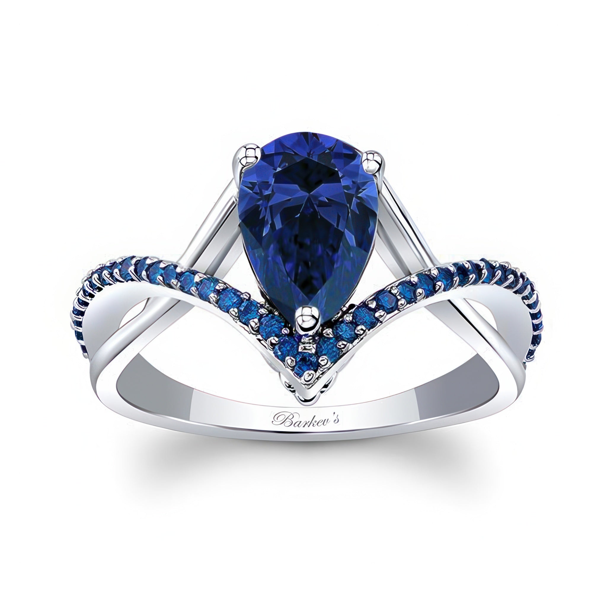 Dive deep into royal elegance with the Unique Pear Shaped Blue Sapphire Ring, where classic sophistication meets vibrant blue brilliance. The rich pear-shaped sapphire center dazzles atop a twisting diamond-studded band that sparkles with 43 round accent stones in a secure shared prong setting.