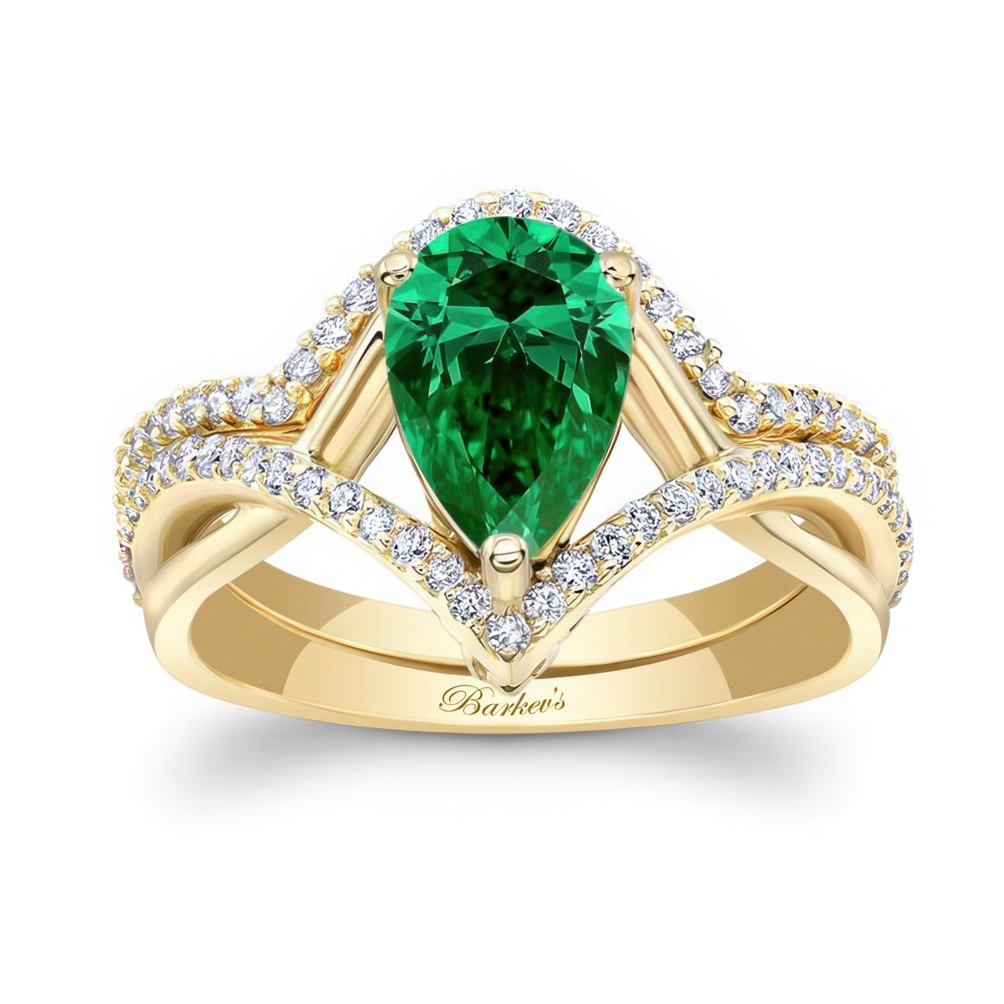 Unique Pear Shaped Emerald And Diamond Wedding Set