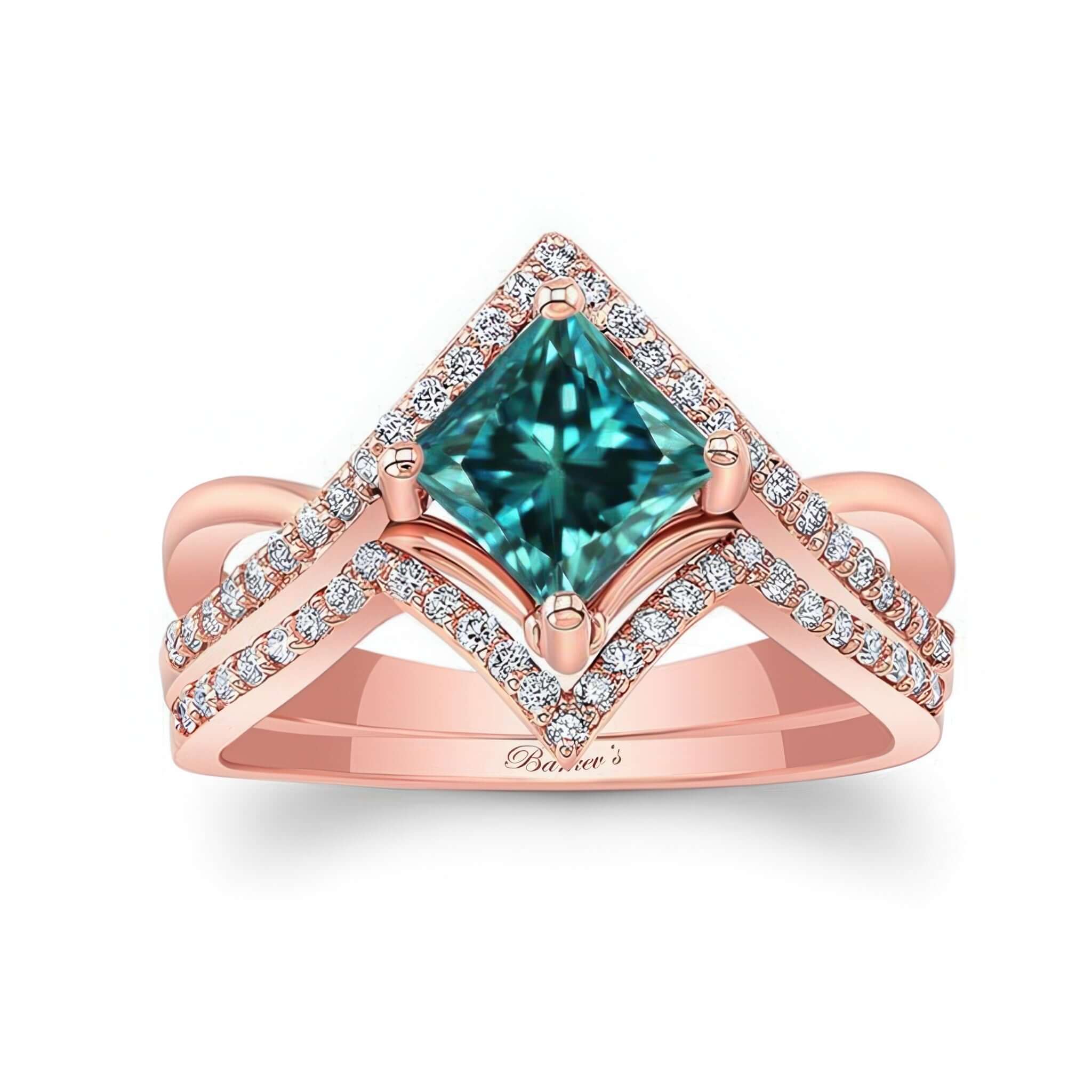 Unique Princess Cut Blue And White Diamond Wedding Set