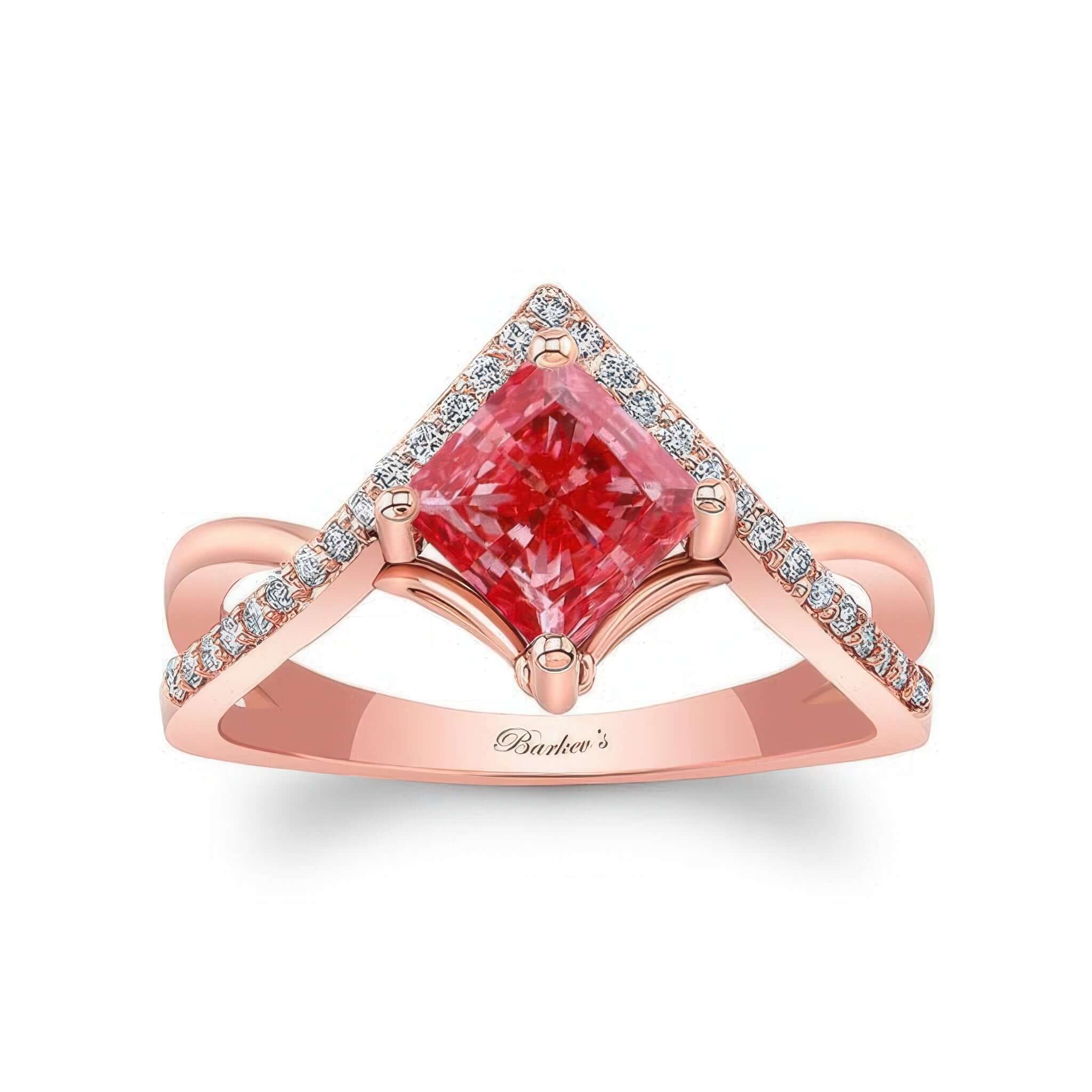 Unique Princess Cut Lab Grown Pink Diamond Engagement Ring