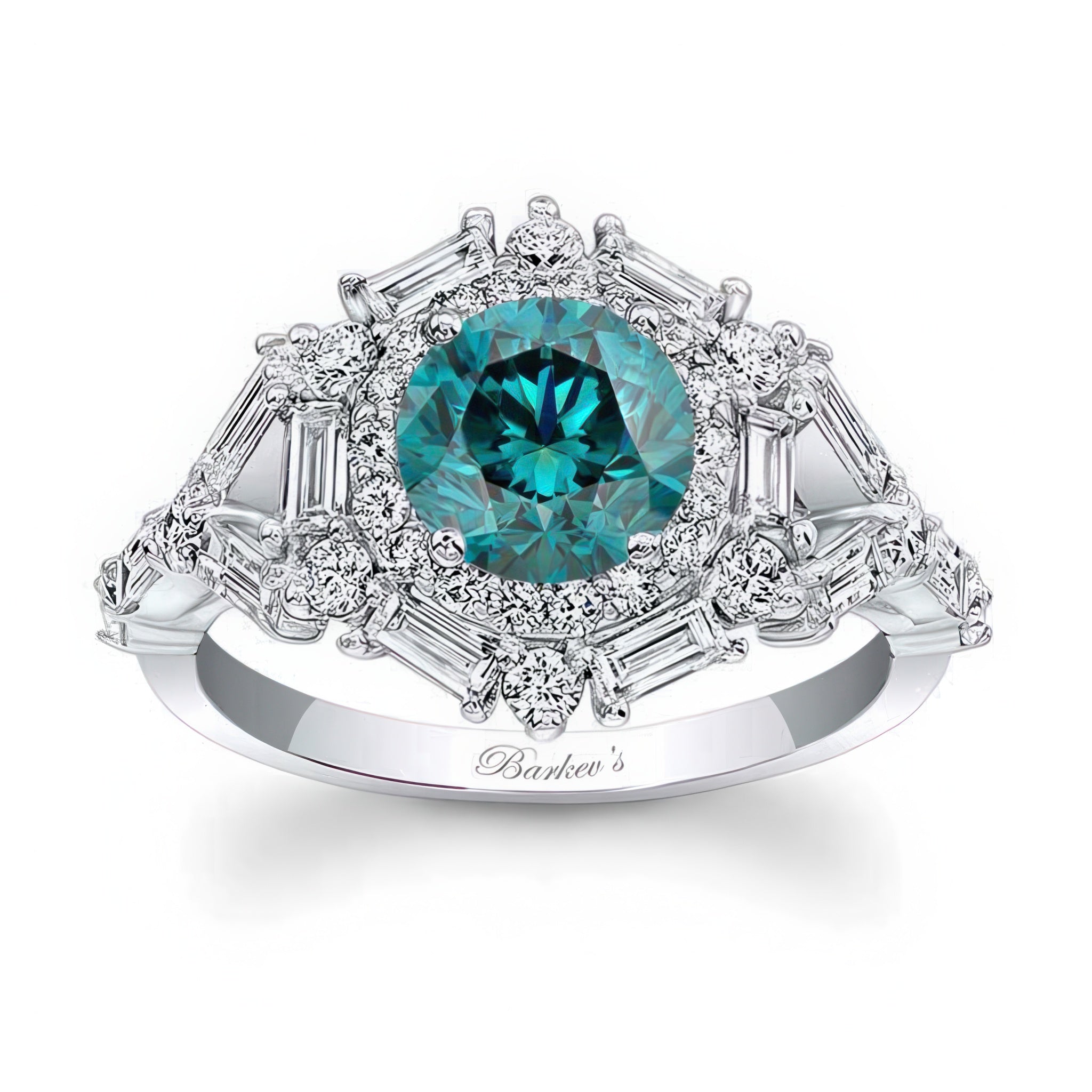 Vintage Baguette Blue And White Diamond Engagement Ring