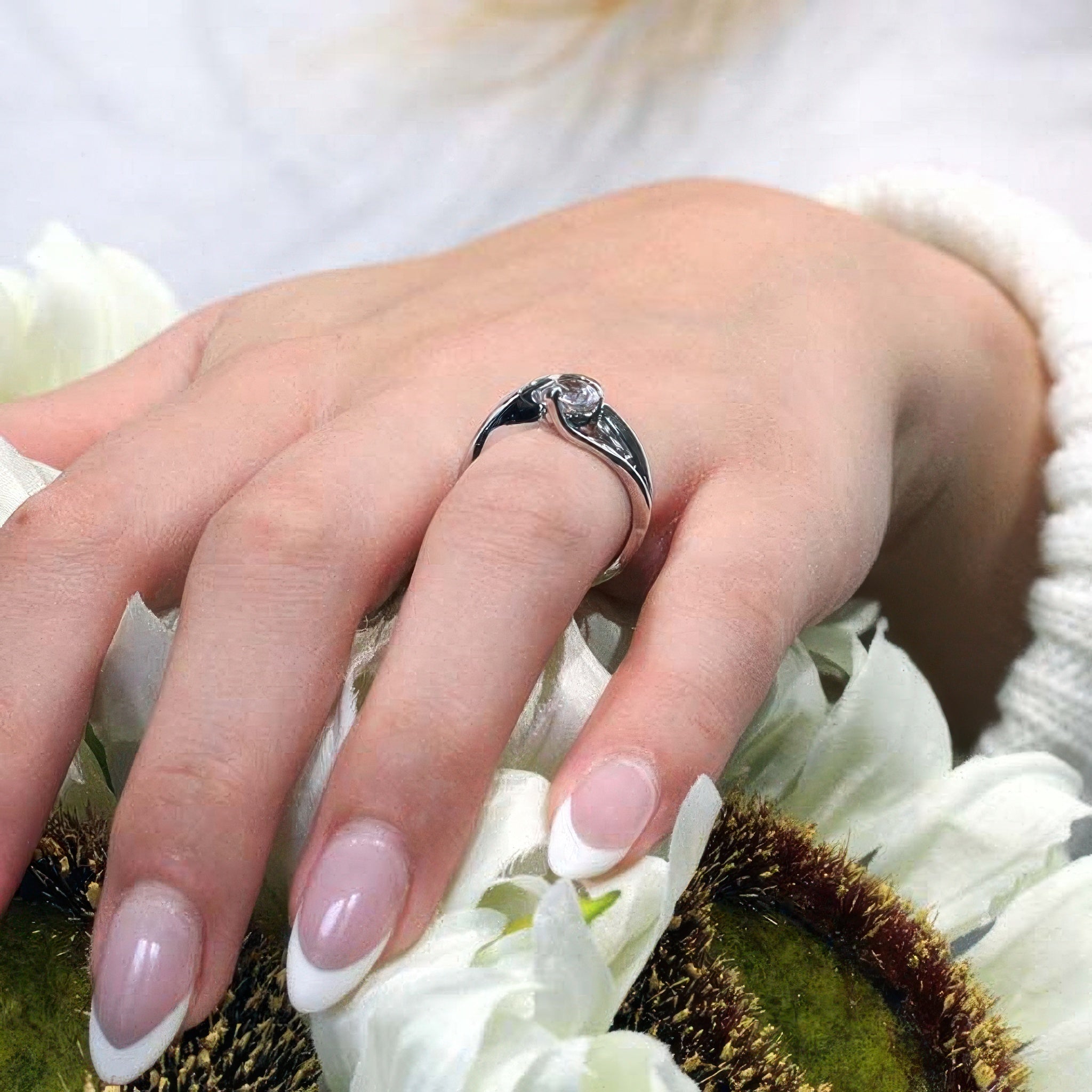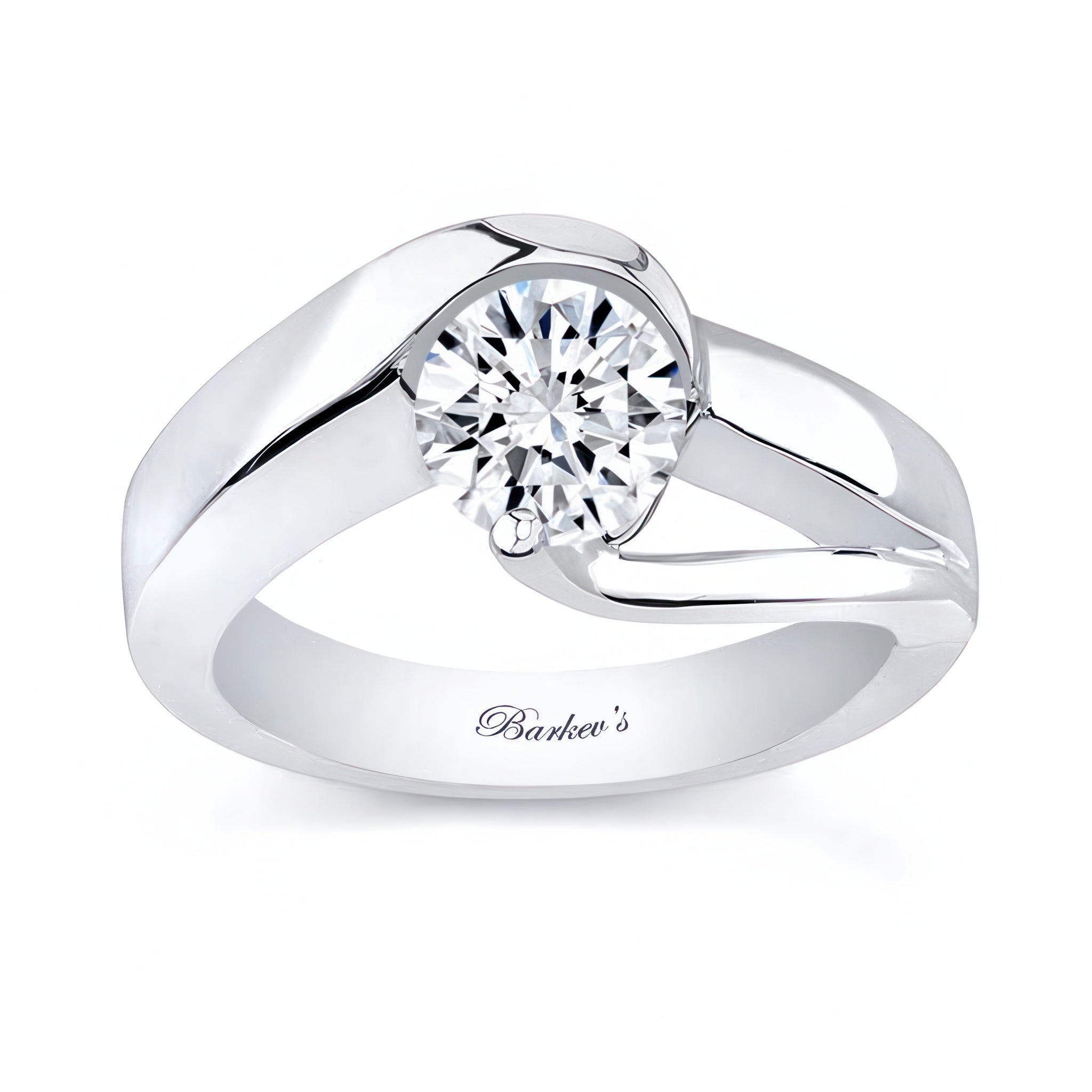 This 0.75 carat solitaire diamond ring features a round center with a curving shoulder and an accent wire trim for a touch of glamour.