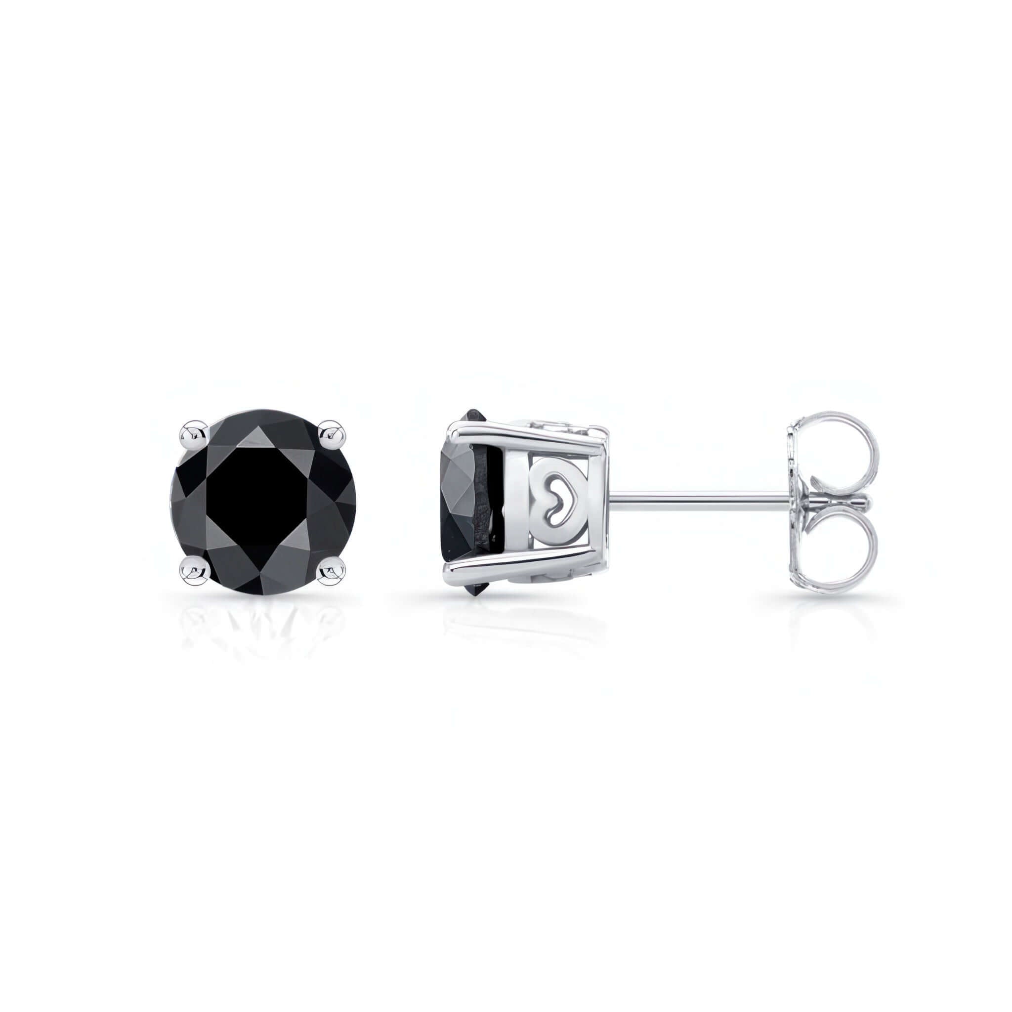 These simple 1.00ct. black diamond studs are decorated with an open heart and flower motif on the sides of the basket with comfortable friction backs.
