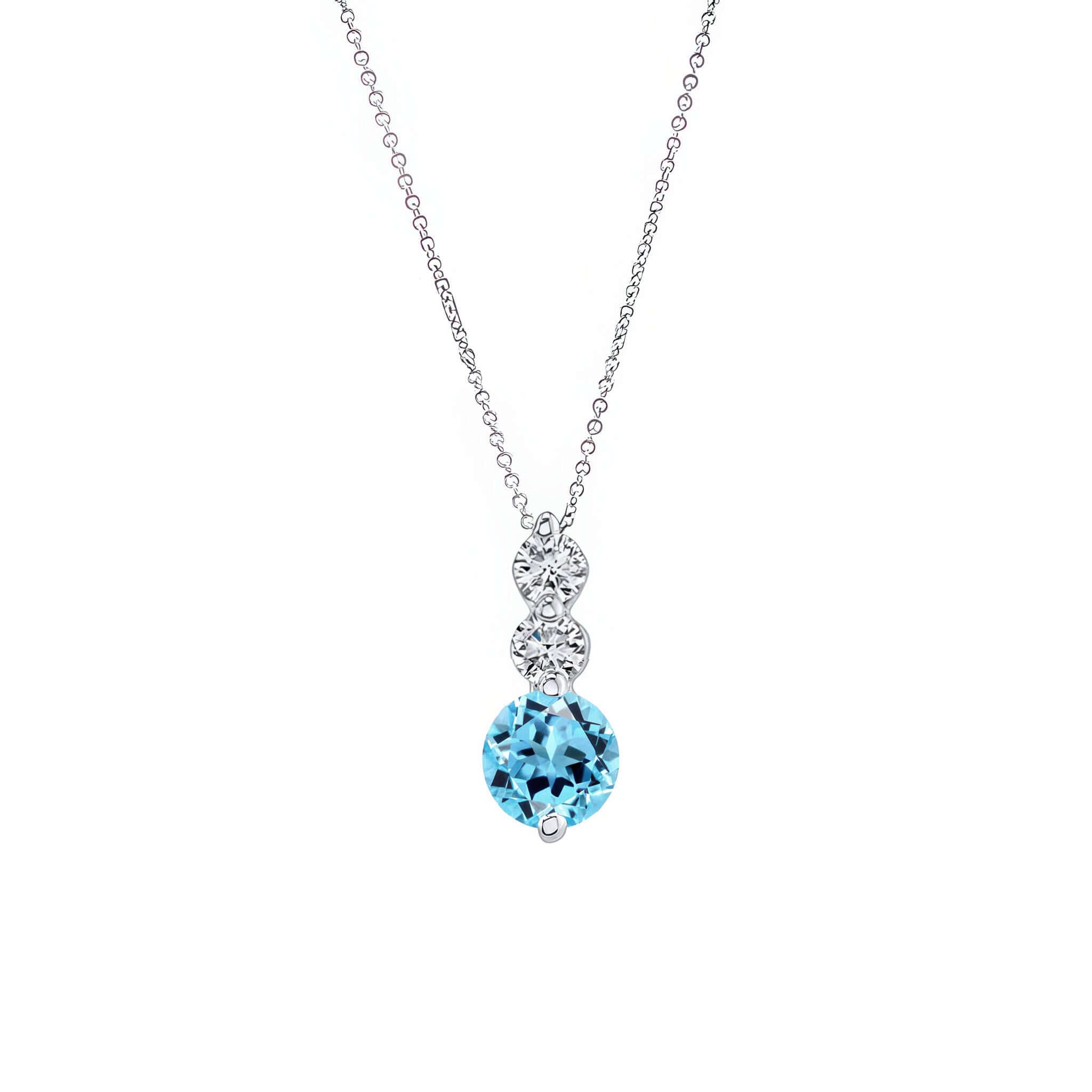 This beautiful blue topaz and diamond necklace features shared prong set diamonds for a sparkling look.
