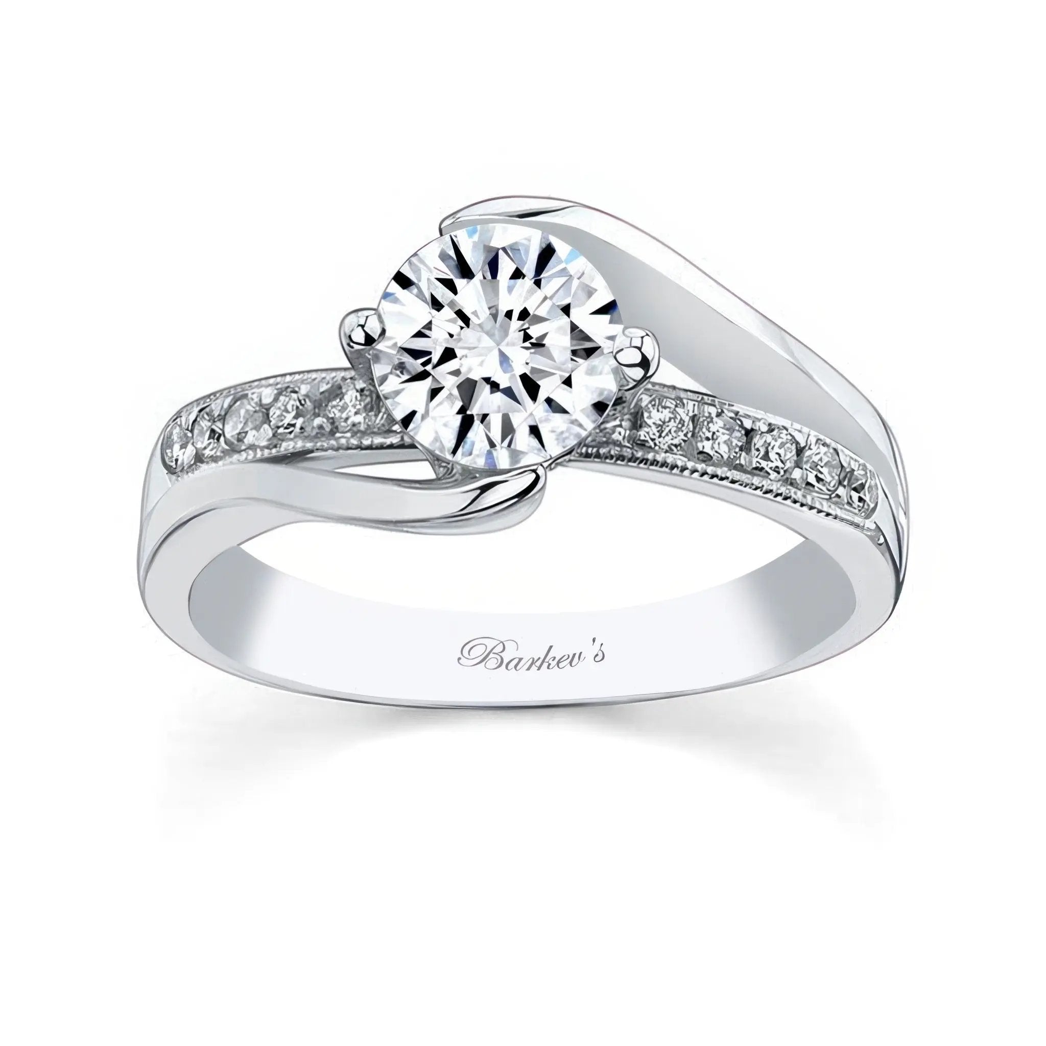 This classic style ring features a half channel, half prong set round center with a bridge below the center accented with pave set diamonds and finished with a touch of milgrain for a look that is nothing short of stunning.