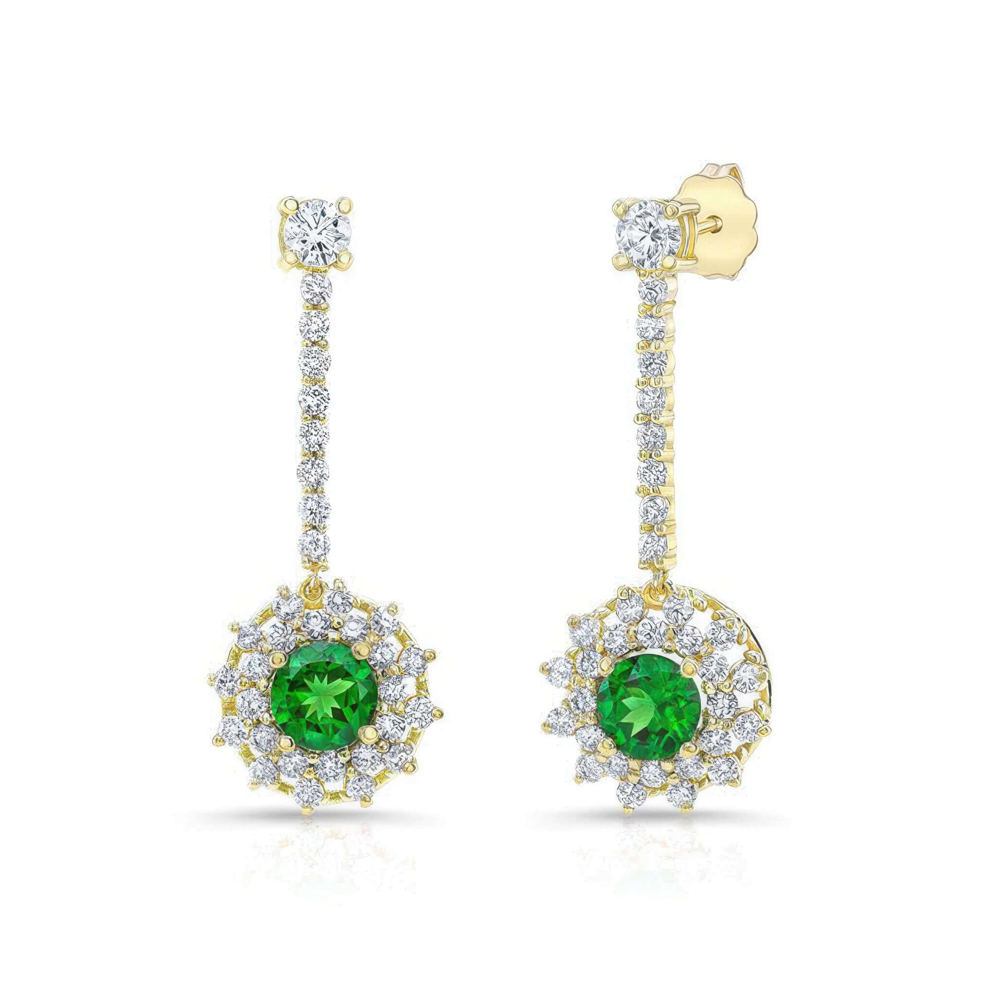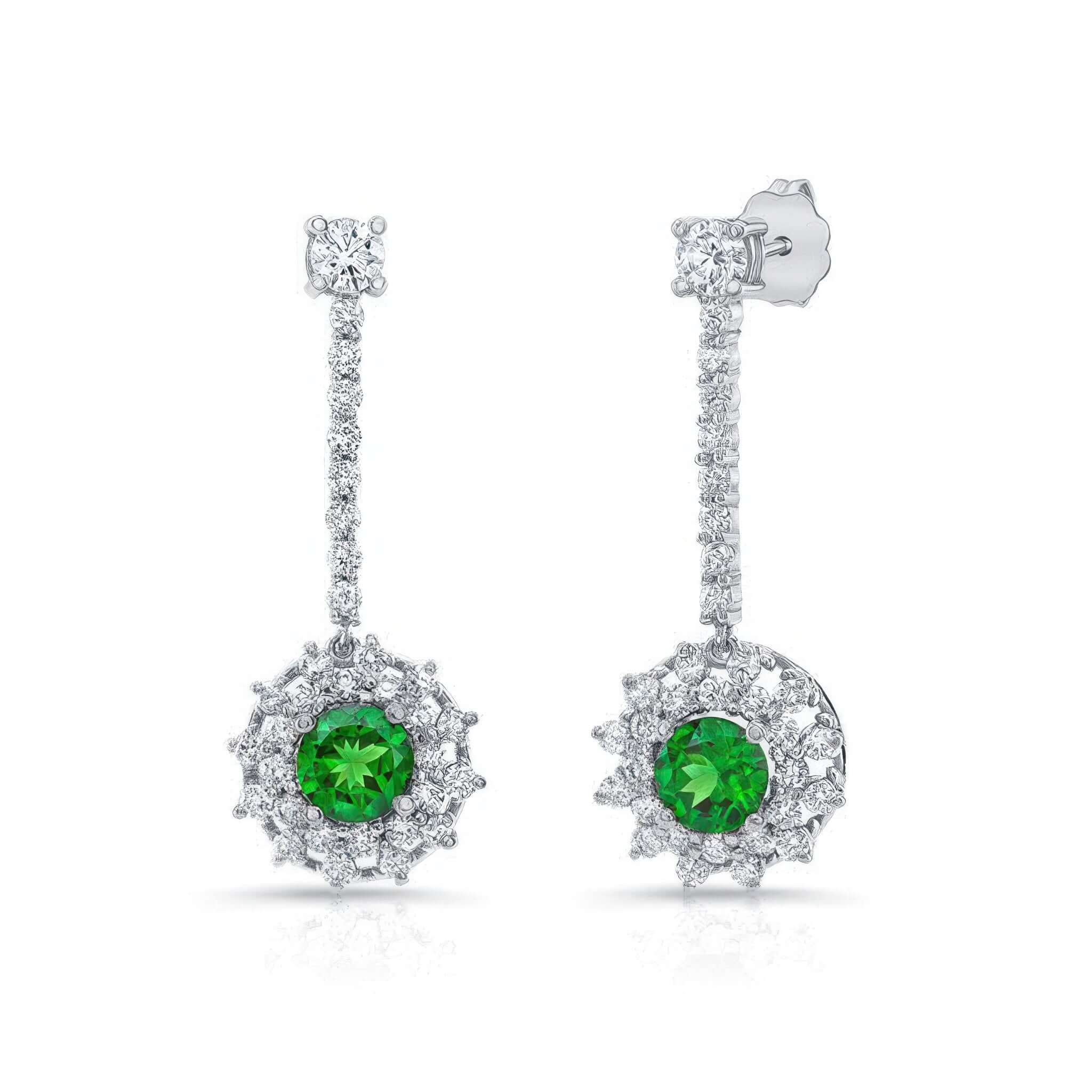 These glamorous diamond drop earrings will turn heads with diamonds on the drop and around the earring's round tsavorite center.