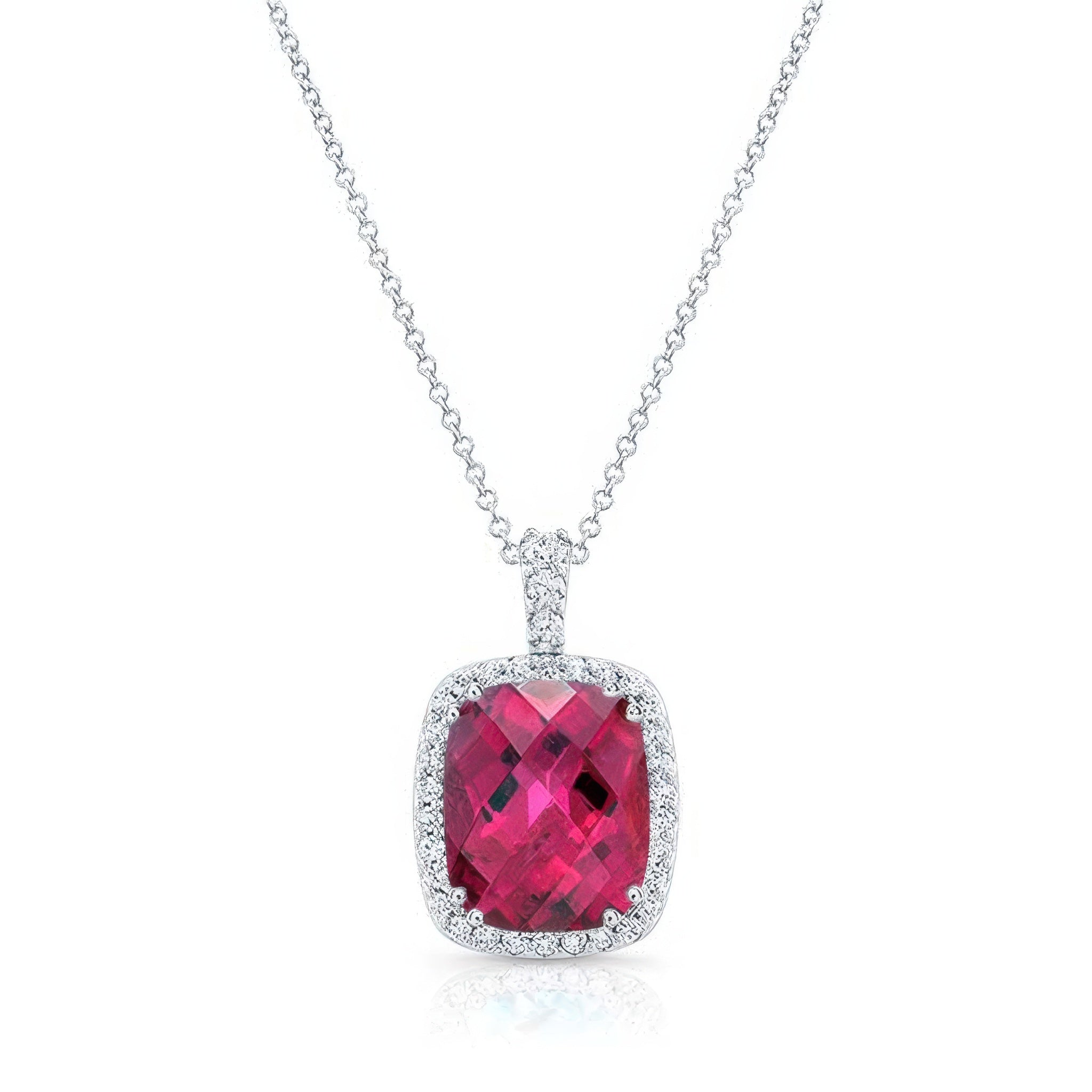 5 Carat Cushion Pink Tourmaline Diamond Necklace