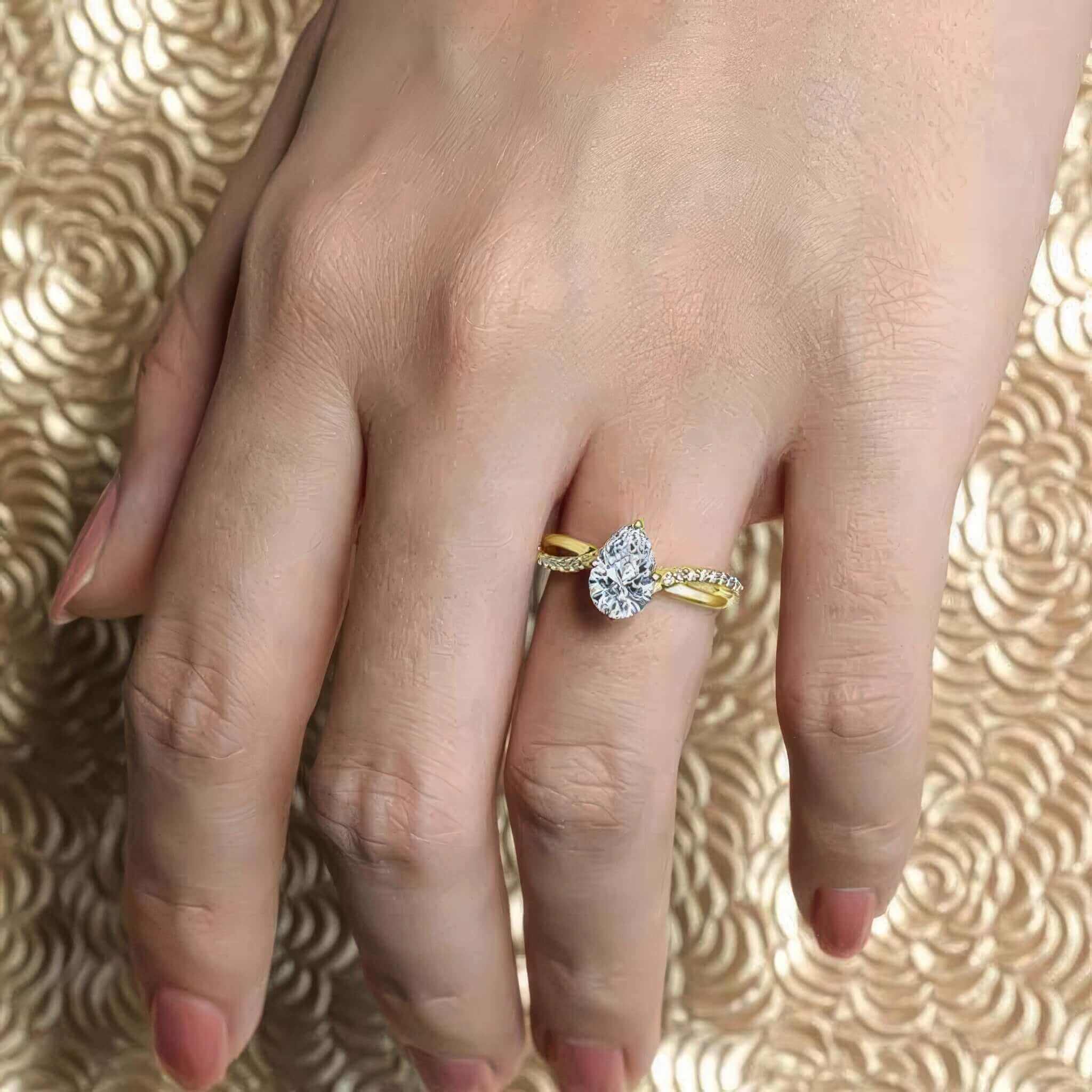 Pear Shaped Lab Grown Diamond Engagement Ring With Twisted Band