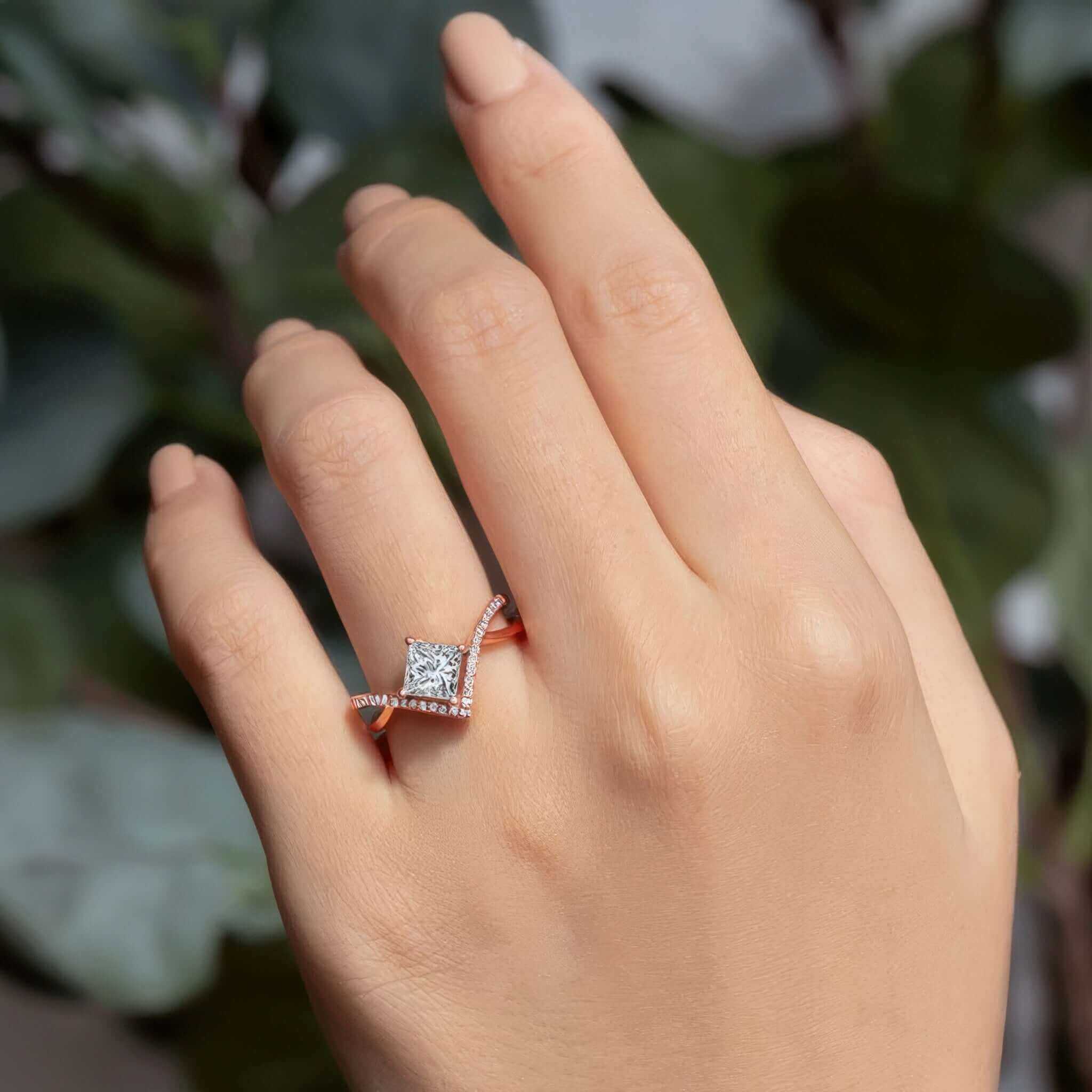 Unique Princess Cut Lab Grown Diamond Engagement Ring