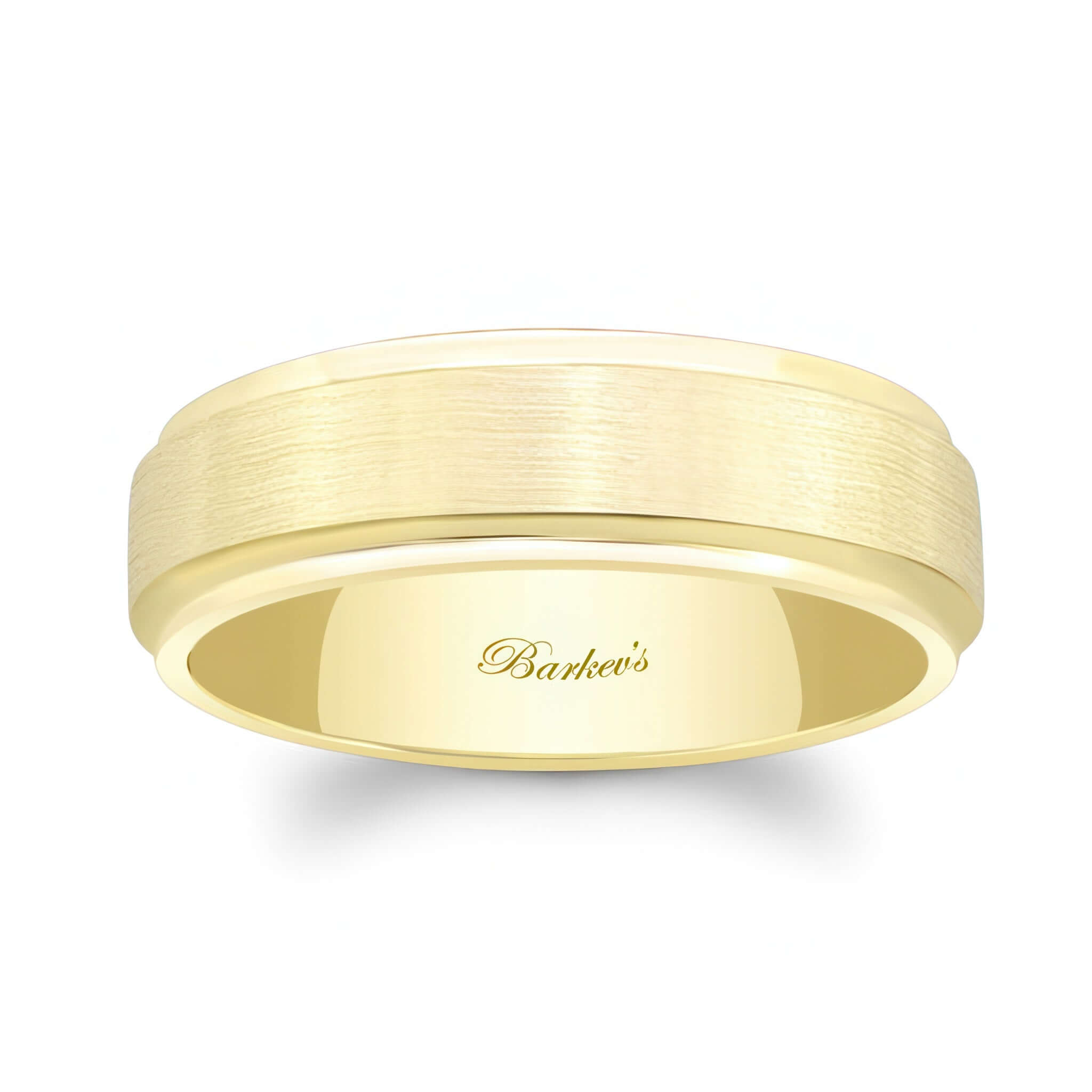 A beautiful 7mm men's raised center wedding band featuring polished edges and a brushed raised center trim.