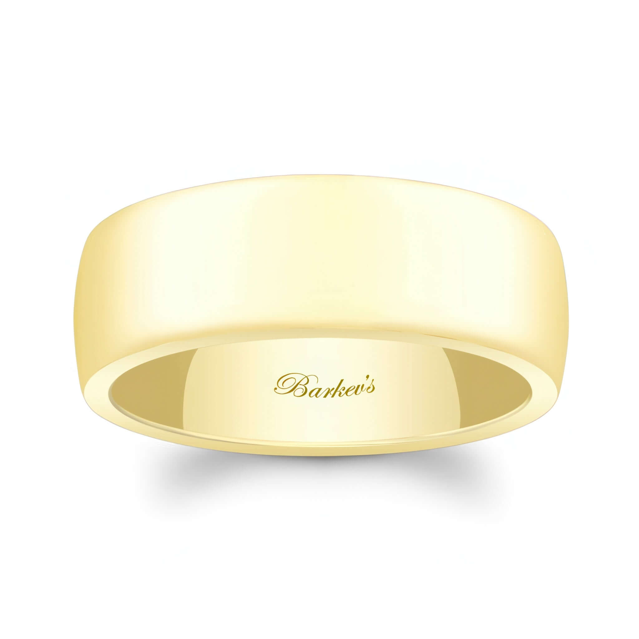 A plain 8mm men's domed wedding band featuring a comfort fit and various gold colors.