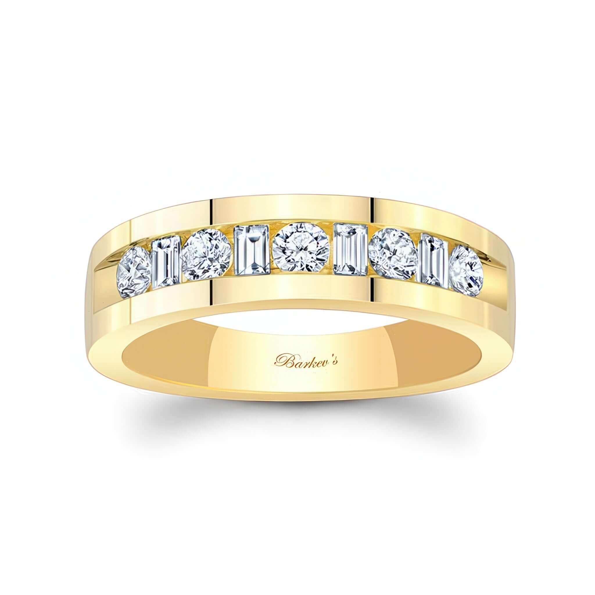 This beautiful men's alternating round and baguette diamond band features a straight line of channel set alternating round and baguette diamonds for a classy look.