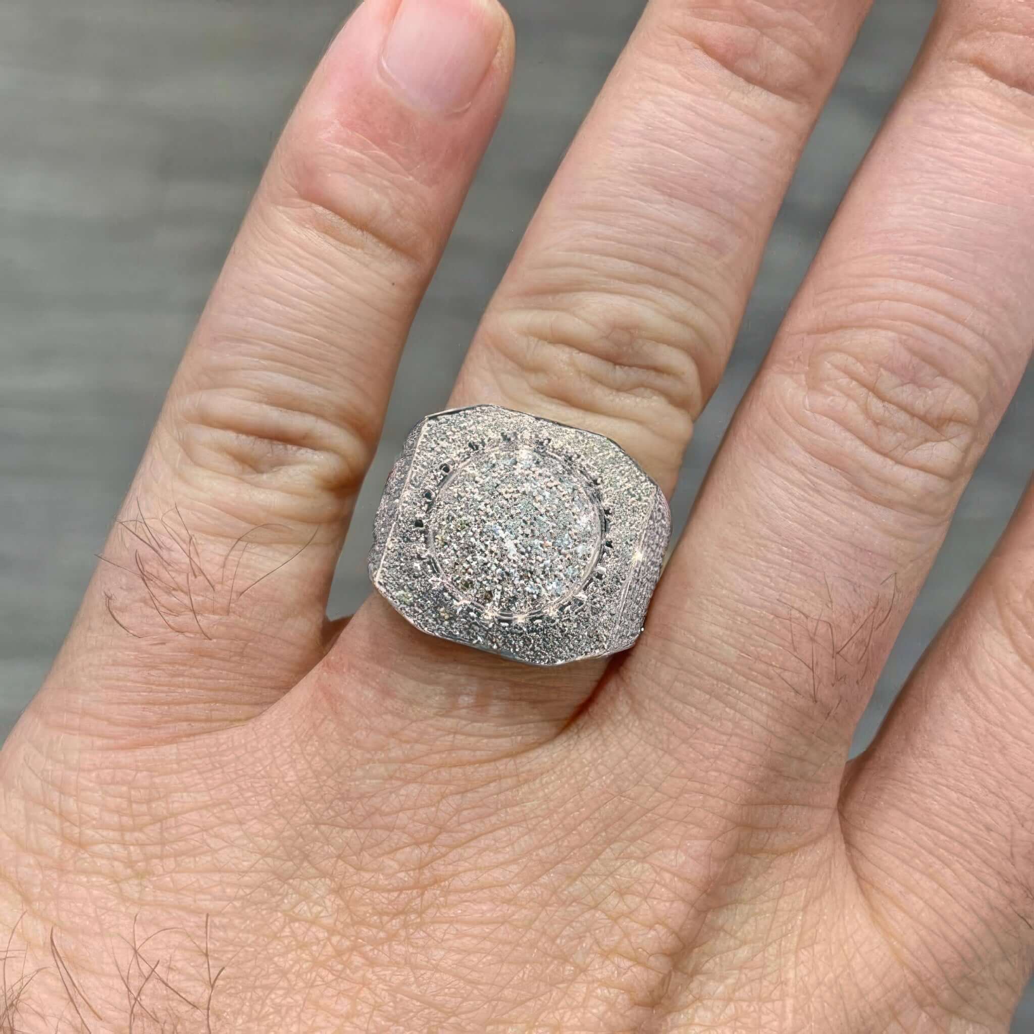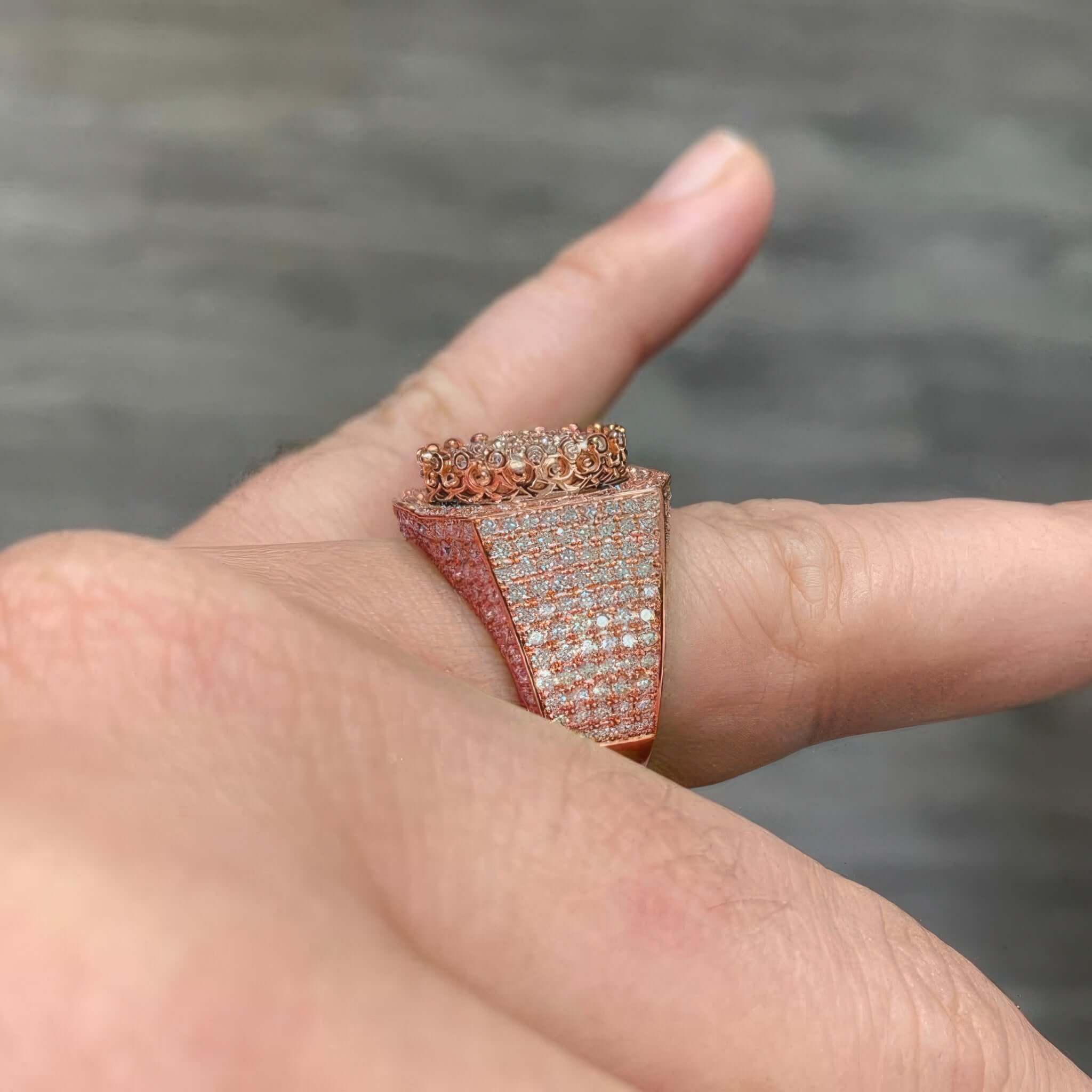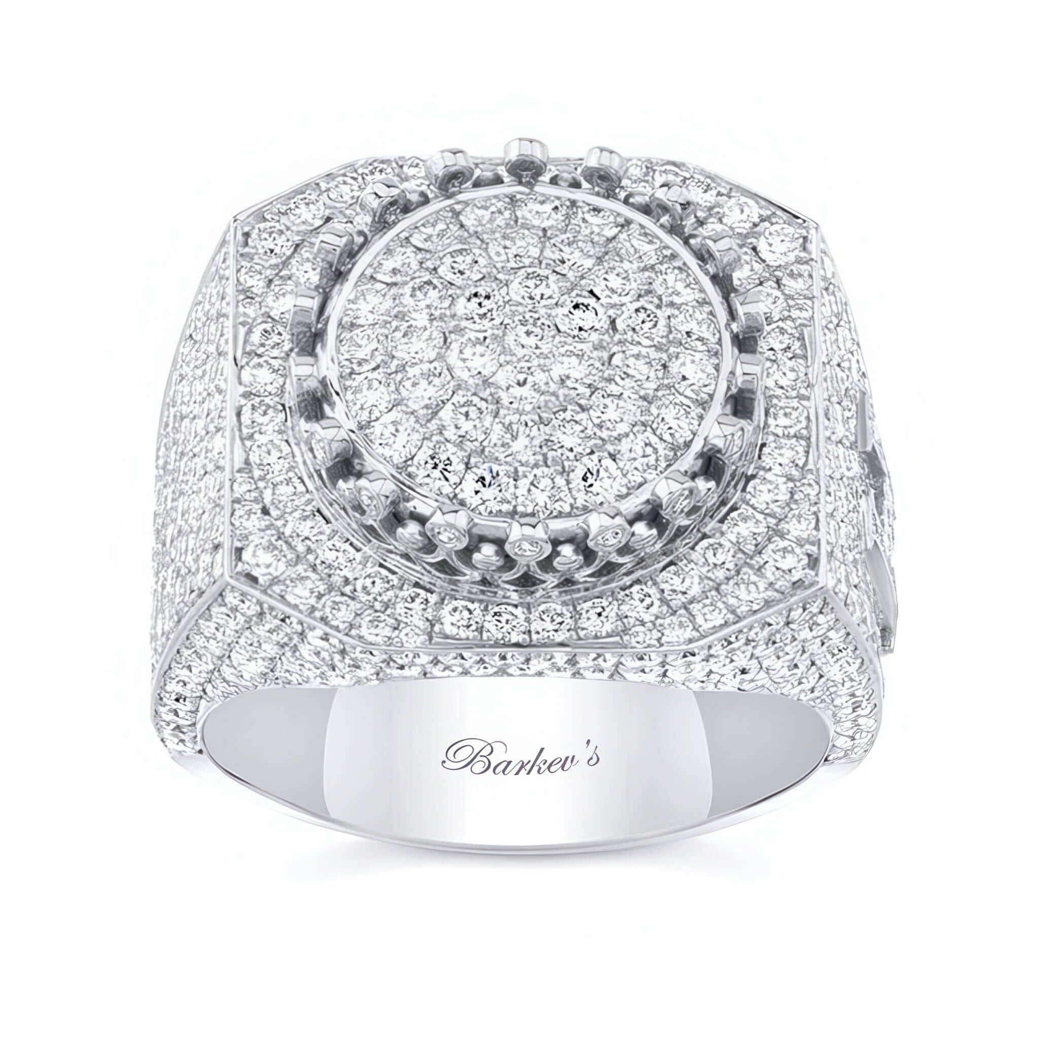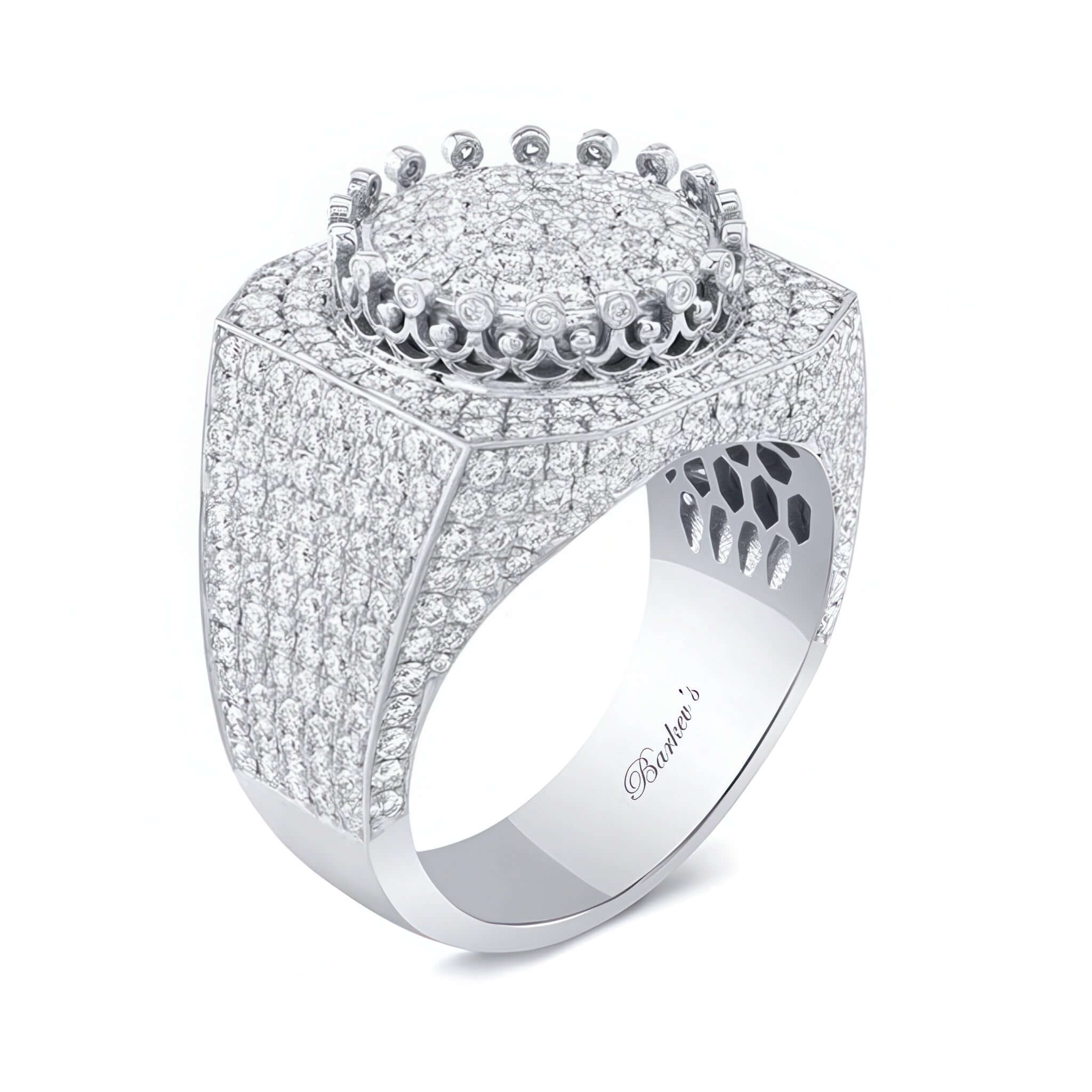 A stunning mens diamond ring featuring a detailed royal crown design encrusted with diamonds all over for a superior look.