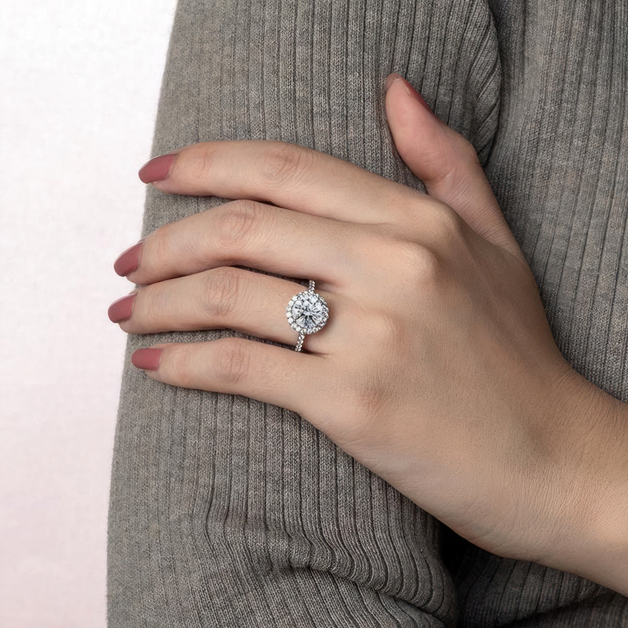 2 Carat Moissanite Halo Engagement Ring