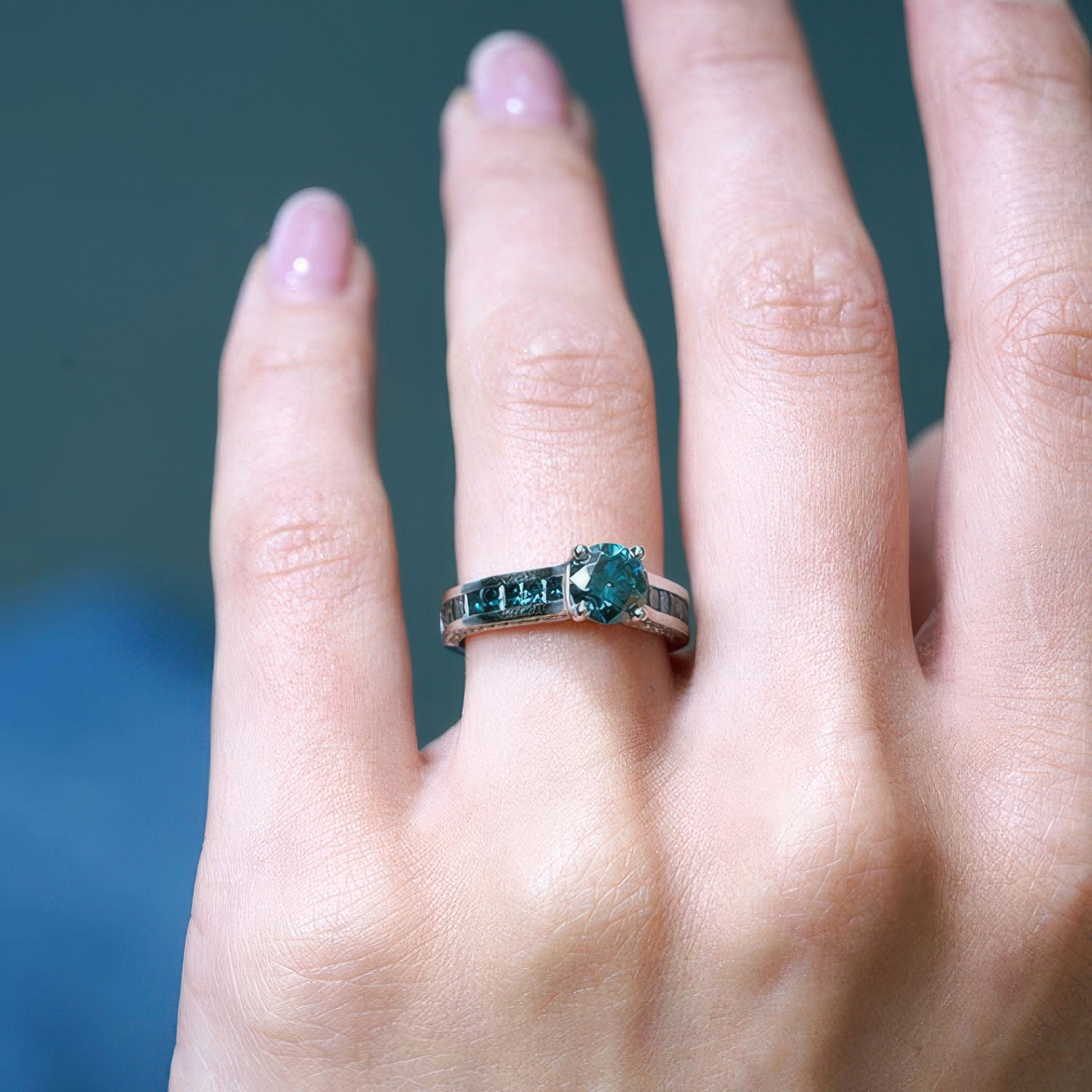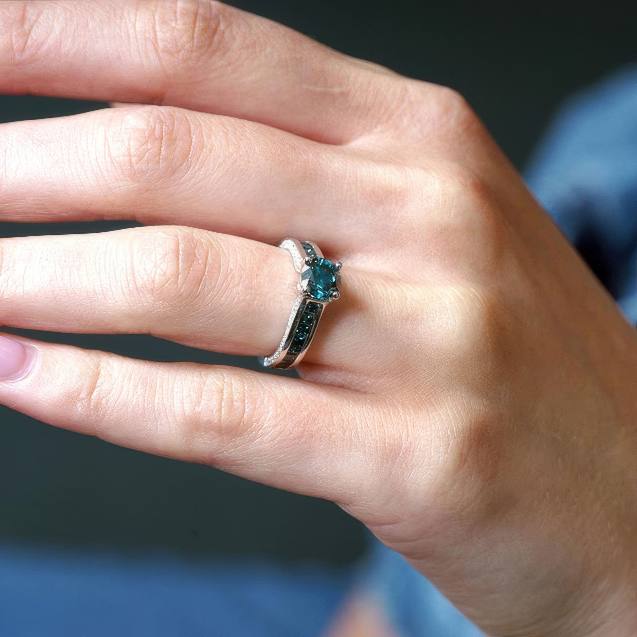 Round And Princess Cut Blue Diamond Accent Ring